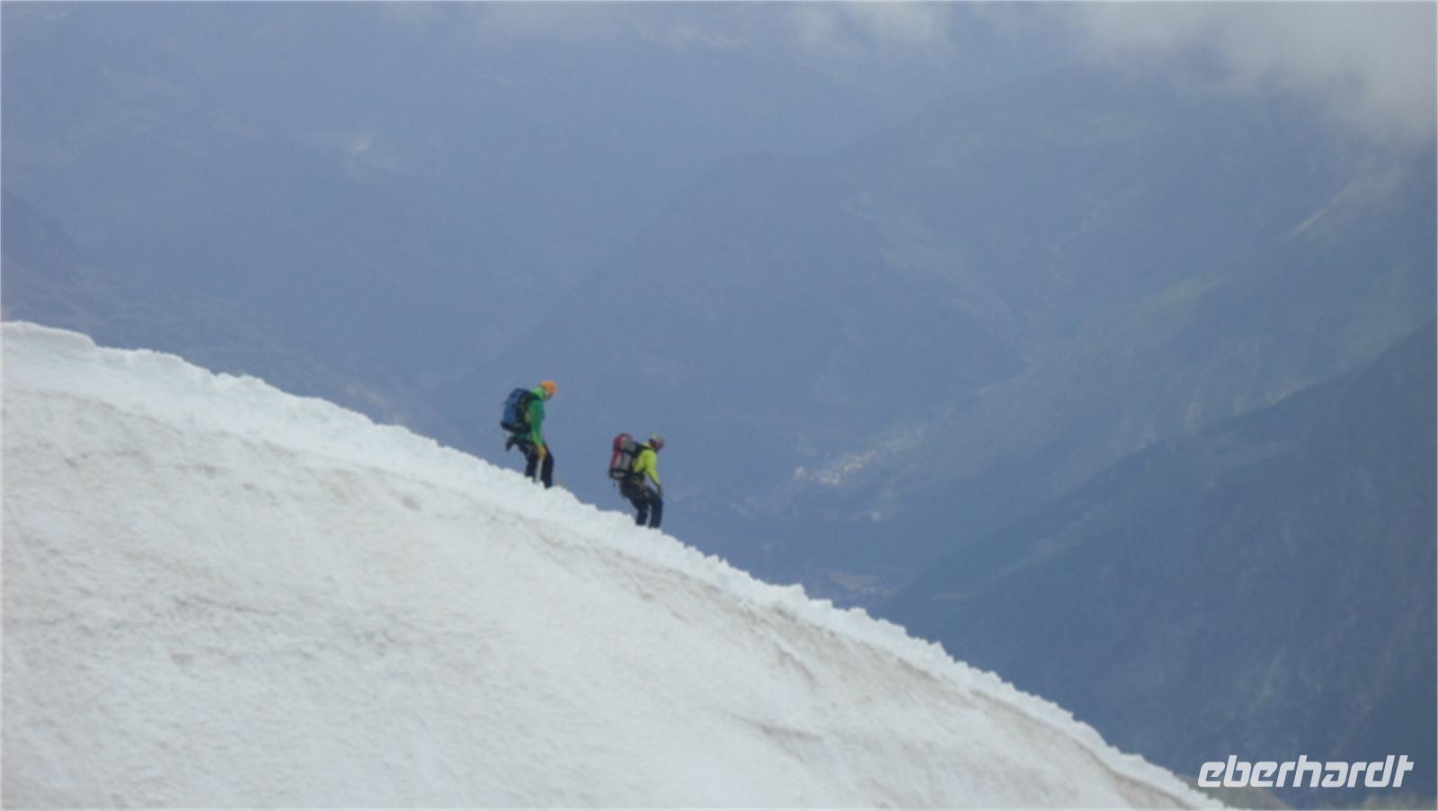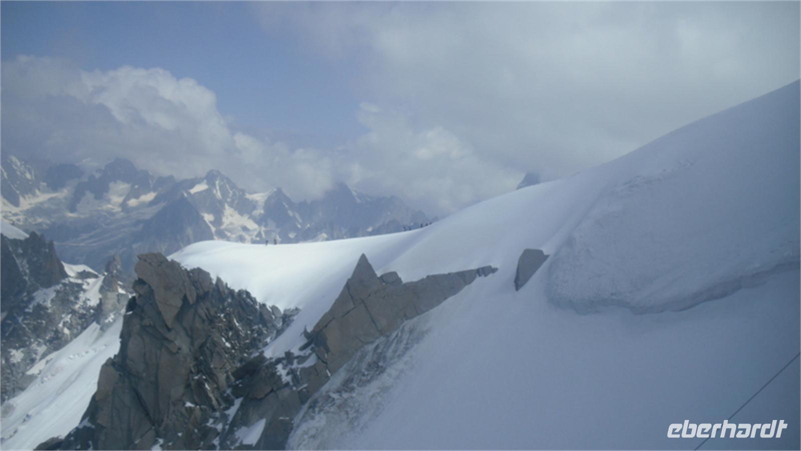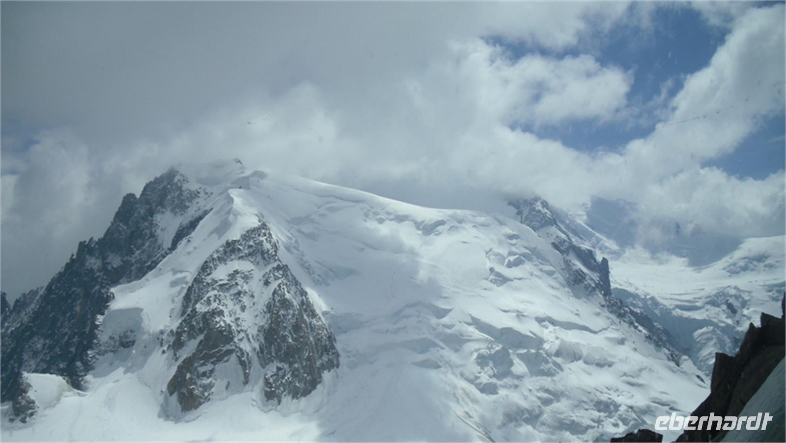 Mit dem 4.Tag ging es nun direkt zum Mont Blanc. Über das Tal Abondance fuhren wir von Frankreich entlang eines Teils des Genfersees ins schweizerische Wallis und durch die Weinberge und vorbei an den Aprikosenfelder Martigny’s und seiner Umgebung. Mit einem wunderbaren Blick auf das Wallis ging es dann über den Col de Forclaz Pass mit stetem vollem herrlichstem Blick auf den Mont Blanc nach Chamonix (Frankreich) hinein. Dort fuhr ein Teil mit der „glacier de mer“-Zahnradbahn zum Eismeergletscher, der größte Teil fuhr hoch mit der Aiguille du midi -Bahn in 20 Minuten auf 3777m ü.M , um einen noch näheren Eindruck vom Mont Blanc (4708m) zu bekommen.