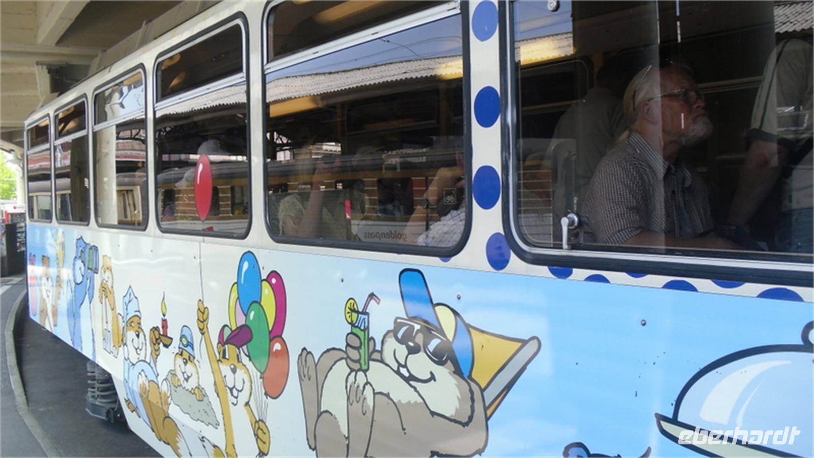Das Schloss Chillon, trutzig und wunderbar erhalten, liegt bei Montreux und dies war vormittags das Ziel des 5. Tages. Alle 20 Gäste fuhren wieder über die Grenze von Frankreich in die französischsprachige Schweiz und der Weg führte direkt am Genfersee entlang zunächst bis ins Schloss zur Besichtigung und danach zum Bummeln ins mondäne Montreux. Von dort fuhren wir mit der Roche-de-Nayes-Zahnradbahn. Die Hochfahrt, eine wunderbare Aussicht auf den Genfersee, die Berge, die Murmeltiere, der Alpengarten und der wunderbare Sonnenschein waren hier ebenfalls für alle eine wahre Wonne.