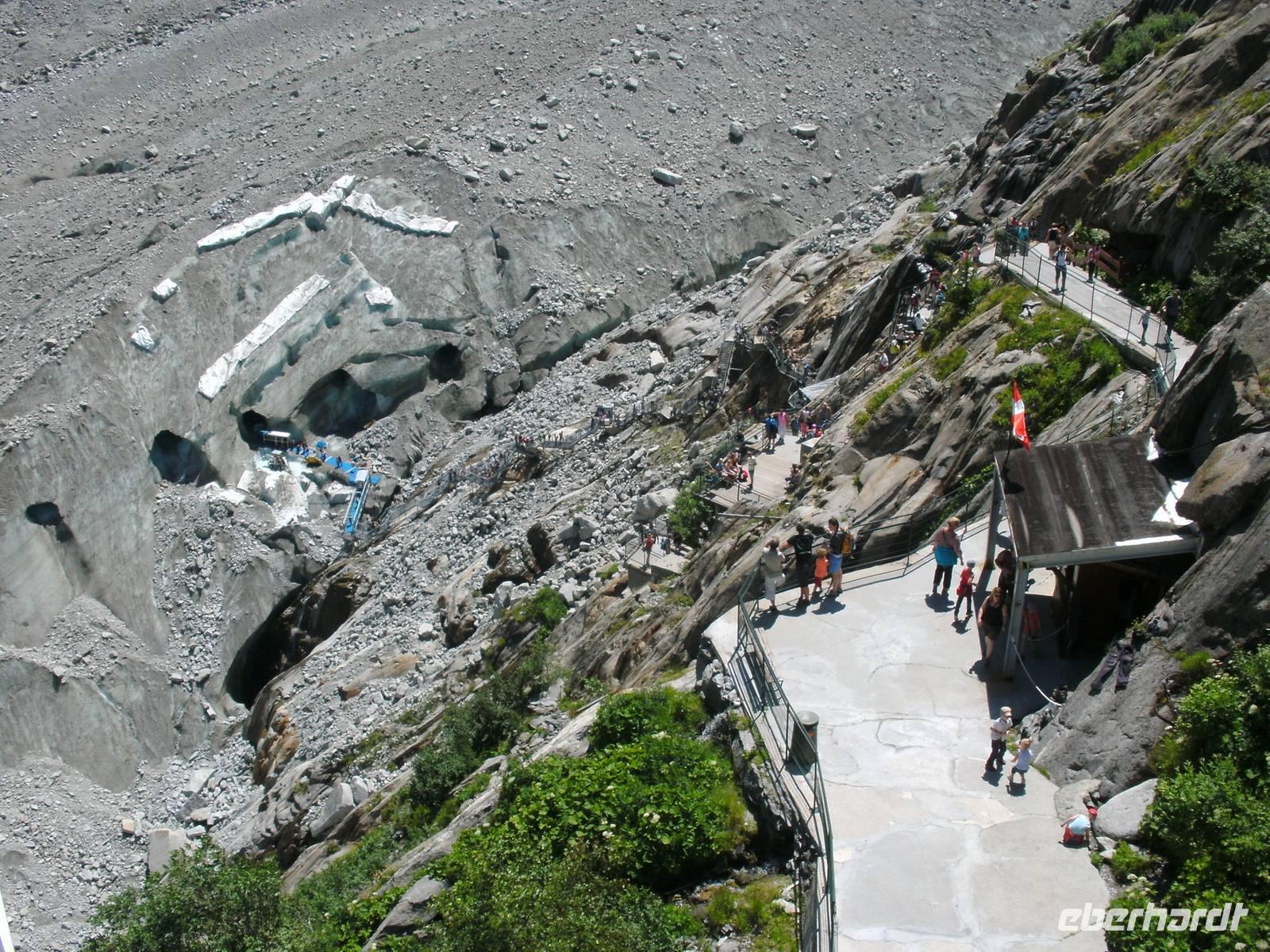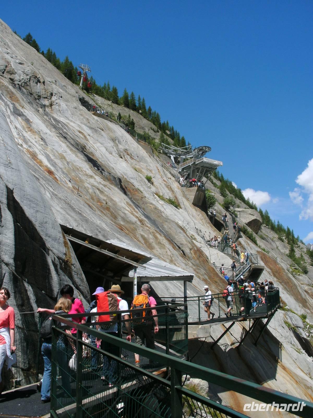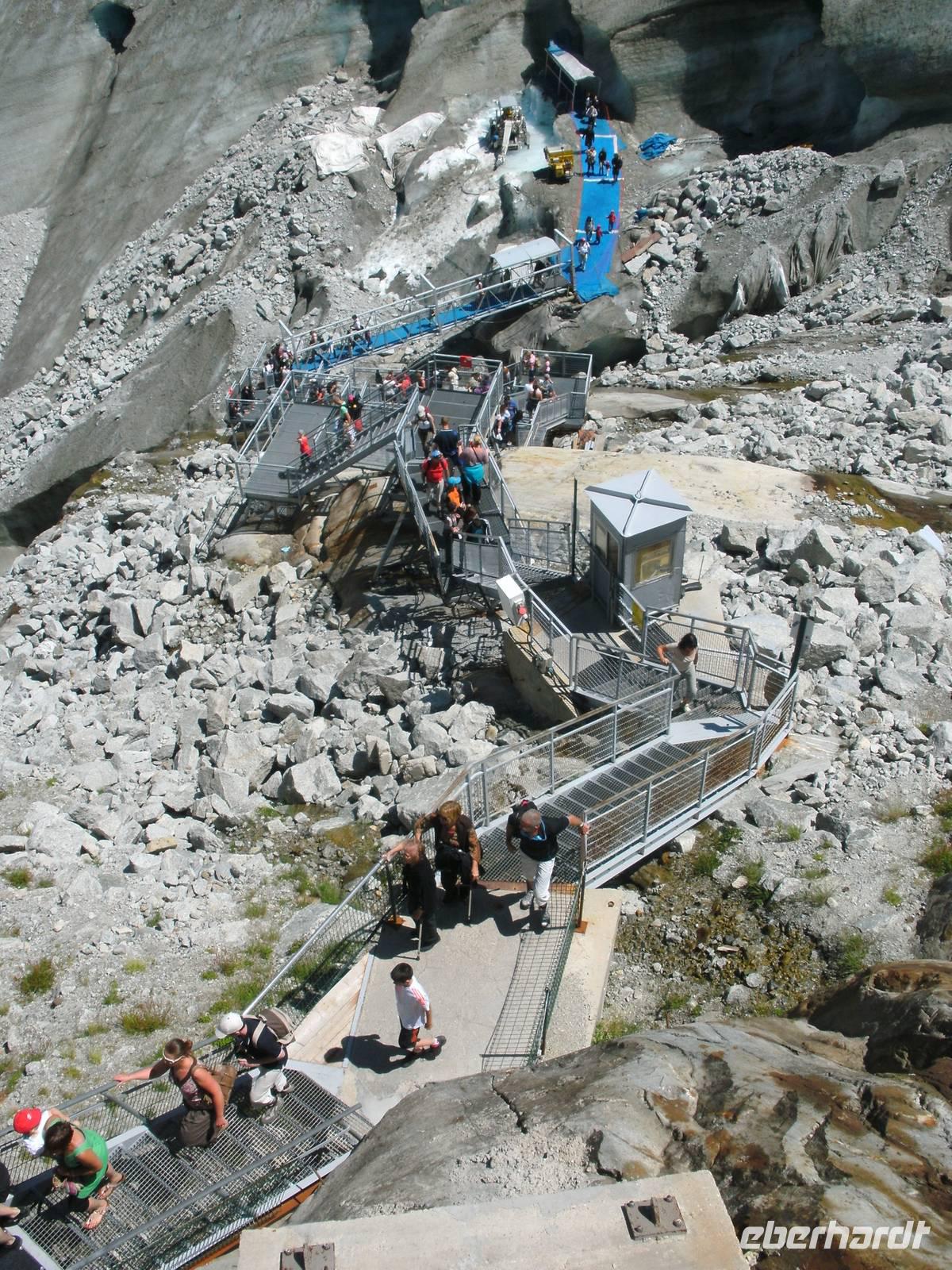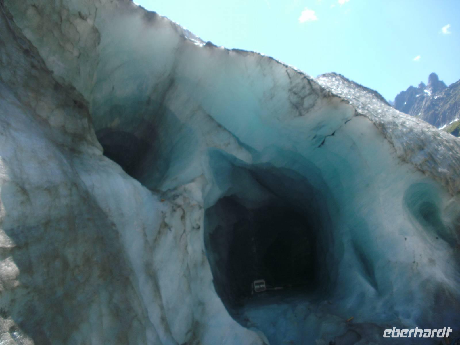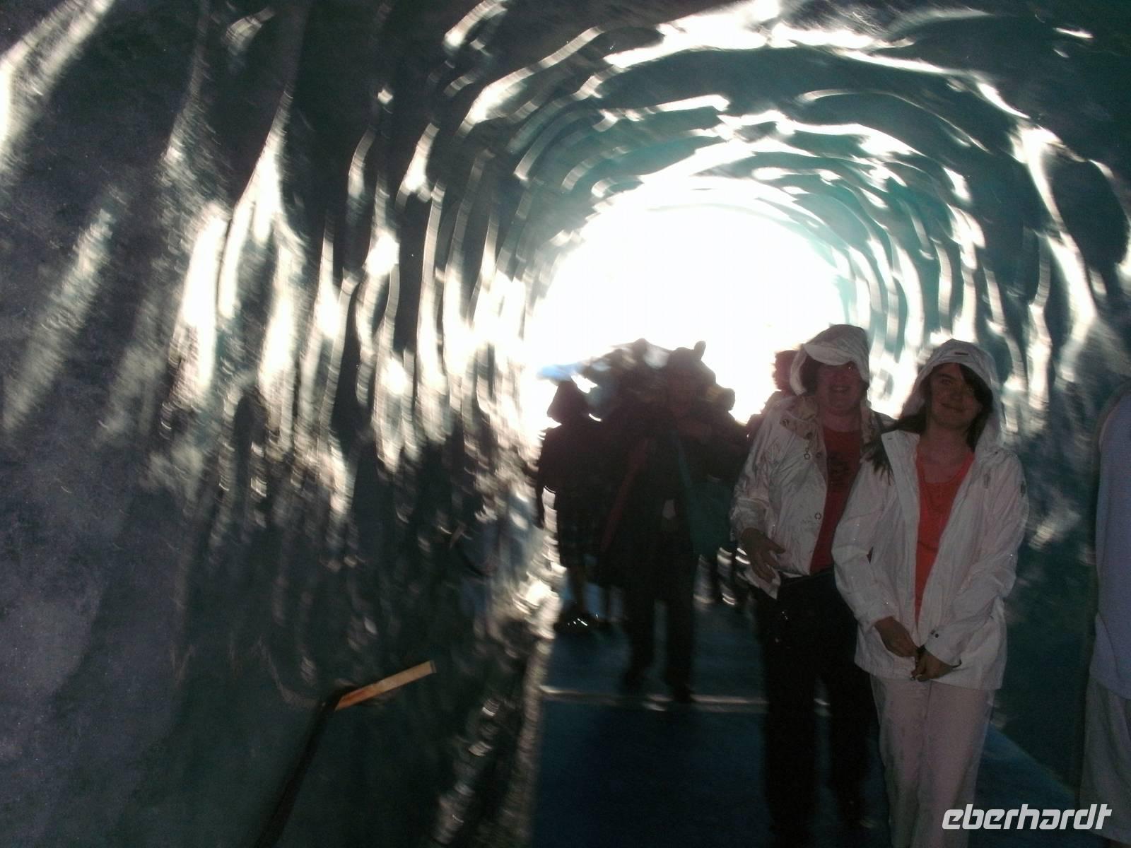 Die andere Gruppe mit 16 Gästen fuhr mit der Zahnrad-Bahn zum Eismeer-Gletscher. Von dort konnte man mit einer Seilbahn runter Richtung Gletscherhöhlen fahren und dann noch 420 Stufen (!) zum Eingang laufen und oder die Kristall-Welten besuchen.