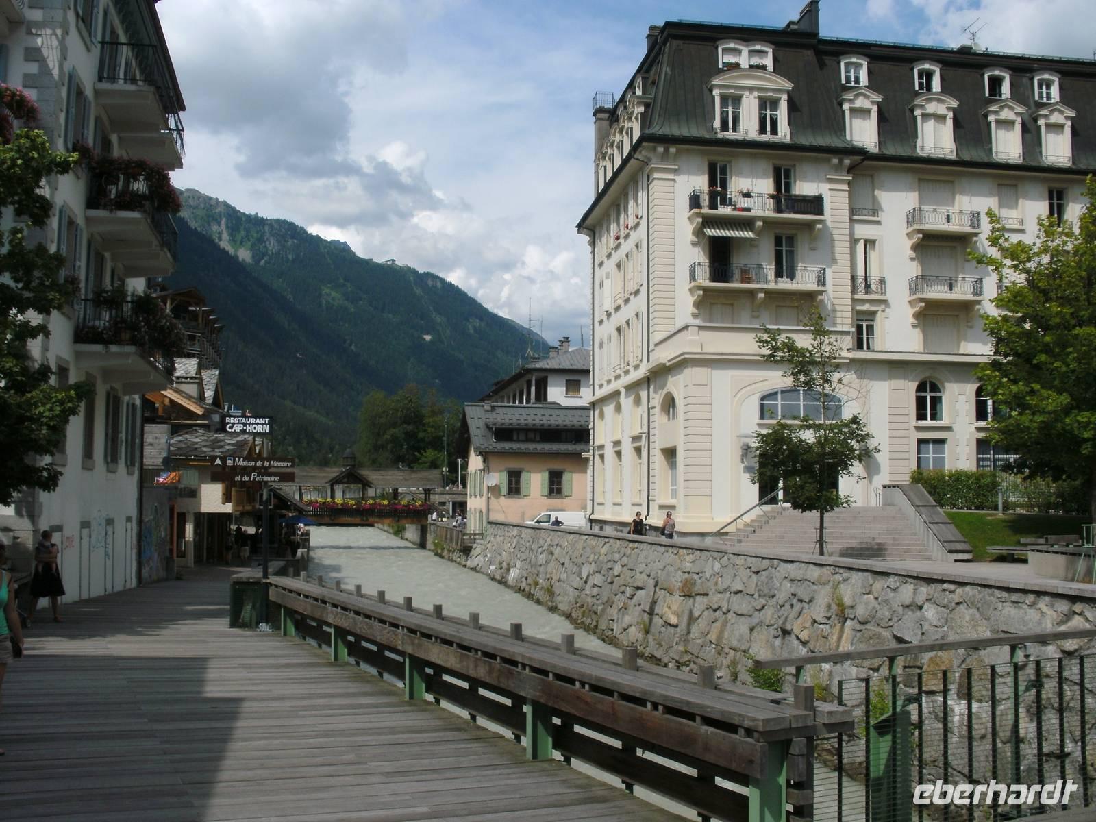 Über das Tal Abodance und den Pass de Morgins fuhren wir in das Rhonetal im schweizerischen Wallis, weiter über Martigny, am Rhone-Knie gelegen, mit der stolzen Burgruine "La Batiaz". Über den atemberaubende Pass „Col de la Forclac (1.527m ü.NN), vorbei an Weinbergen und Aprikosen-Feldern, erreichen wir gegen Mittag die bekannte Mont Blanc-Stadt Chamonix.