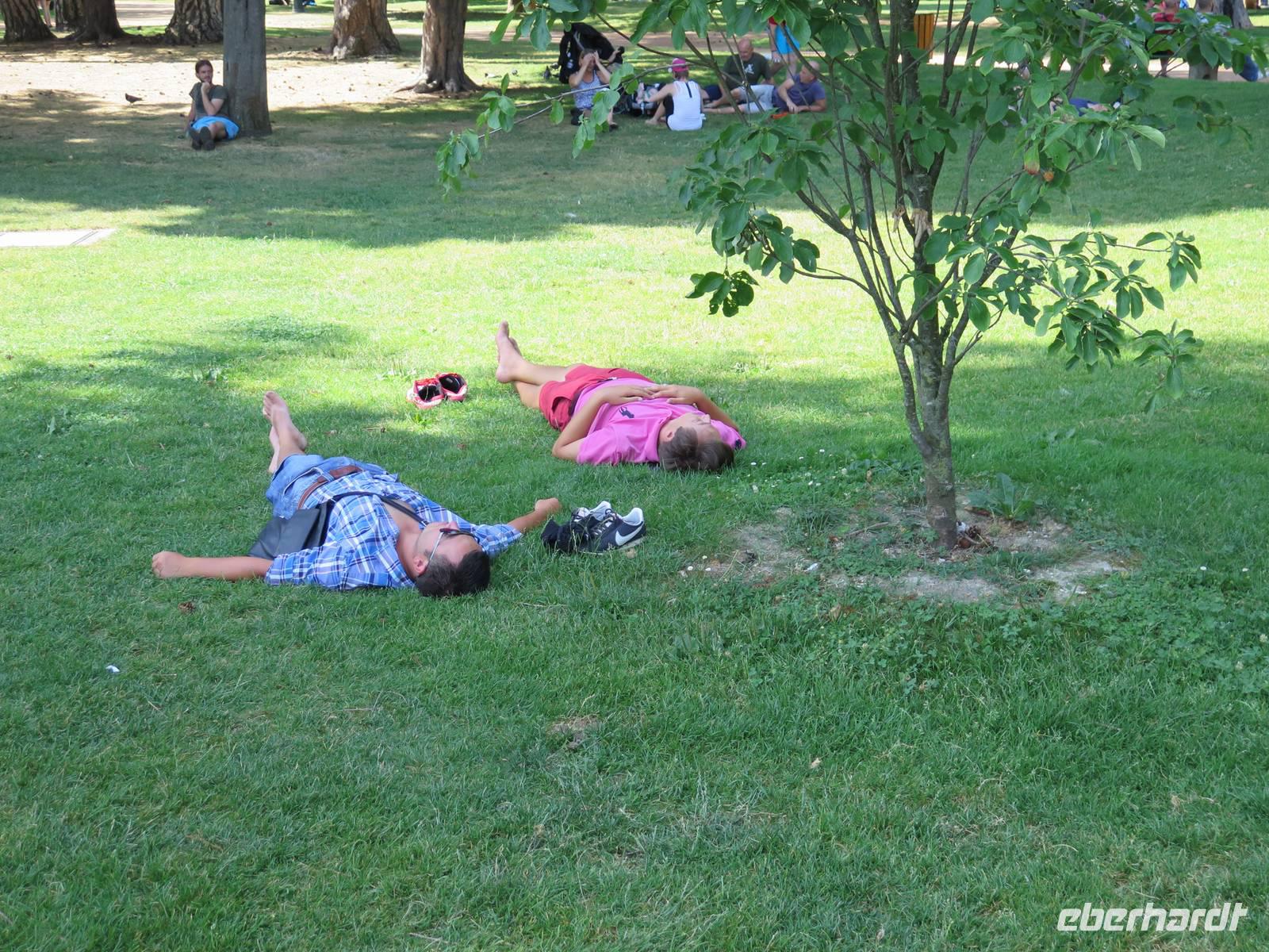 Das Venedig der Alpen liegt in Frankreich. So sagt man von Annecy. Eine Stadt am saubersten See der französischen Alpen. Mit vielen Kanälen und ebenso vielen Kirchen. So scheint es. Wir flanieren mit unserer örtlichen Führerin, der Mariella, durch den Ortskern mit den vielen blumengeschmückten Geländern an den Kanälen. Sehen das Denkmal des Jean-Jacques Rousseau und hören seine Geschichte und die der Madame de Warens. Machen eine Bootsfahrt auf dem See oder gehen baden. Oder sitzen einfach nur auf einer Bank, essen ein Eis und beobachten die vielen Menschen an diesem Sonnabend, die bei dem schönen Wetter lieber draußen sind als zu Hause. Am Nachmittag fahren wir am Genfer See entlang zurück. In Evian nehmen wir Abschied vom See und genießen die herrlich gestaltete Promenade.