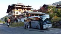 Heute geht es nach Hause. Das Thermometer beim Hotel an der Talstation eines der Sessellifte im französischen Chatel zeigt so früh wieder 20 Grad weniger an, als wir im Laufe des Tages noch erreichen werden. Wir verlassen Frankreich, fahren durch Montreux, Bern und Basel in der Schweiz. Erreichen deutsches Territorium und verabschieden uns von den ersten Reisegästen in Karlsruhe. Quer durch Deutschland reisend fängt es ab Hainichen an, so richtig zu schütten. An der Endstation in Dresden dann sehen wir einen doppelten Regenbogen. Wir sind wieder zu Hause.