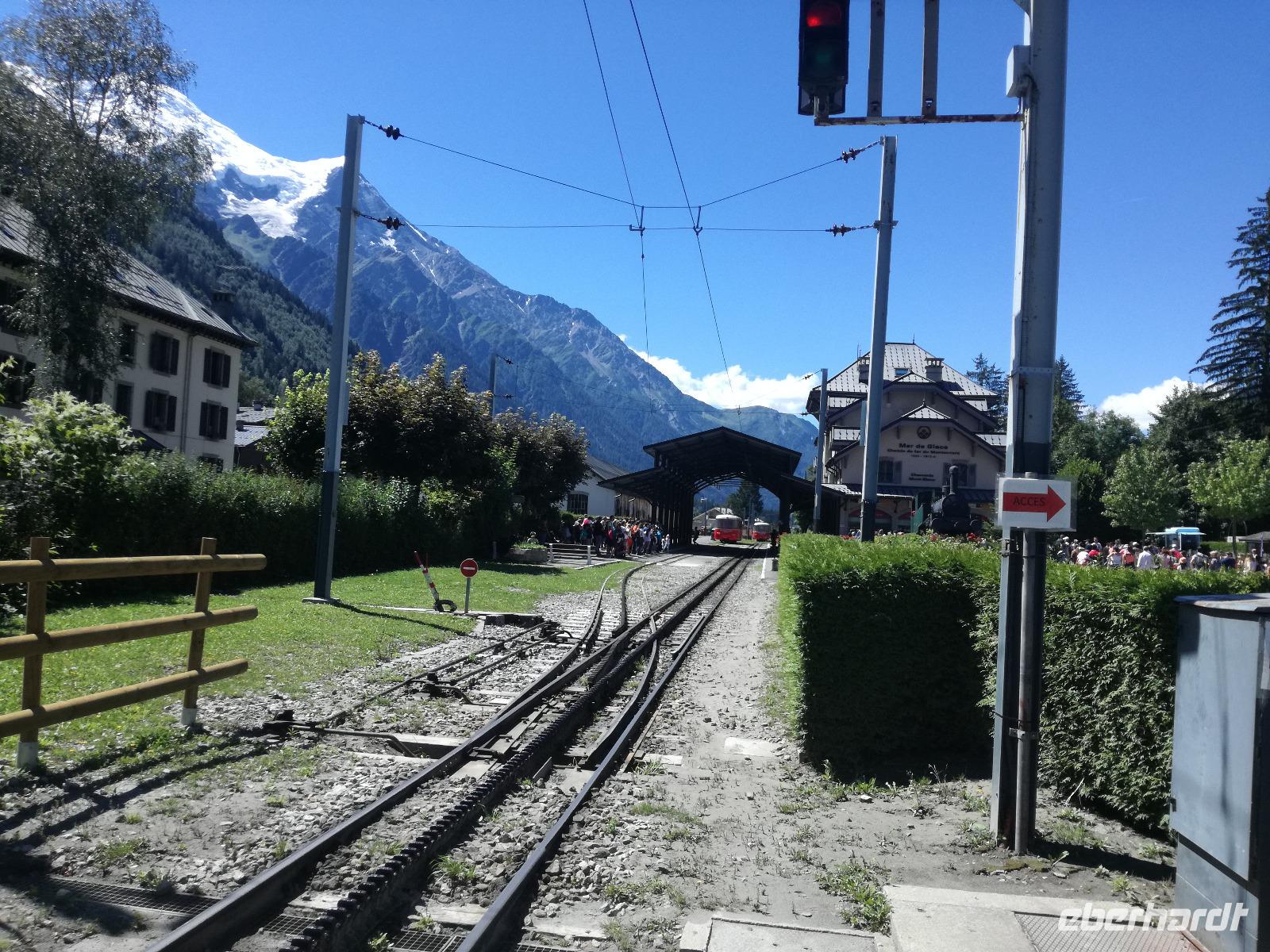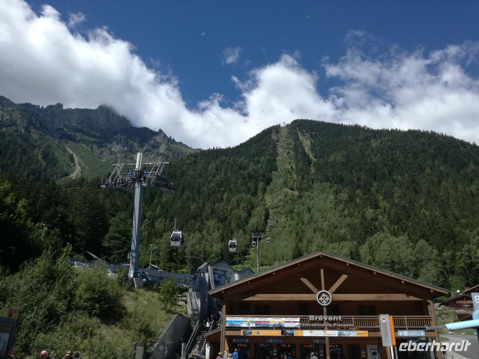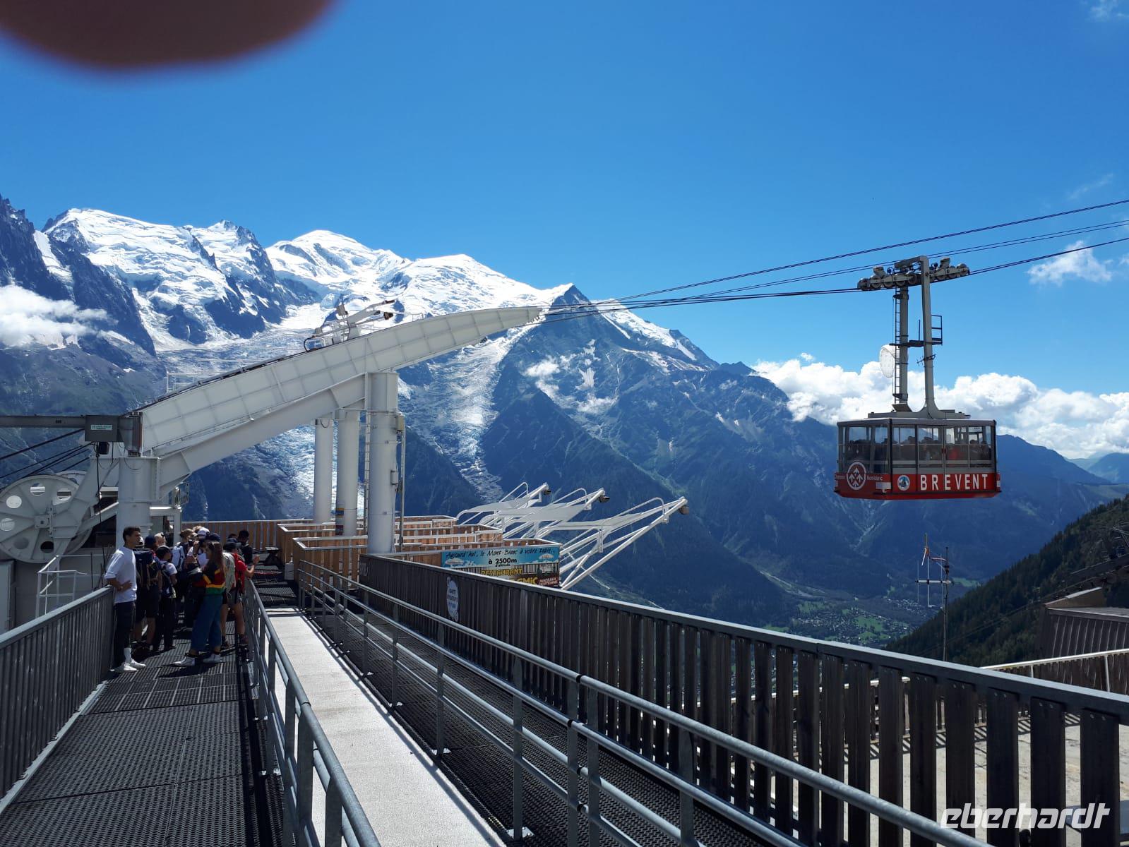 In Chamonix angekommen teilte sich die Gruppe: Der eine Teil fuhr hoch zur Aiguille du midi auf 3.777 Meter Höhe, der andere Teil zum Eismeergletscher und die letzte Gruppe begab sich auf den Brévent - ein richtiger Geheimtipp, denn von dort hat man eine atemberaubende Sicht auf den Mont Blanc, der sich direkt gegenüber befindet. Leider war die Zeit in Chamonix ein bisschen knapp, da es Feiertag war (Maria Himmelfahrt) und die Stadt noch voller waren als sonst.