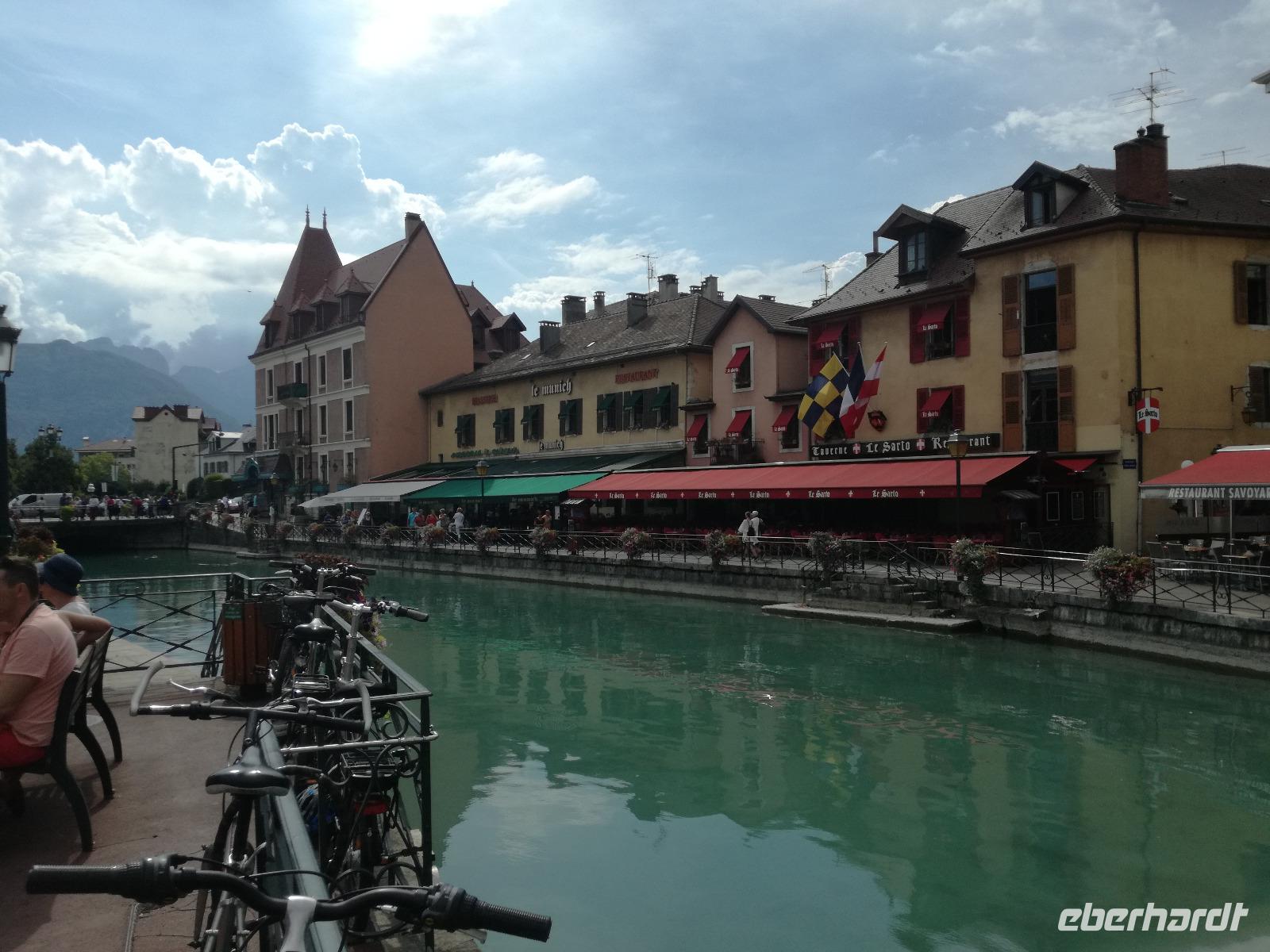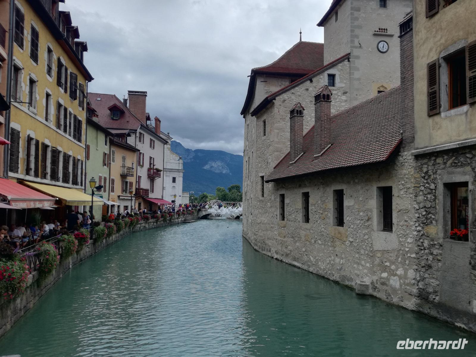 Am 5. Tag der Reise, von Aube begleitet, unsere örtliche Reiseleiterin und Inhaberin des Hotels wo wir untergebracht waren, ging es zum „Venedig der Alpen". Kurz gesagt ging es nach Annecy. Am Rand des Sees gebaut und vom Fluss Thiou durchquert, hatte man den Eindruck in Italien zu sein. Der Eindruck wurde noch von den farbenfrohen Häusern Annecys verstärkt - eine Erinnerung an der Zeit wo die Herzöge der Savoye auch über Sardinien herrschten.