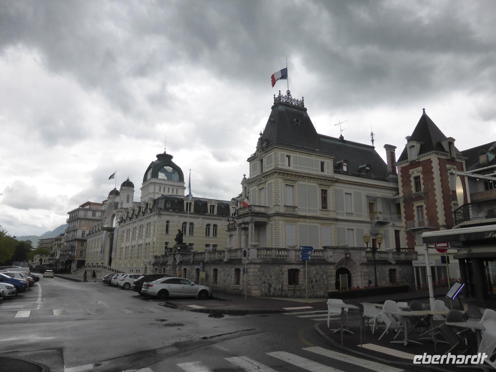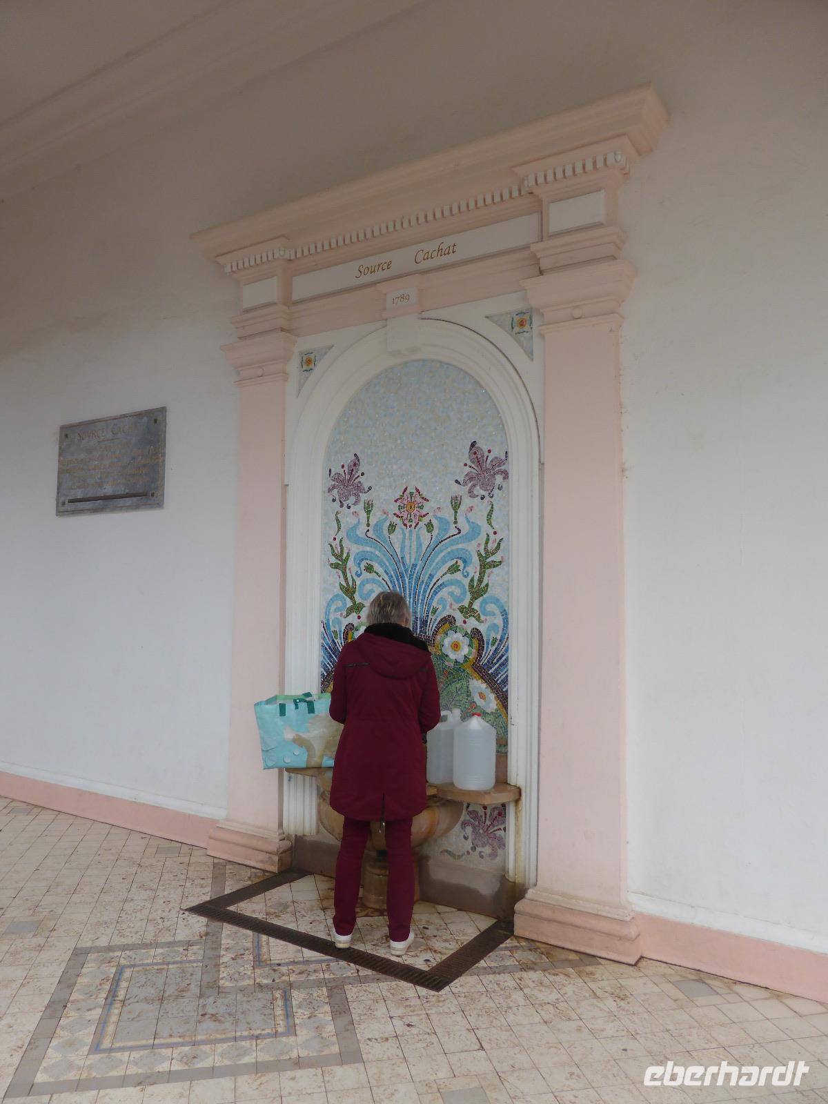 Unser erster Ausflugstag führte uns hinunter an den Genfer See. Heute mussten wir mit dem Wetter sehr viel Geduld haben. Der Tag begann mit starkem Regen und Hagel. Durch das Vallee d´Aulps erreichten wir den berühmten Kurort Évian les Bains, „Die Perle des Genfer Sees". Es liegt malerisch zwischen dem Seeufer und den Höhen des Chablais und ist bekannt wegen dem Heilwasser. Das 11,6 °C warme Wasser wird durch den Gletschersand des Pays Gavot gefiltert und weist einen ausgesprochen geringen Mineralgehalt auf. Die heilende Wirkung des Évianer Wassers wurde erst 1789 von einem Edelmann aus der Auvergne, dem Marquis von Lessart, entdeckt. Während eines Stadtbummels lernten wir das Casino, das Theater sowie die Villa und das Palais Lumiere kennen. Der Quelle Cachat des berühmten Wasser von Evian statten wir auch einen Besuch ab und reihten uns in die Abfüller mit ein.