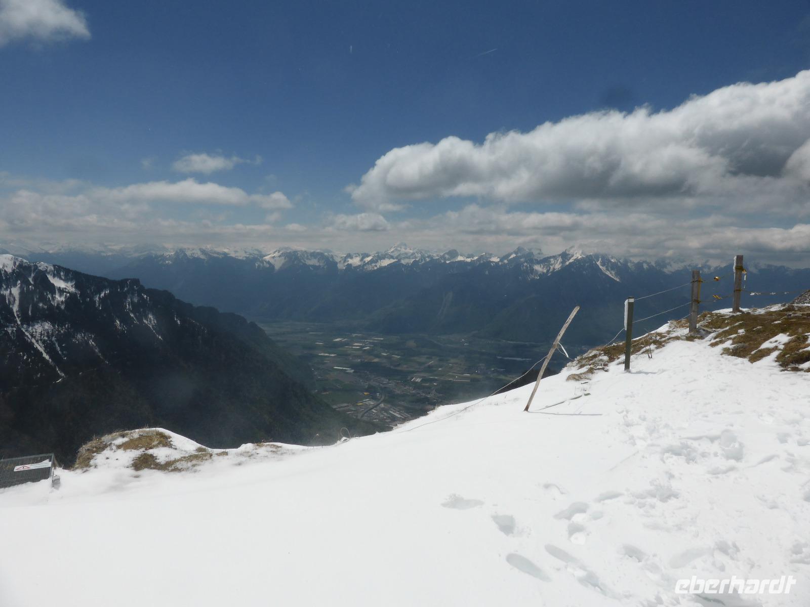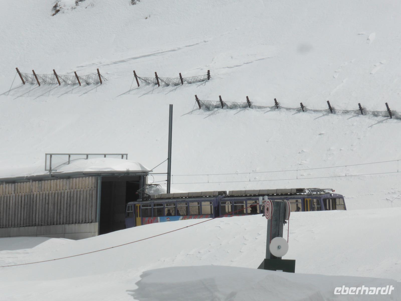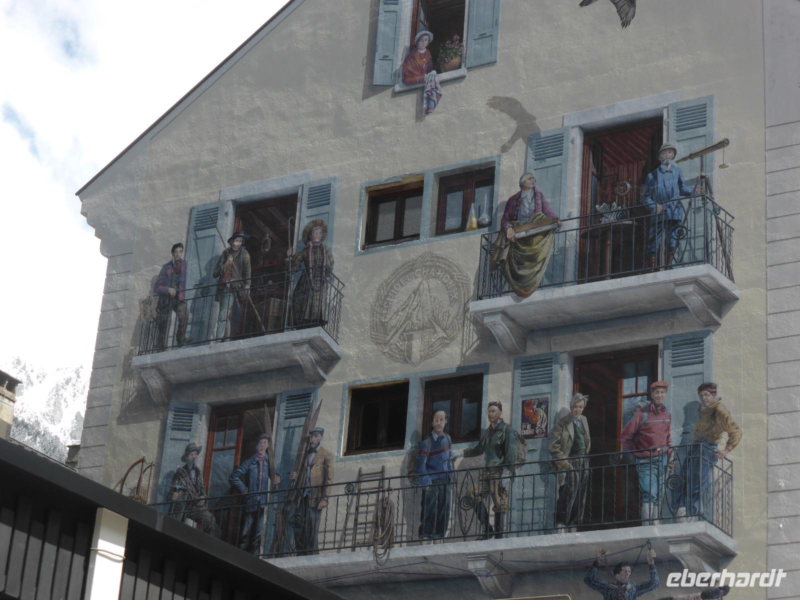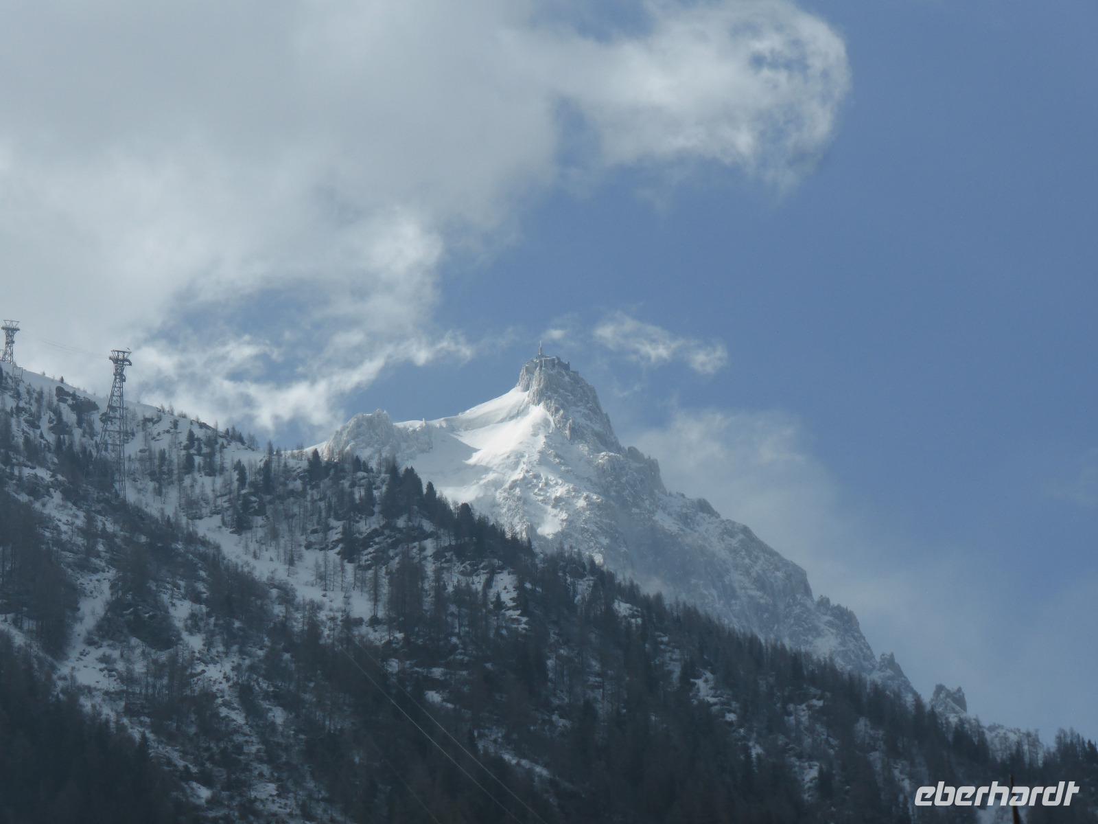 Bei blauem Himmel zeigte sich auch bald das imposante Massiv des Mont Blanc. Leider wehte sehr viel Wind, sodass die Entscheidung der Seilbahnöffnung immer wieder verschoben wurde. Am Ende entschlossen sich fast alle Gäste mit der Monteversbahn zum Eismeergletscher zu fahren.