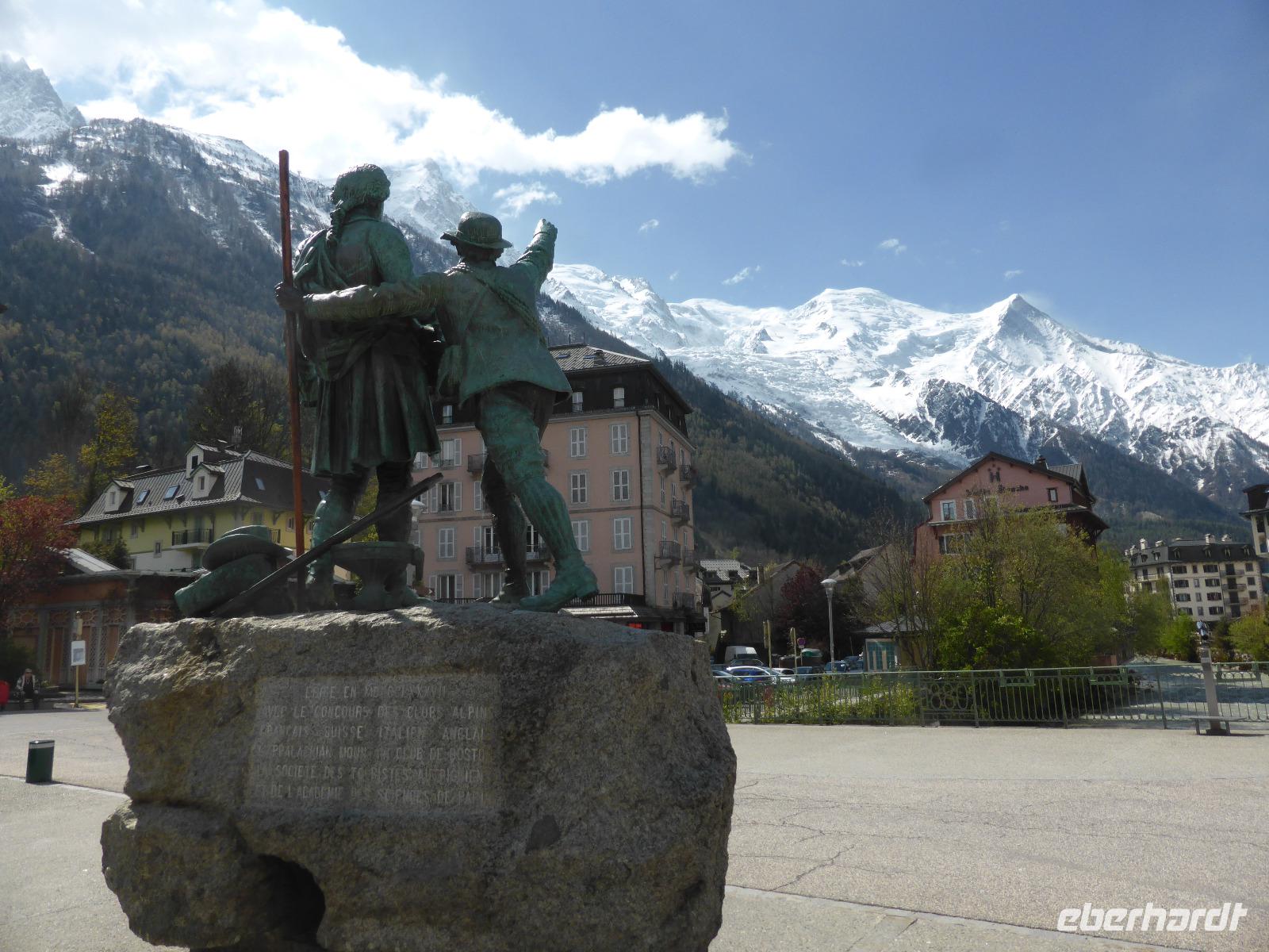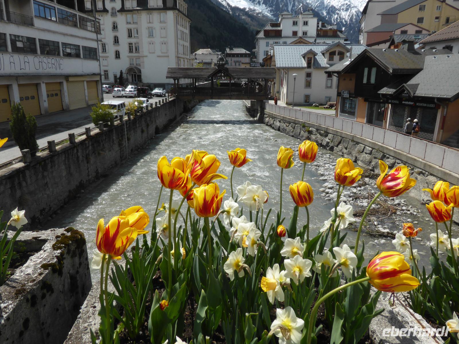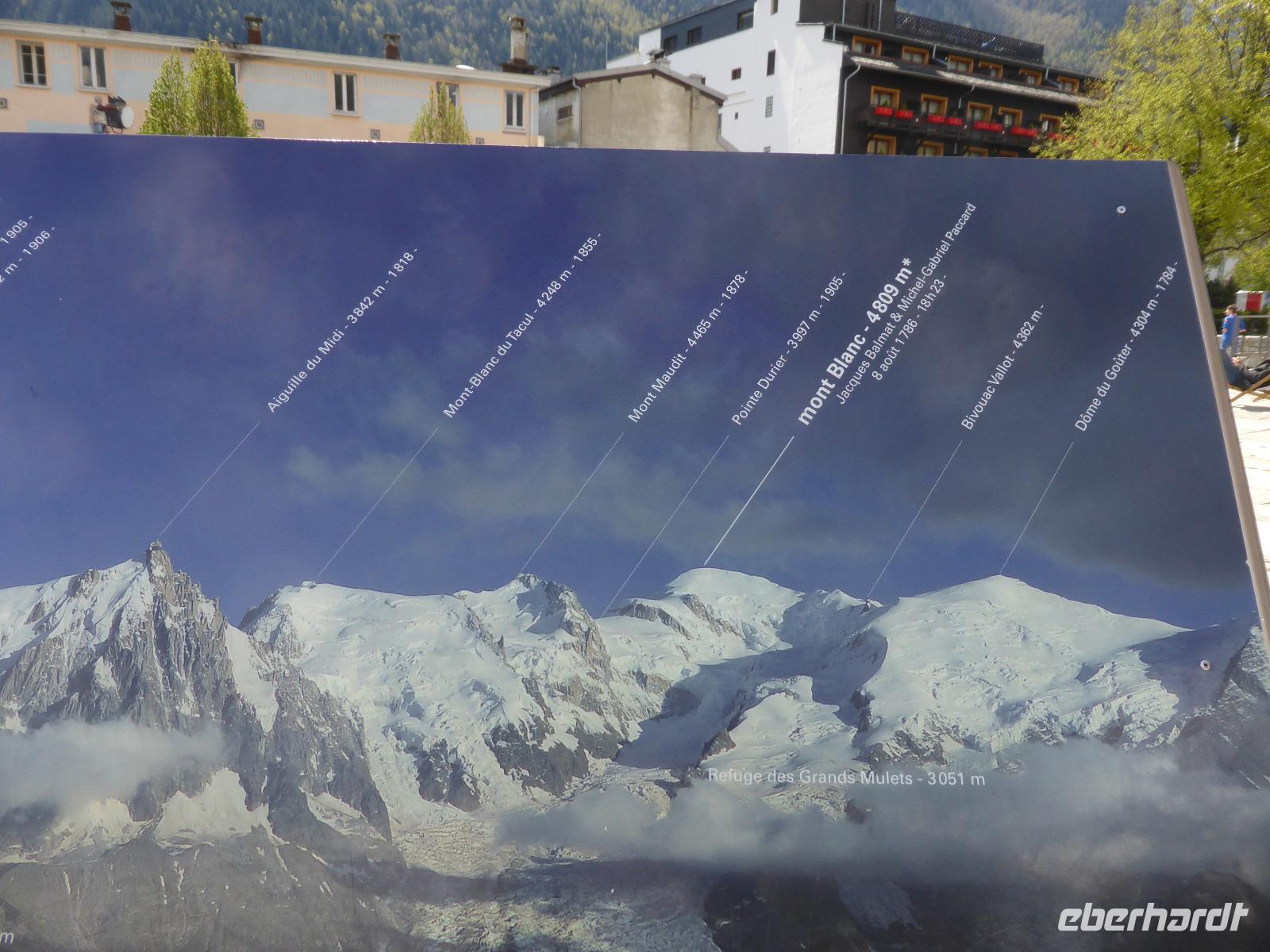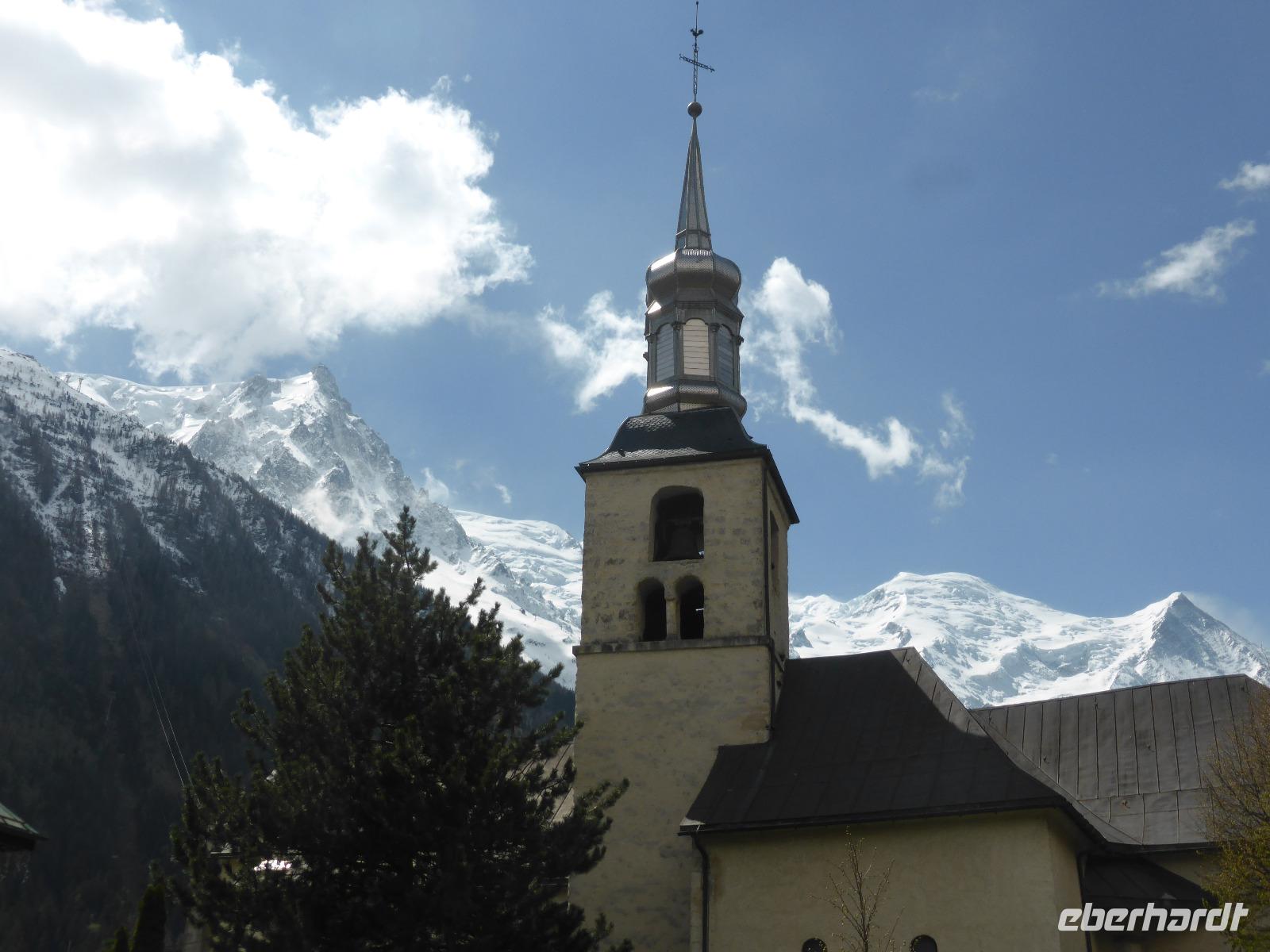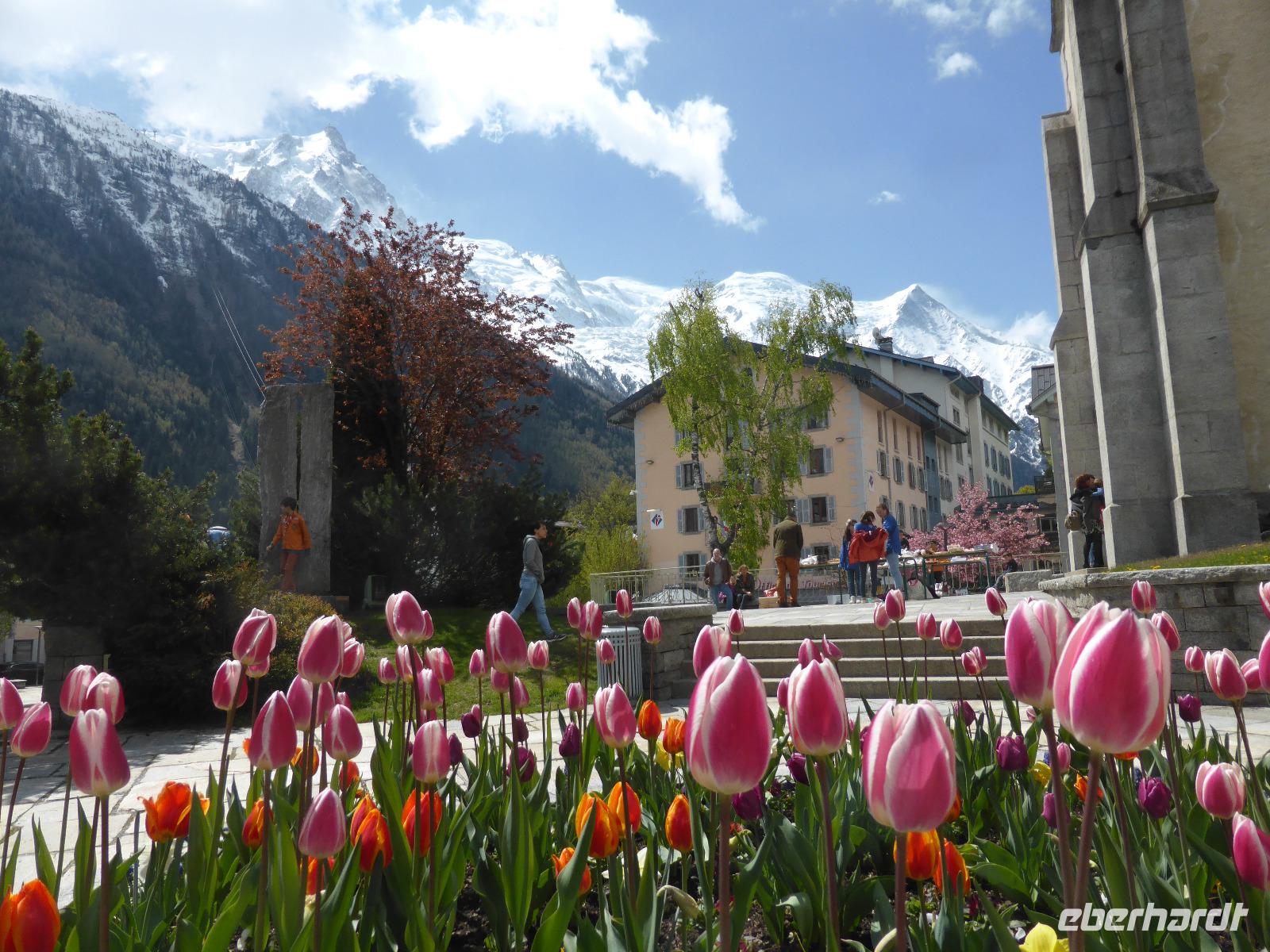 Der Blick zum Gletscher war frei. Auch die Seilbahn zur Grotte wurde noch geöffnet. Für einen Bummel in Chamonix blieb auch noch Zeit immer mit dem Blick zum imposanten Bergmassiv.