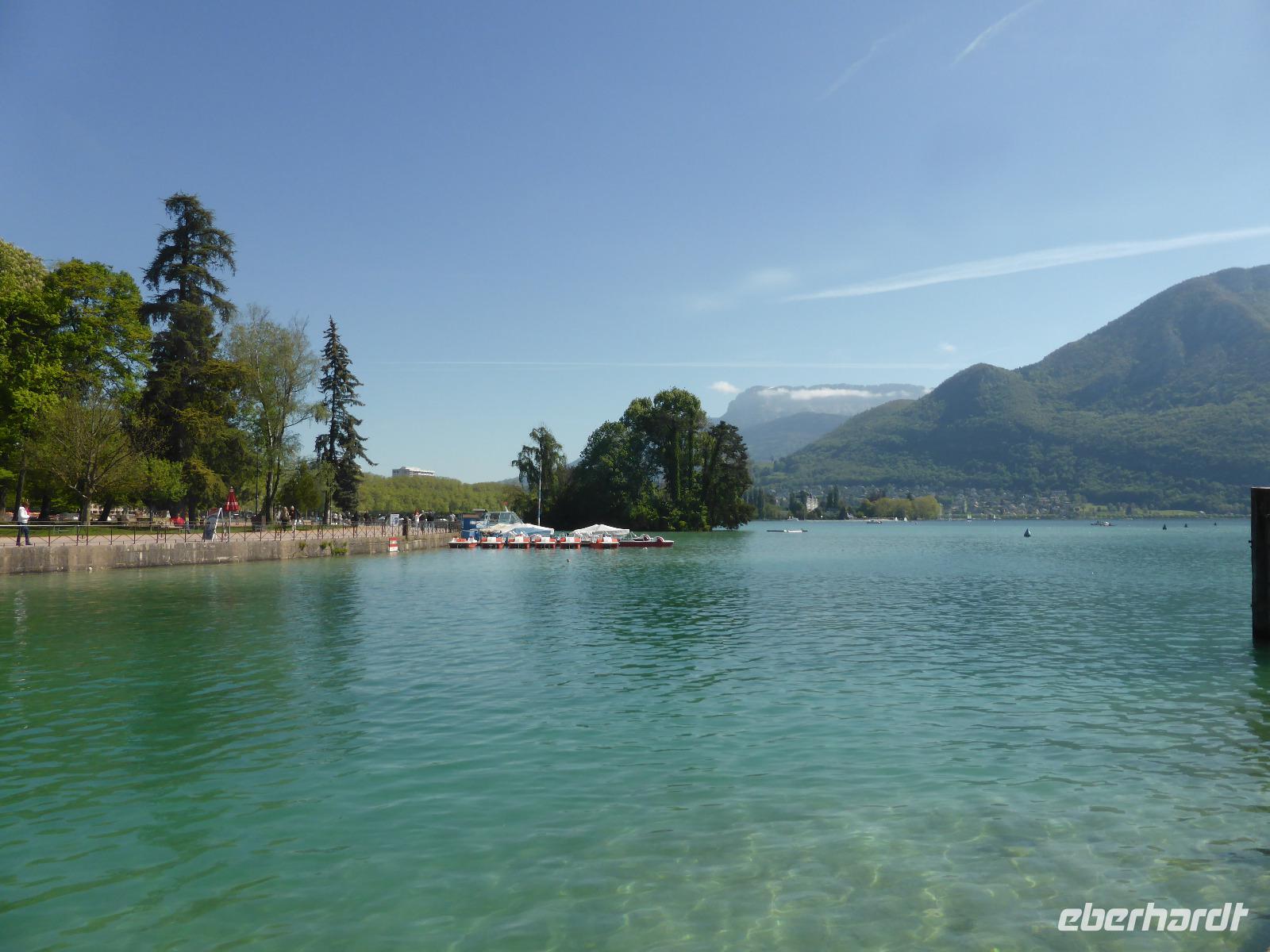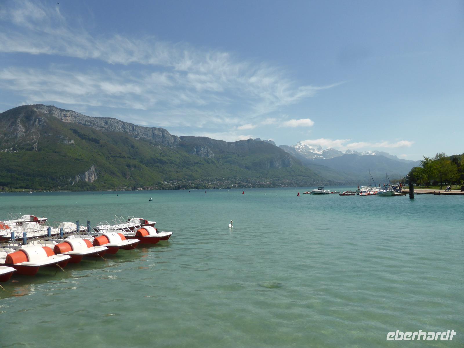 Unser letzter Ausflugstag führte uns bei strahlendem Sonnenschein in die wunderschöne Stadt Annecy, dem Venedig der Französischen Alpen. Begleitet wurden wir durch unsere örtliche Reiseleitung Marielle. Sie erzählte uns Wissenswertes über Land und Leute sowie die kulinarischen Spezialitäten. Gegen Mittag erreichten wir Annecy. Bei einem Stadtbummel spazierten wir über die kleine Insel mitten im Fluss Thiou (kürzeste Fluss Frankreichs) mit dem Palais d´Isle, dem ehemaligen Gefängnis. Einen Stopp legten wir auch am Denkmal an den bekannten französischen Philosophen Jean-Jacques Rouseau ein. In Annecy geriet er in den Bann der Madame de Warens, die ihn zum rechten, katholischen Glauben zurückführen sollte. In unserer Freizeit hatten wir genügend Möglichkeiten zur Einkehr oder auch zu einem Bummel durch den Europagarten mit seinen Mammutbäumen. Bis Menthon fuhren wir entlang des Sees. Der See wird auch gerne als das Juwel der Französischen Alpen bezeichnet und gehört zu den saubersten Alpenseen. Gespeist wird er von mehreren kleinen Bächen und einer unterirdischen Quelle, die in 82 m Tiefe entspringt. Im Hotel erwartete uns heute eine weitere savoyer Spezialität - Raclette mit Wurstwaren, Pellkartoffeln und Salat. Wir ließen uns diese Besonderheit schmecken.