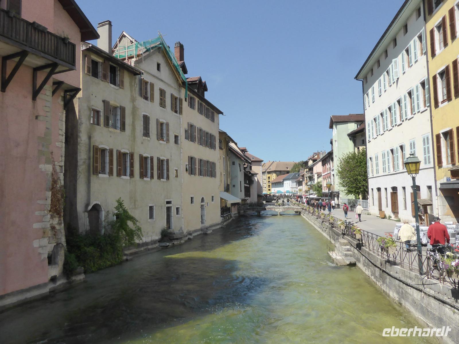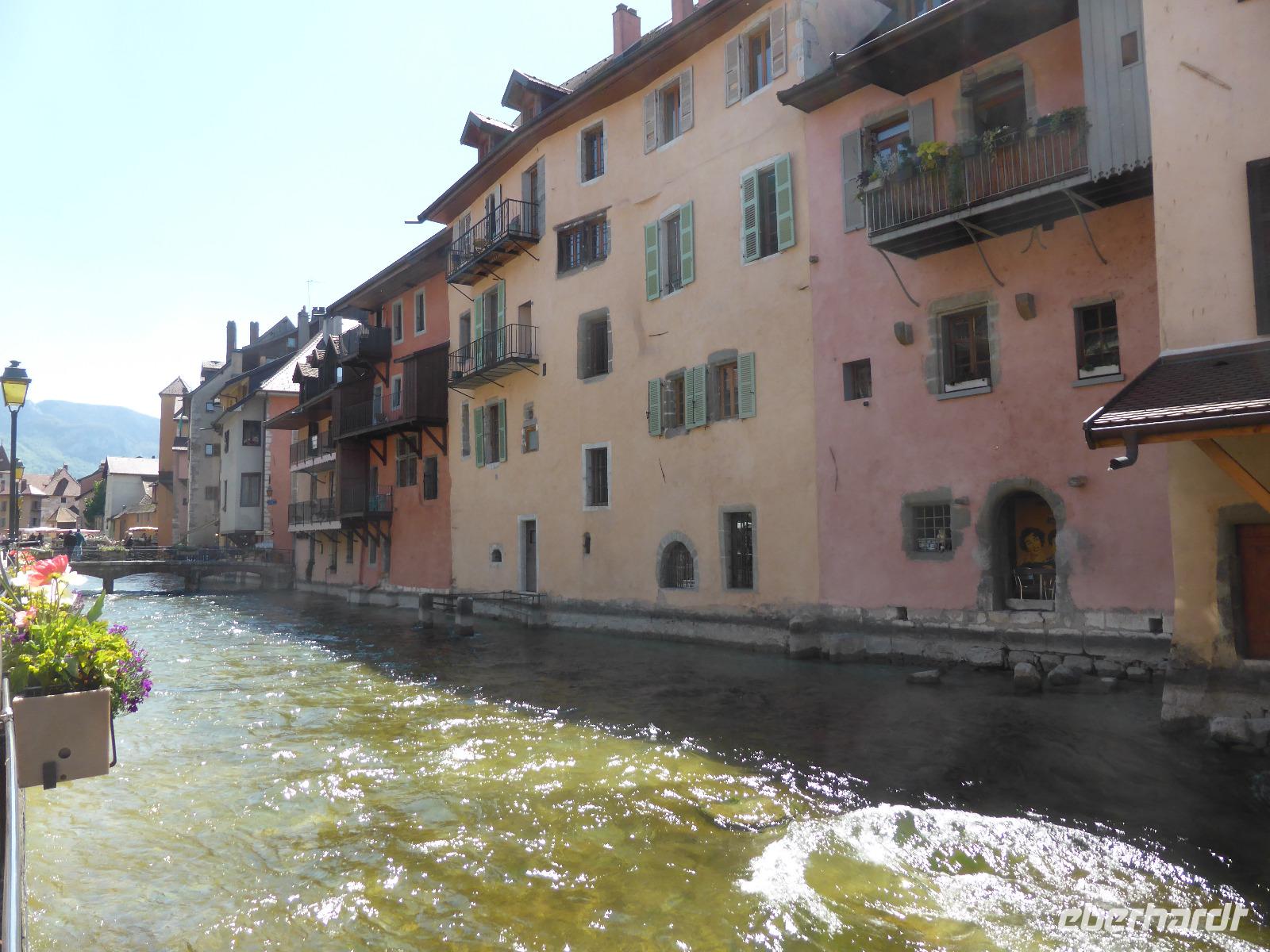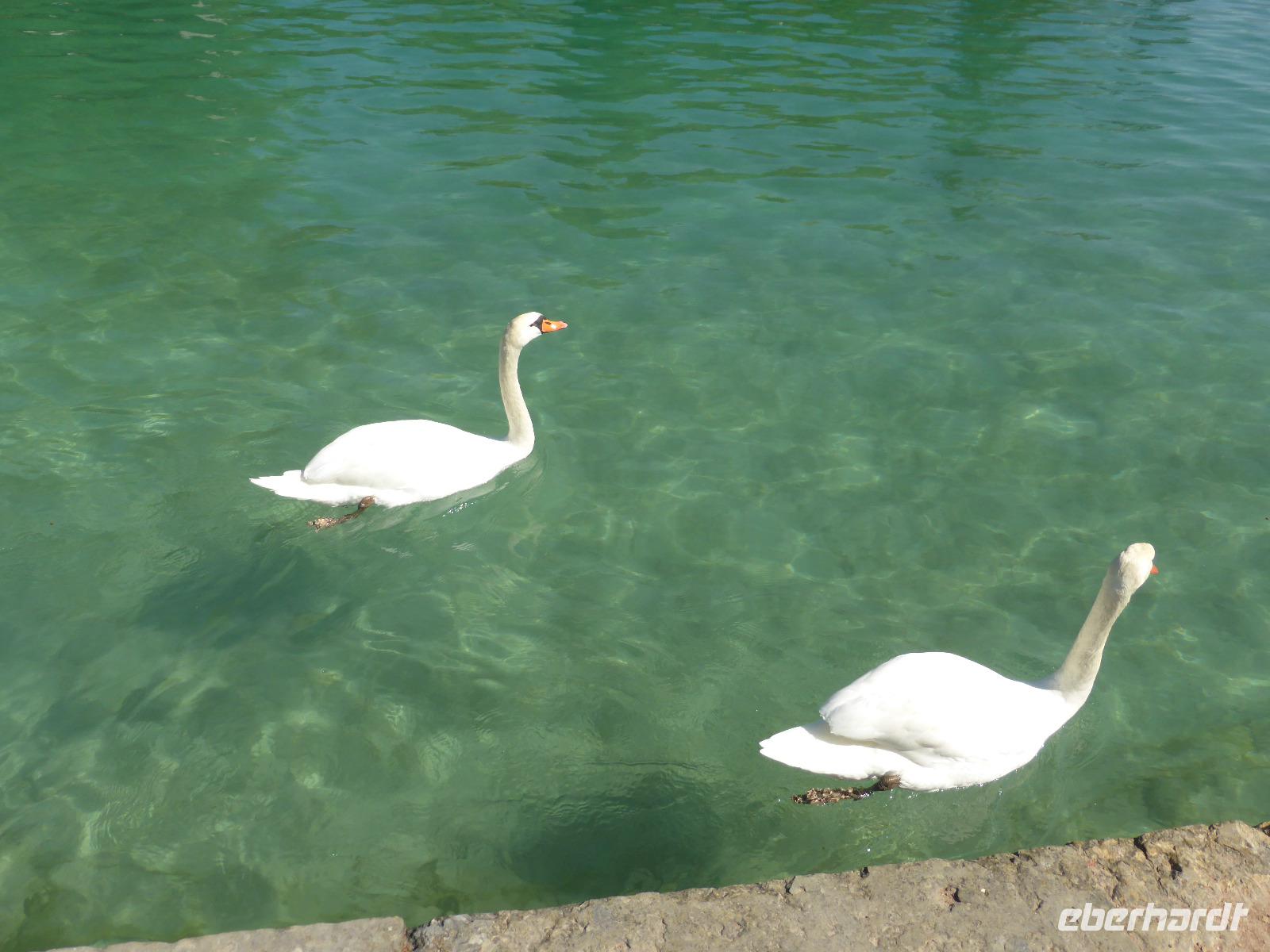 Entlang des Südufers erreichten wir eines der schönsten Dörfer Frankreichs - Yvoire. Sie liegt auf einem Landvorsprung, der den „kleinen" vom „großen" See trennt. Yvoire wurde im 14. Jh. auf den Resten einer Festung neu aufgebaut. Der Charme vergangener Zeiten liegt noch immer über dem malerischen Dörfchen. Die engen Gassen mit den blumengeschmückten Hausfassaden luden zu einem Bummel ein. Der blaue Himmel ließ diesen Aufenthalt zu einem besonderen Erlebnis werden.