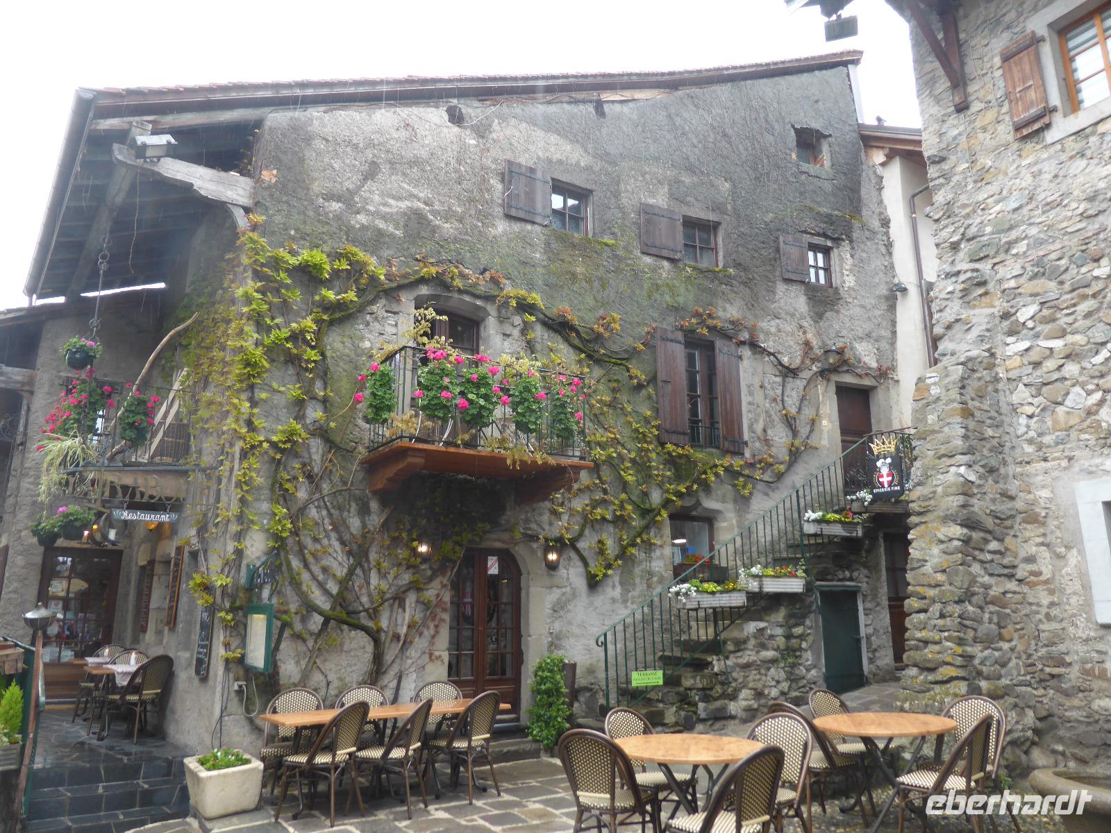 Über den Col de la Forclaz (1526 m) gelangten wir in das Rhonetal nach Martigny. Sie gehört zu den ältesten Walliser Siedlungen und war bereits zur Römerzeit eine bedeutende Siedlung. Auf unserem Bummel durch die Stadt entdeckten wir die römischen Bäder, die archäologischen Ausgrabungen, den Grenzstein sowie das Glasgemälde im Rathaus am Place Central. Auf Wunsch bummelten wir weiter über das Barryland zum kleinen Amphitheater.