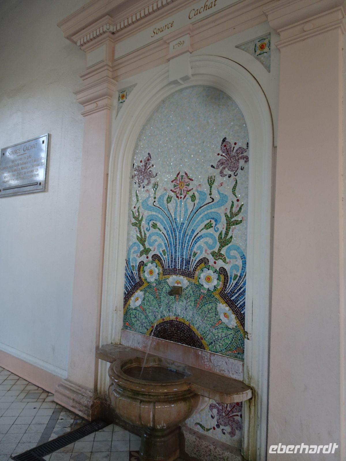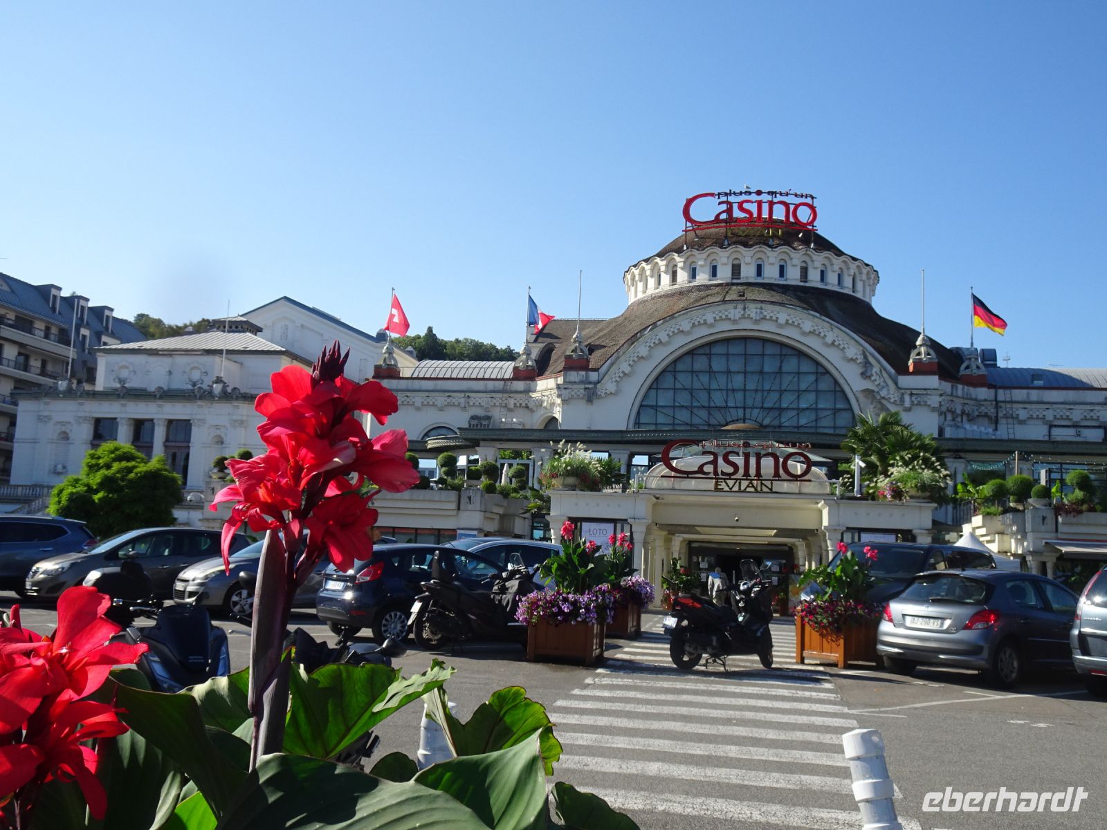 Durch das Aboundance-Tal ging es zuerst in den international bekannten Kurort Evian. Die heilende Wirkung des Wassers wurde im Jahr 1789 durch einen Edelmann aus der Auvergne entdeckt, später durch Herrn Cachet als Quelle in seinem Garten zu überregionaler Bedeutung vermarktet. Diese Quelle sprudelt heute noch, wir haben sie besichtigen und das Wasser kosten können. Einige unsere Wanderer füllten sogar ihre Wasserflaschen für die bevorstehende Wanderung. Aber da waren wir nicht die Einzigen, Gastleute nutzen diese kostenlose Quelle ebenso für ihre Gäste. Und: die heutige Abfüllanlage nutzt andere Quellen, um den Bedarf zu decken. Interessant ist, dass das Wasser als Regenwasser zwischen 25 und 50 Jahre benötigt, um durch die Gletschersande gefiltert und dann sehr mineralienarm für Babynahrung, aber auch gegen Stoffwechselstörungen und Nierenerkrankungen, eingesetzt zu werden. Evian ist jedoch nicht nur mondäner Kurort, sondern hatte auch politische Bedeutung. Am 18. März 1962 war der Ort Schauplatz des Abkommens von Evian, welches Algerien die staatliche Unabhängigkeit gab. Die Gebrüder Lumière, die Erfinder der Kinematografie, sind ebenfalls mit Evian verbunden. Antoine Lumière, ein reicher Fotograf aus einer Lyoner Industrieellenfamilie, kaufte 1896 die Villa, heute Rathaus, und das ehemalige Thermalbad, heute der Palast Lumière. Evian war die Sommerresidenz der Familie. Leider konnten wir das Kurzentrum im Jugendstil nicht besichtigen, da hier fleißig gebaut wurde. Entlang der herrlichen Uferpromenade zeigte sich Evian aber auch durch andere Prachtbauten, wie z. B. das Casino, als wunderbarer Ort am Genfersee. Übrigens: das Wasser aus Evian wird weltweit vertrieben und ist damit Botschafter des Ortes.