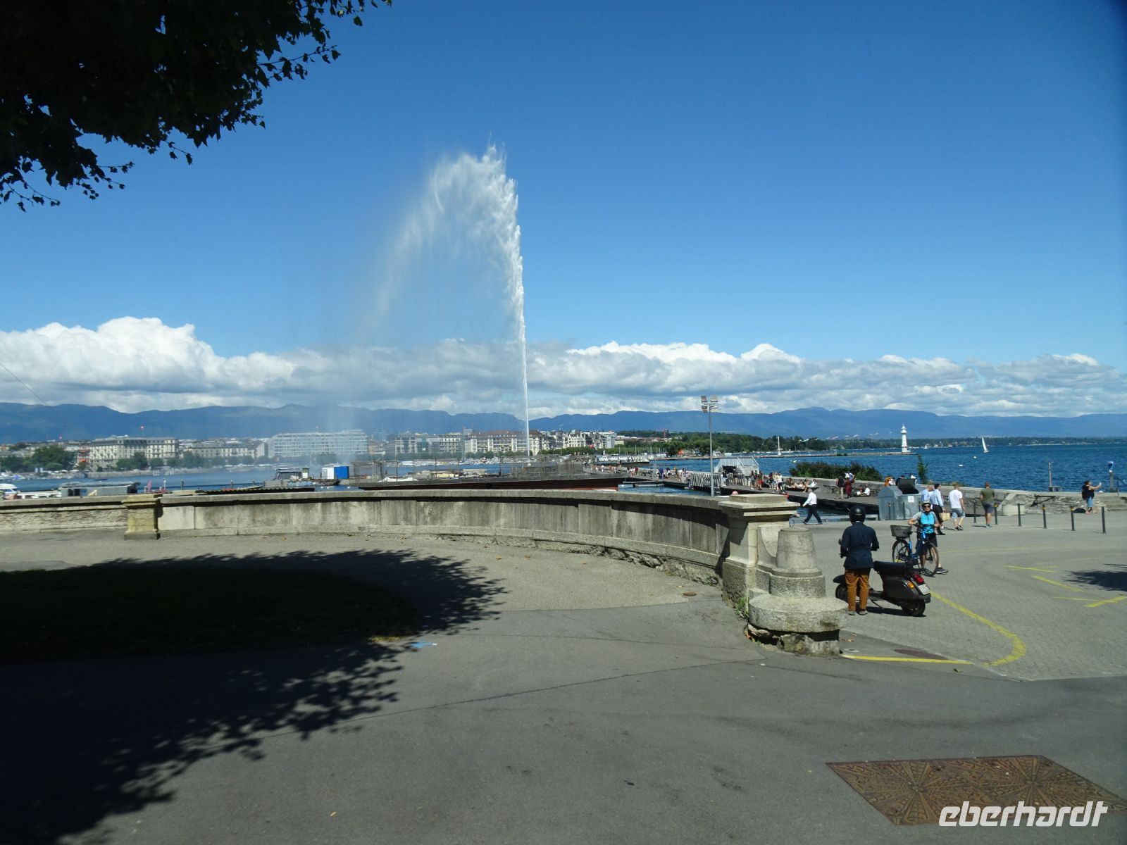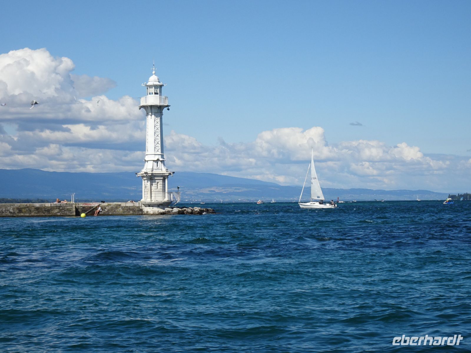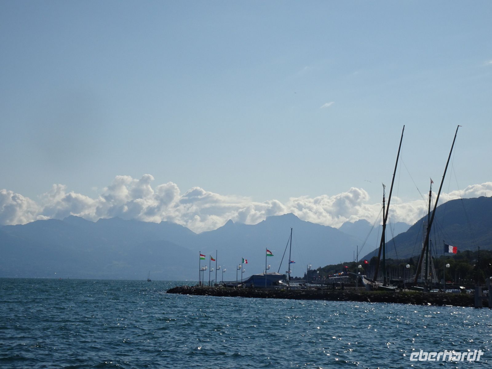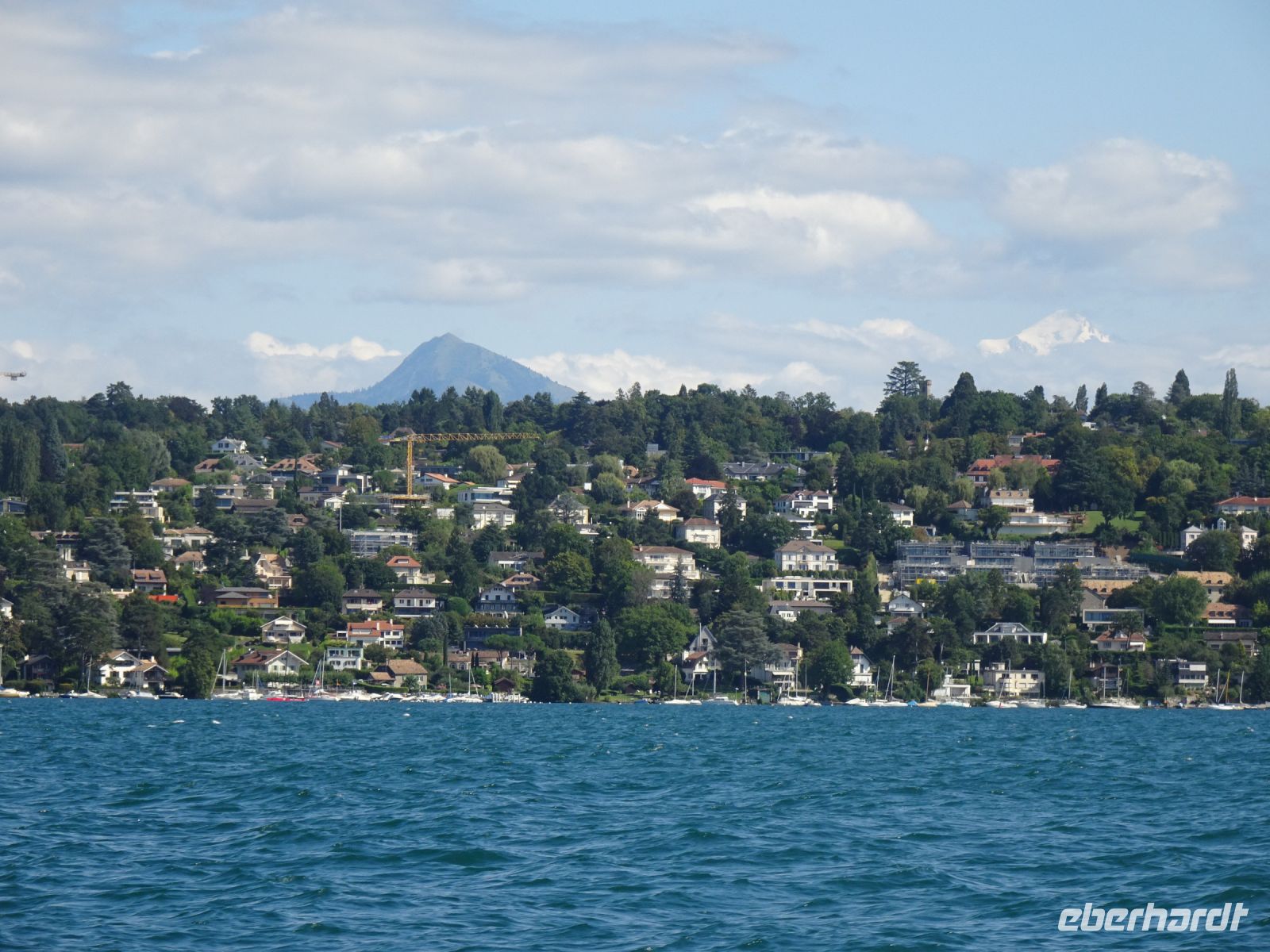 Der Genfersee, auch Lac Léman genannt, ist Westeuropas größter Binnensee und wird von der Rhone durchflossen. 1/3 gehören flächenmäßig zu Frankreich, 2/3 zur Schweiz. Aber diese Grenzen spürt man nicht. Es herrscht regelmäßiger Schiffsverkehr auf dem See. Der See ist ca. 72 km lang und an der breitesten Stelle 13 km breit. Die maximale Tiefe beträgt 310 m.