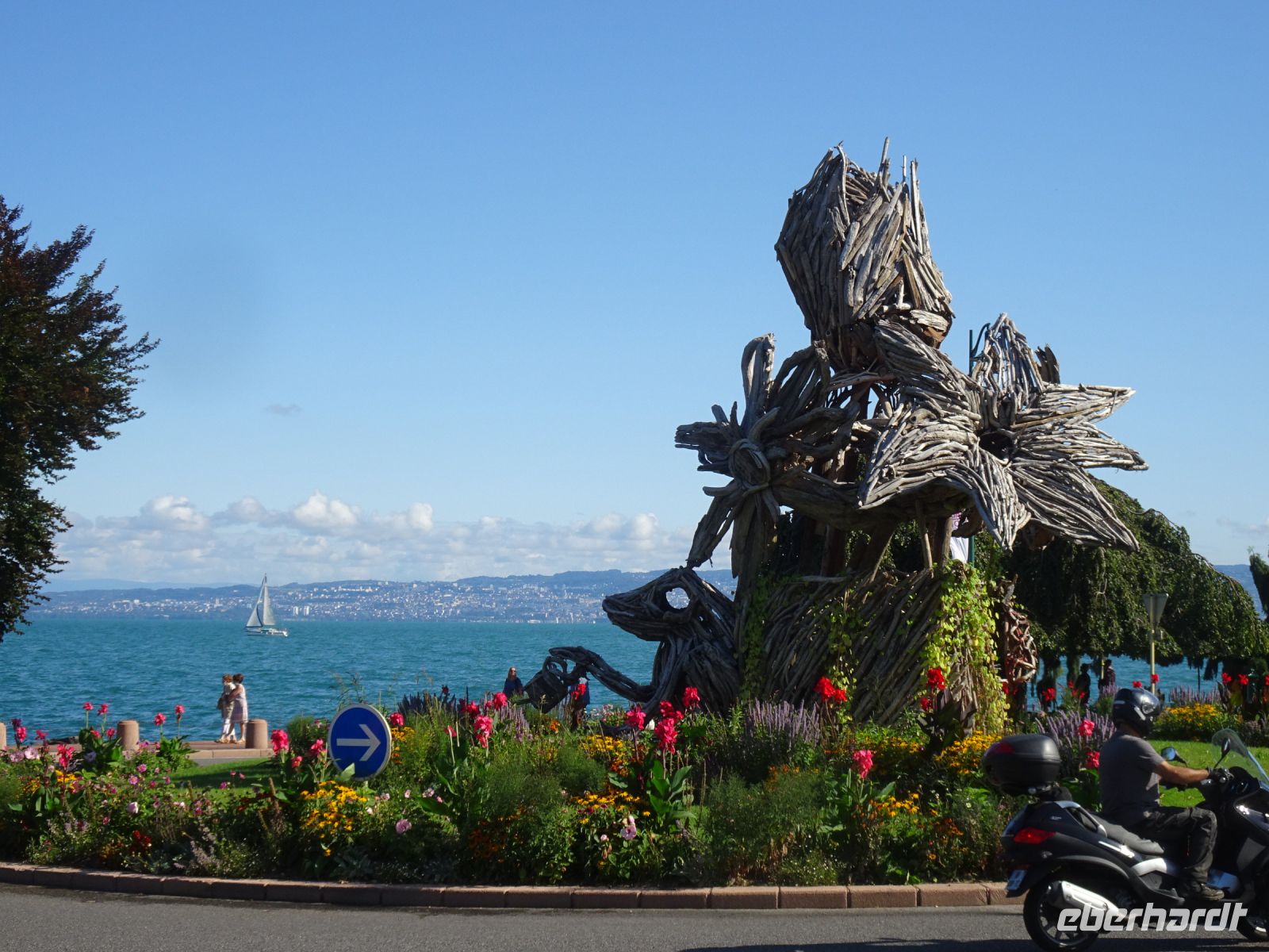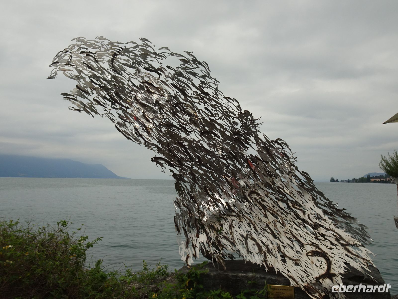 Nach einem anschließenden kurzen Spaziergang in Montreux entlang der wunderbar bepflanzten Seepromenade zum Denkmal von Freddy Mercury bestand die Möglichkeit, sich das südliche Flair mit den zahlreichen ständigen und aktuell zusätzlichen Skulpturen, die im Rahmen eines Wettbewerbes ausgestellt wurden, anzuschauen oder sich bei einem kleinen Imbiss zu stärken.