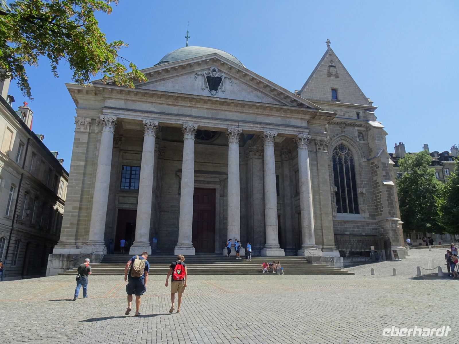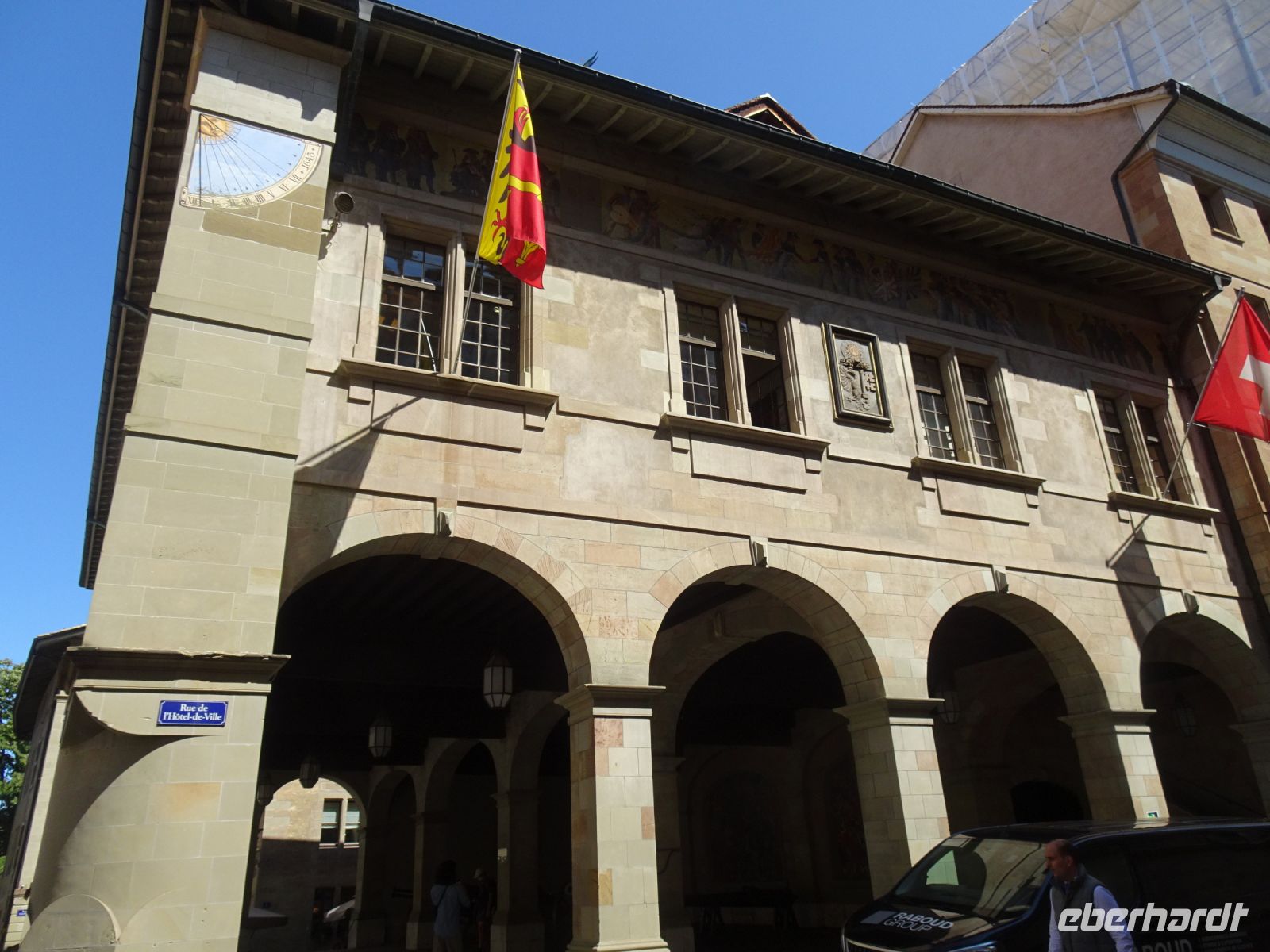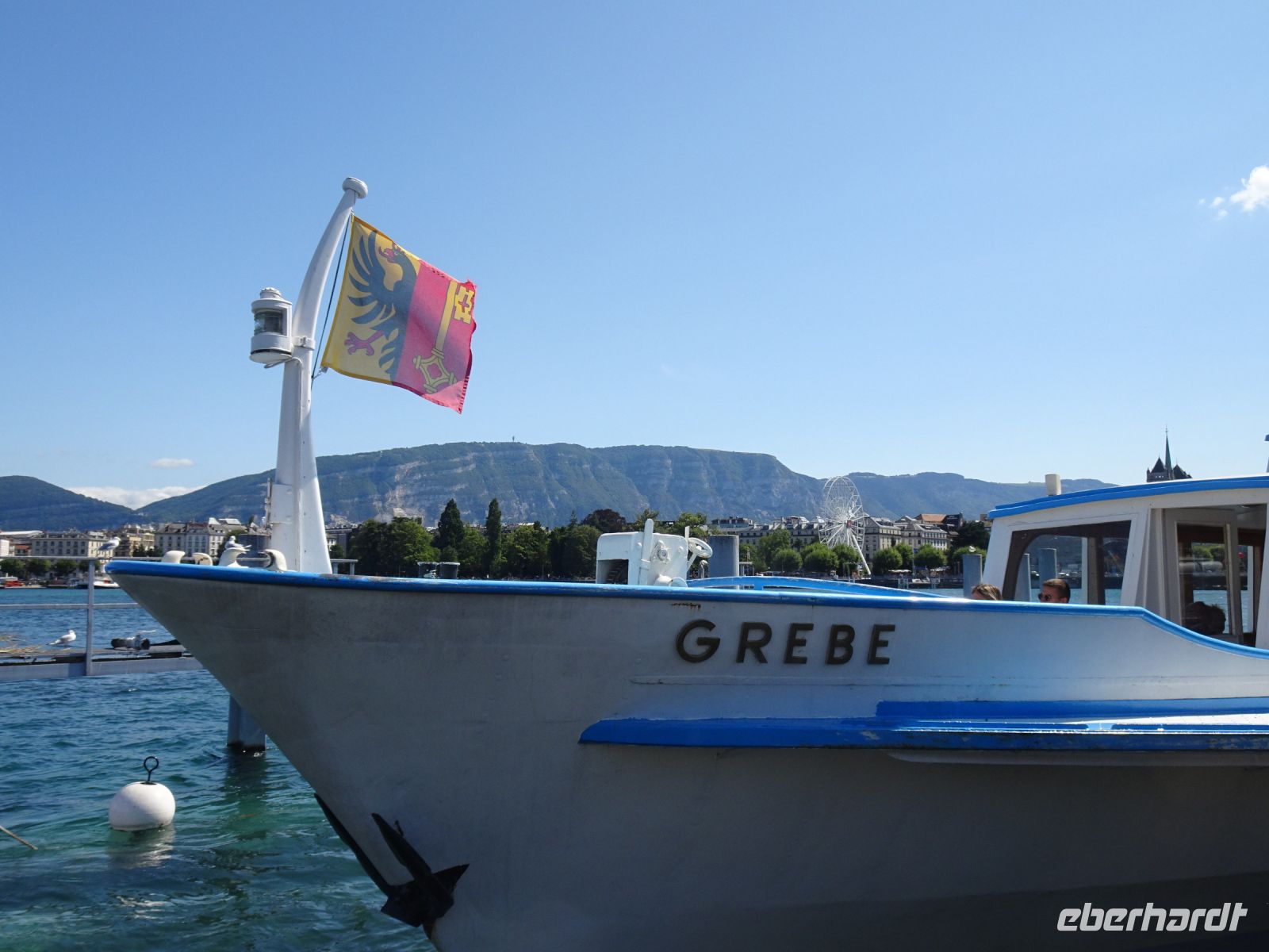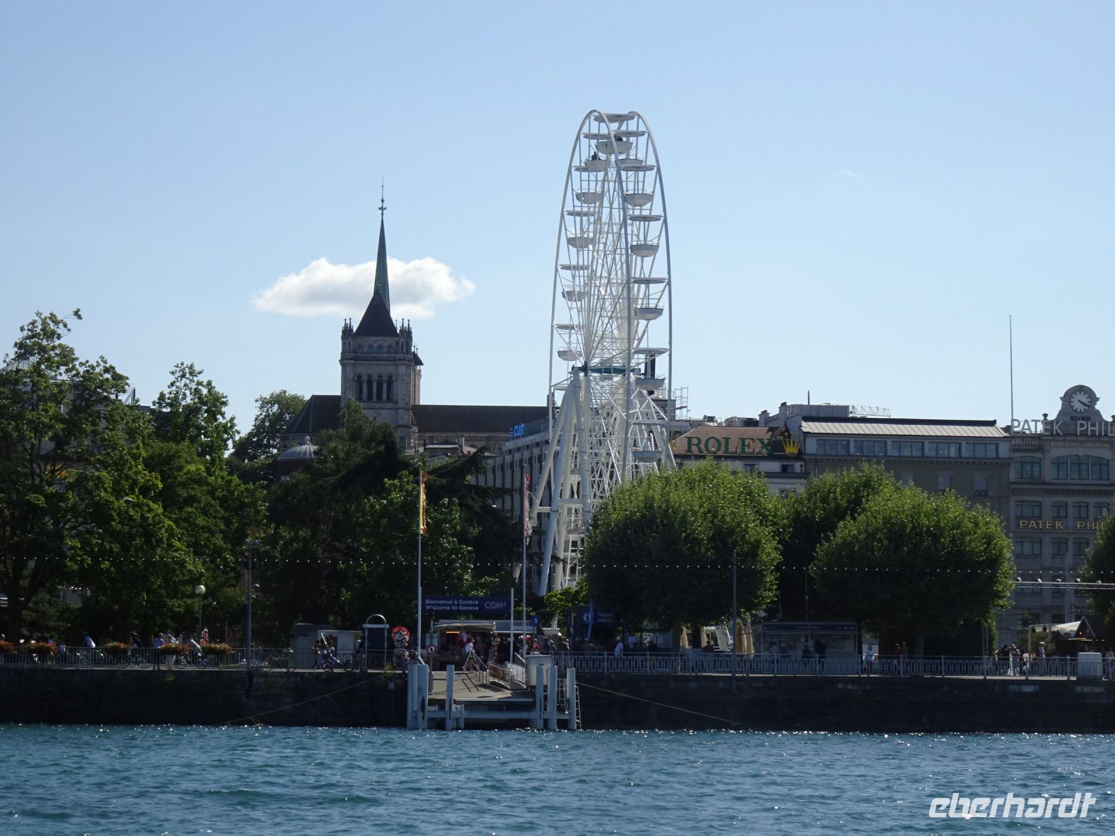 Vor unserer Schiffsrundfahrt am Nachmittag unternahmen einige Reisegäste mit unserem Reiseleiter Hartwig einen Stadtrundgang durch Genf. Blumenuhr, Kathedrale St. Pierre und Rathaus waren die Ziele, das Reformationsdenkmal konnten wir nur von oben besichtigen, die Geschichte der Reformation in Genf ist aber für Interessenten ein sehr komplexes Thema. Andere Reisegäste ließen sich bei bestem Wetter einen Kaffee oder ein Bier schmecken. Anschließend ging es mit dem Schiff zu einer einstündigen Rundfahrt. Wir bestaunten die kleine Meerjungfrau sowie etliche Gebäude mit historischem Bezug, wie Schloss Bellarive, Hotel Wilson, sahen aber auch die chinesische Botschaft.