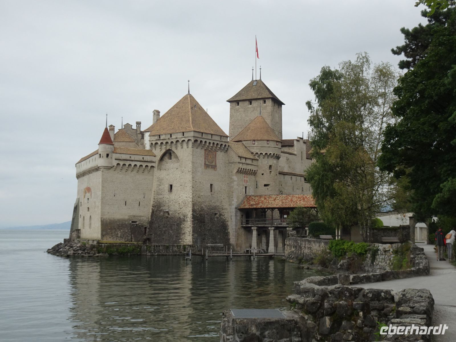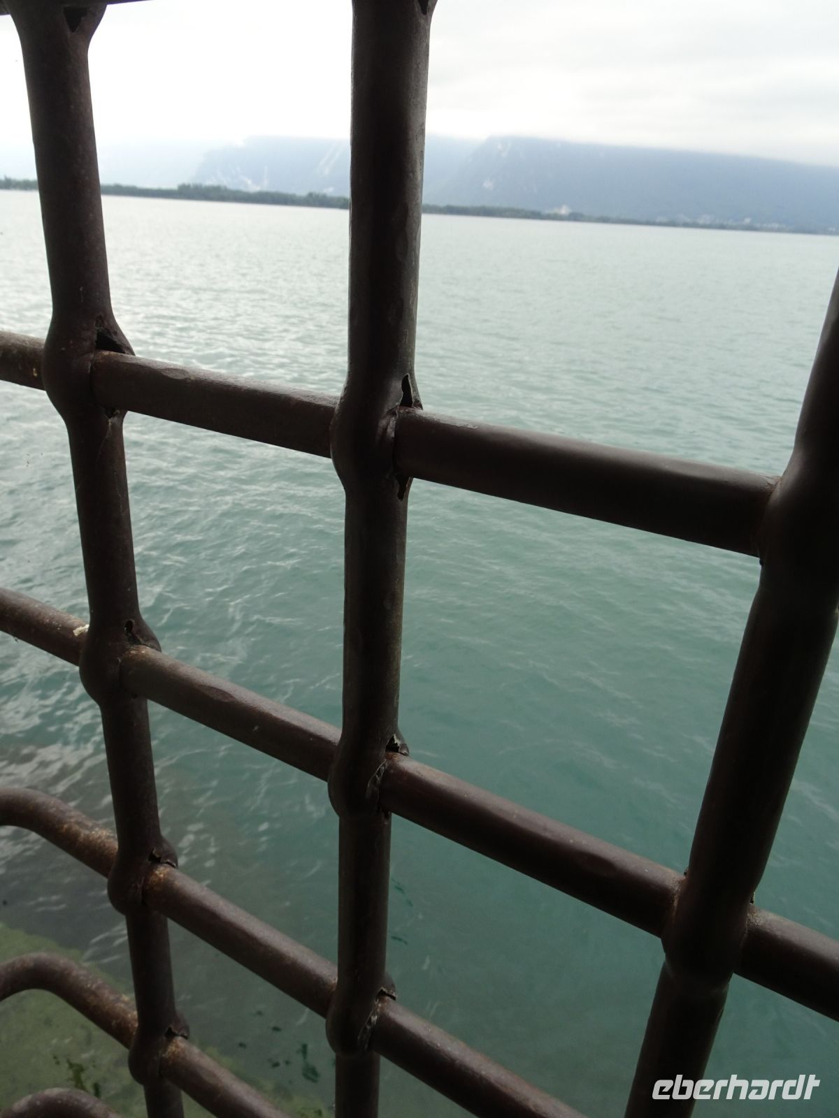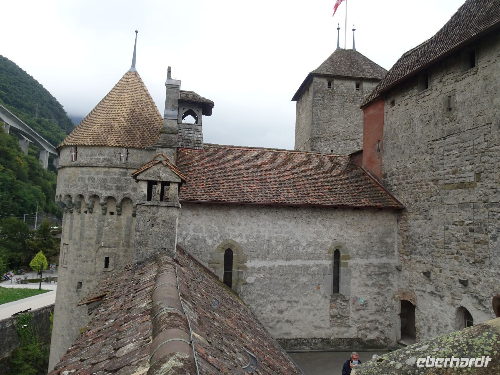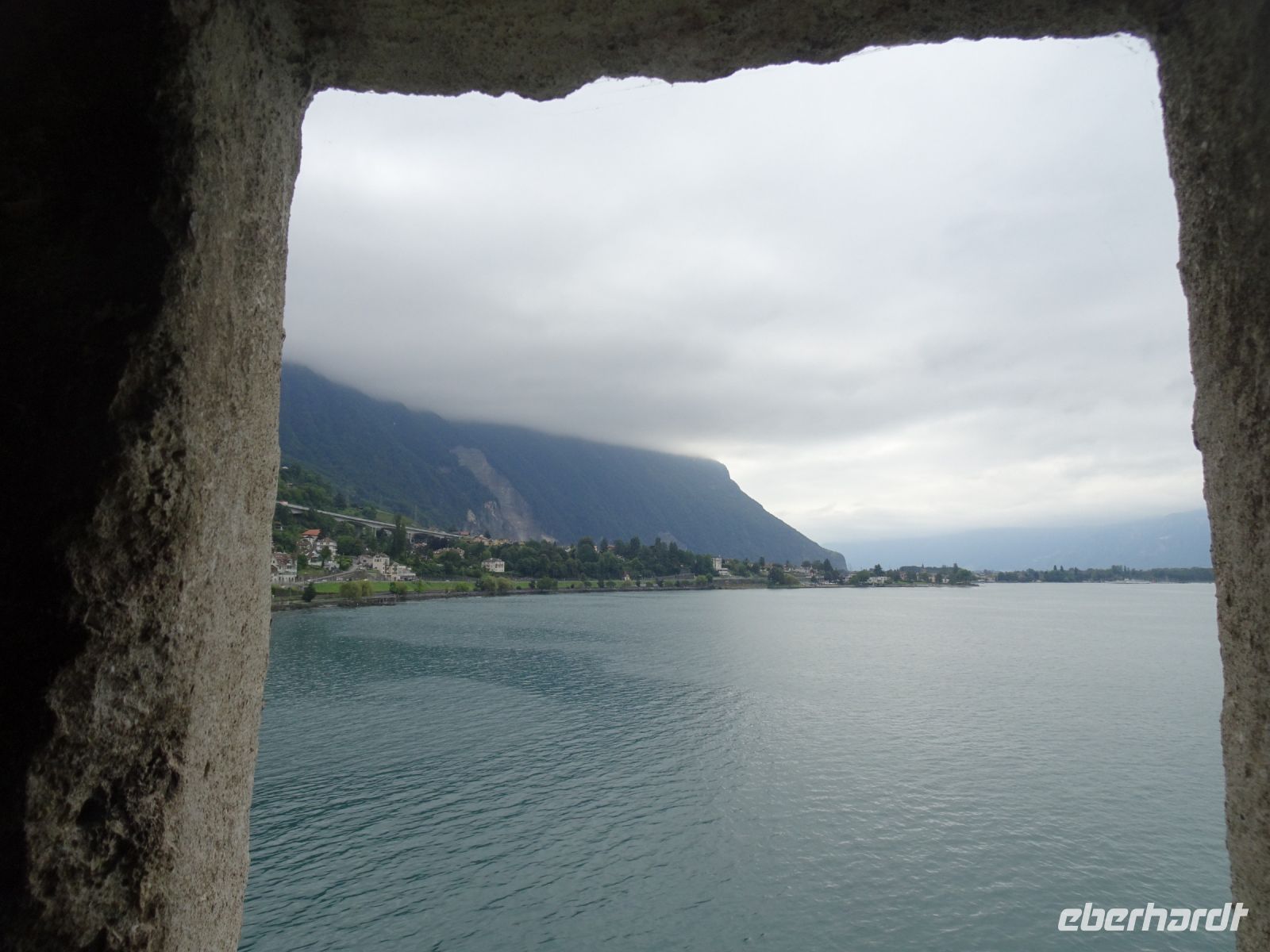 Für die übrigen Reisegäste war der Ausflug zum Wasserschloss Chillon und anschließend die Auffahrt auf den Rochers de Naye fakultativ. Bei bedecktem Himmel zeigte sich das Wasserschloss Chillon nicht von seiner fotogenen Seite. Dafür offenbarte uns das Schloss seine inneren Werte bei einer Audioguide-Führung. Von den Kerkern mit dem felsigen Untergrund der ursprünglichen Insel bis zu den Wehrgängen und dem Bergfried konnten wir viele Räume betrachten und uns einen Eindruck des Lebens in der fast 1000jährigen Vergangenheit machen. Die Ausblicke vom Schloss auf den Genfersee waren aus allen Etagen beeindruckend. Dabei wurde uns auch allerhand an interessanten Dingen über die ehemaligen Schlossherren, die Savoyer, und deren Gefangene mitgeteilt. Bekannt ist das Wasserschloss vor allem durch die Erzählung des englischen Lords George G. Byron (1788 – 1824) „Der Gefangene von Chillon“, der in seinem 392 Zeilen langen dramatischen Gedicht (1816 entstanden) dem Genfer Freiheitskämpfer Francois Bonivard, der in den Jahren 1532 bis 1536 in Chillon eingekerkert war, ein literarisches Denkmal setzte. Interessant an dieser sehr schmalen Stelle zwischen Fels und See ist auch die kürzlich eröffnete Festung Chillon. Die Verteidigungsanlagen aus dem zweiten Weltkrieg sind noch gut zu erkennen und waren Bestandteil des Programms „Schweizer Reduit“ zur Sicherung der Schweiz gegen ausländische Feinde.