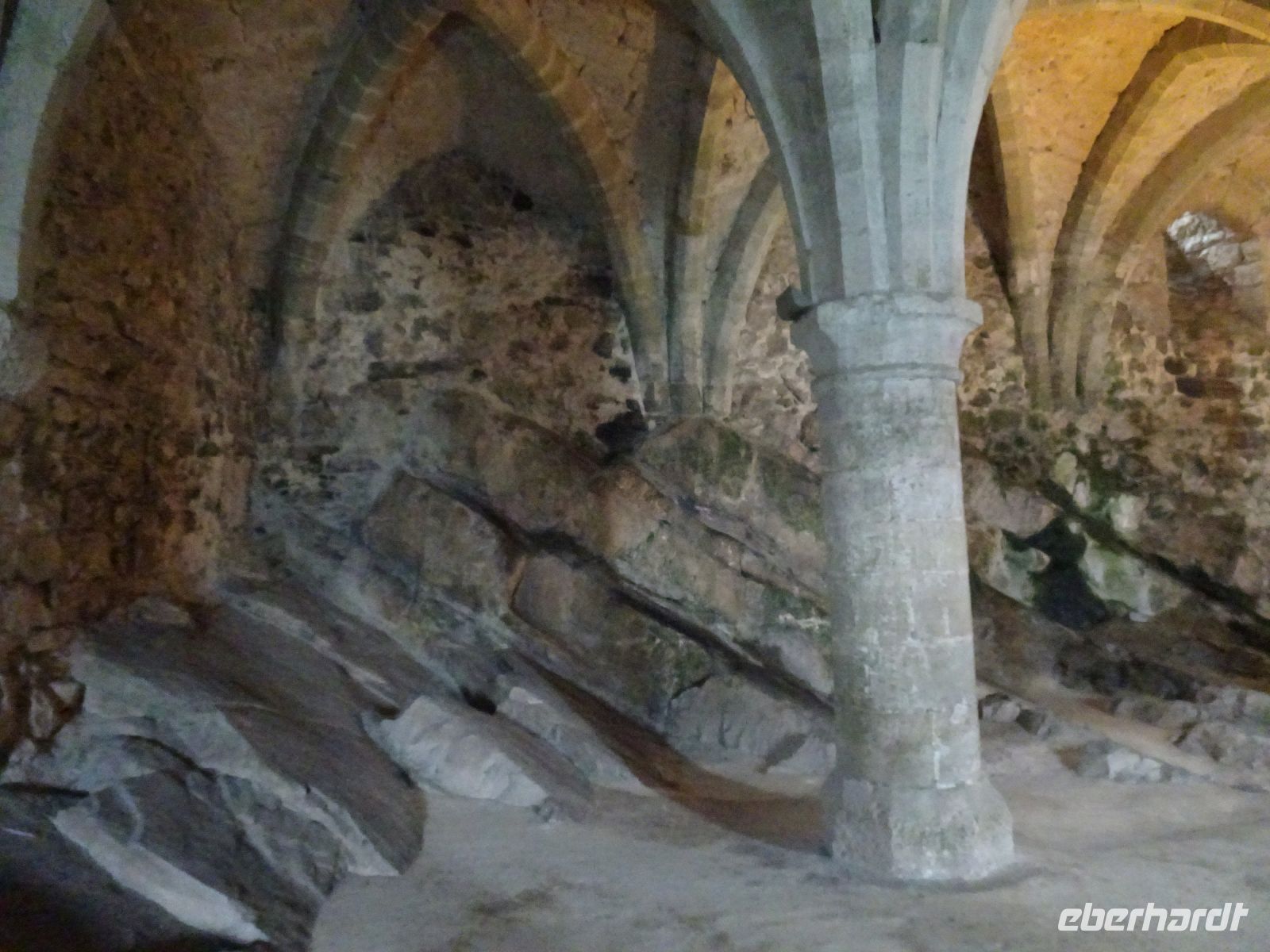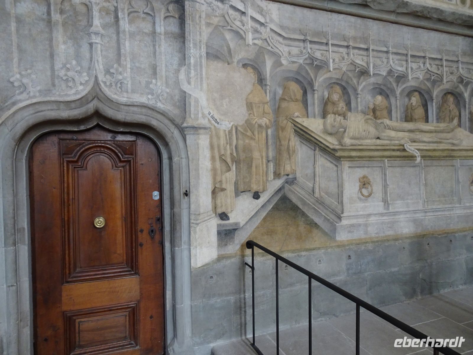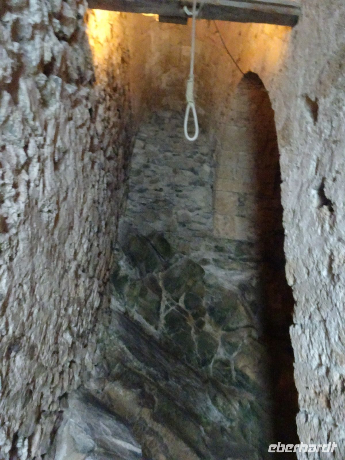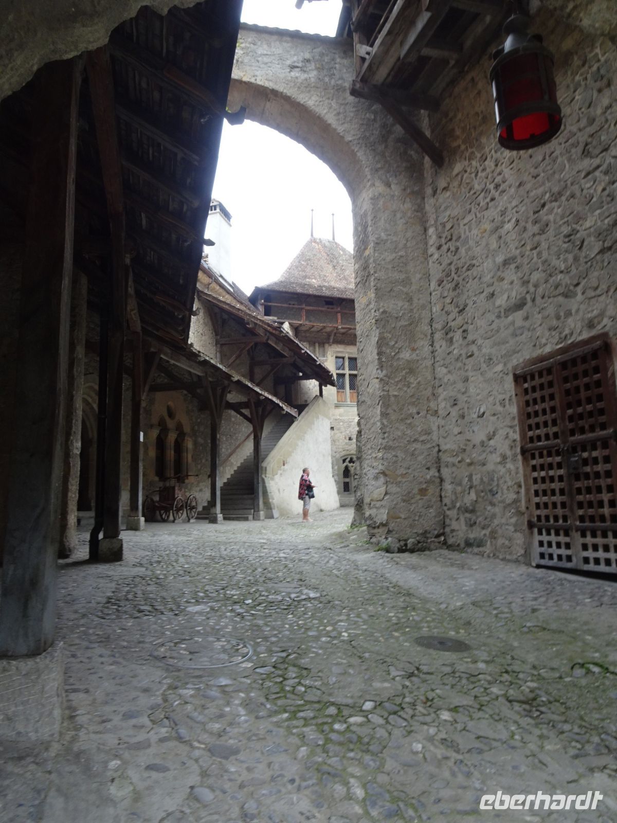 Für die übrigen Reisegäste war der Ausflug zum Wasserschloss Chillon und anschließend die Auffahrt auf den Rochers de Naye fakultativ. Bei bedecktem Himmel zeigte sich das Wasserschloss Chillon nicht von seiner fotogenen Seite. Dafür offenbarte uns das Schloss seine inneren Werte bei einer Audioguide-Führung. Von den Kerkern mit dem felsigen Untergrund der ursprünglichen Insel bis zu den Wehrgängen und dem Bergfried konnten wir viele Räume betrachten und uns einen Eindruck des Lebens in der fast 1000jährigen Vergangenheit machen. Die Ausblicke vom Schloss auf den Genfersee waren aus allen Etagen beeindruckend. Dabei wurde uns auch allerhand an interessanten Dingen über die ehemaligen Schlossherren, die Savoyer, und deren Gefangene mitgeteilt. Bekannt ist das Wasserschloss vor allem durch die Erzählung des englischen Lords George G. Byron (1788 – 1824) „Der Gefangene von Chillon“, der in seinem 392 Zeilen langen dramatischen Gedicht (1816 entstanden) dem Genfer Freiheitskämpfer Francois Bonivard, der in den Jahren 1532 bis 1536 in Chillon eingekerkert war, ein literarisches Denkmal setzte. Interessant an dieser sehr schmalen Stelle zwischen Fels und See ist auch die kürzlich eröffnete Festung Chillon. Die Verteidigungsanlagen aus dem zweiten Weltkrieg sind noch gut zu erkennen und waren Bestandteil des Programms „Schweizer Reduit“ zur Sicherung der Schweiz gegen ausländische Feinde.