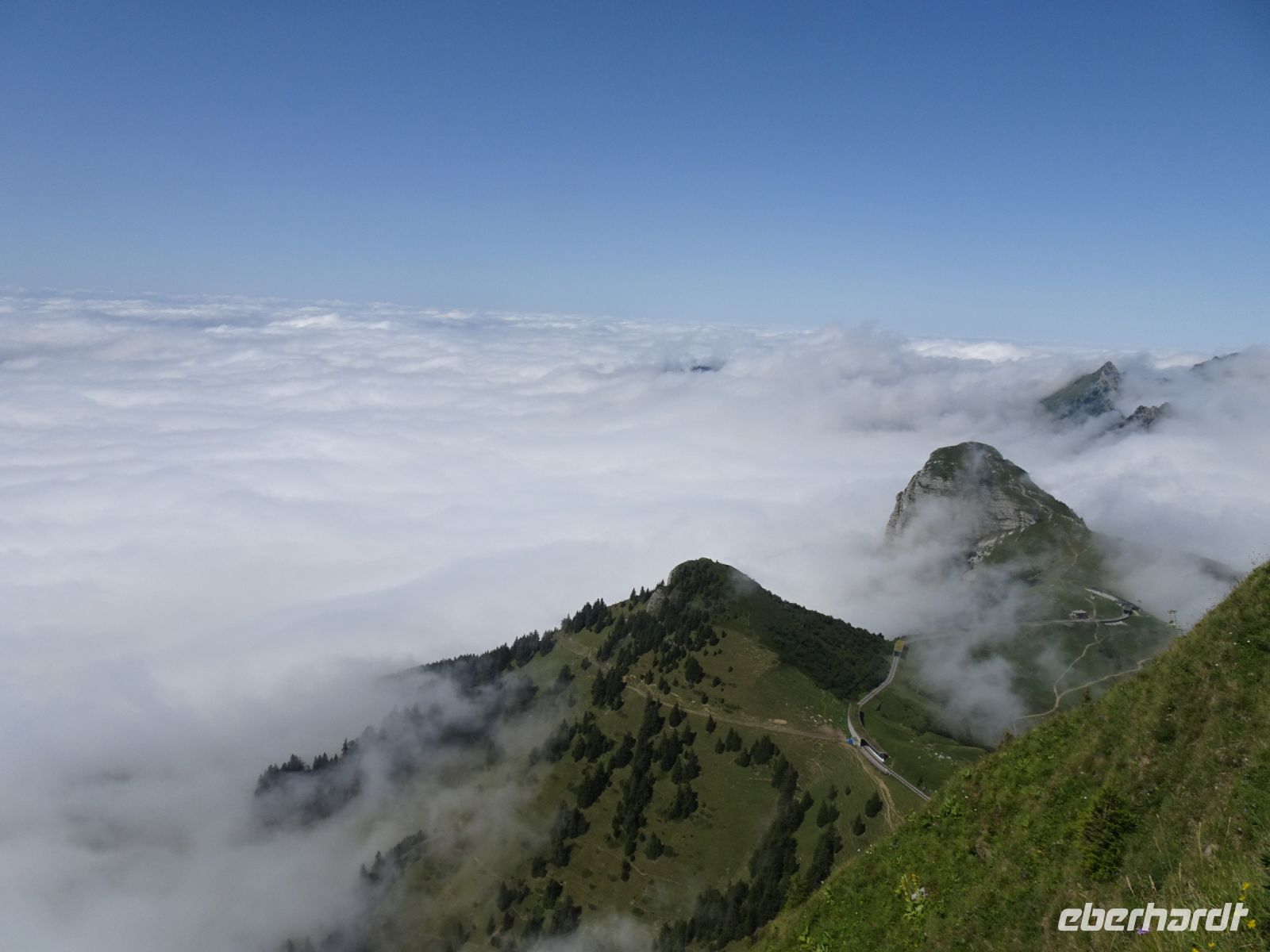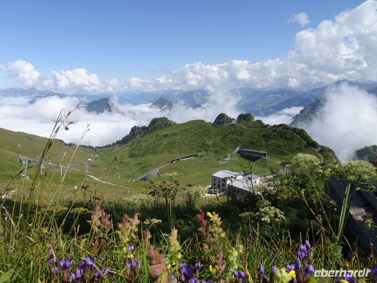 Für unsere Wandergruppe stand heute die Auffahrt von Montreux auf den Rochers de Naye mit anschließendem Abstieg per pedes bei einem Höhenunterschied von ca. 1800 Höhenmetern zurück nach Montreux auf dem Programm. Anfangs im Ort noch bedeckter Himmel riss dieser am Berg auf, sodass der Abstieg tolle Ausblicke freigab.