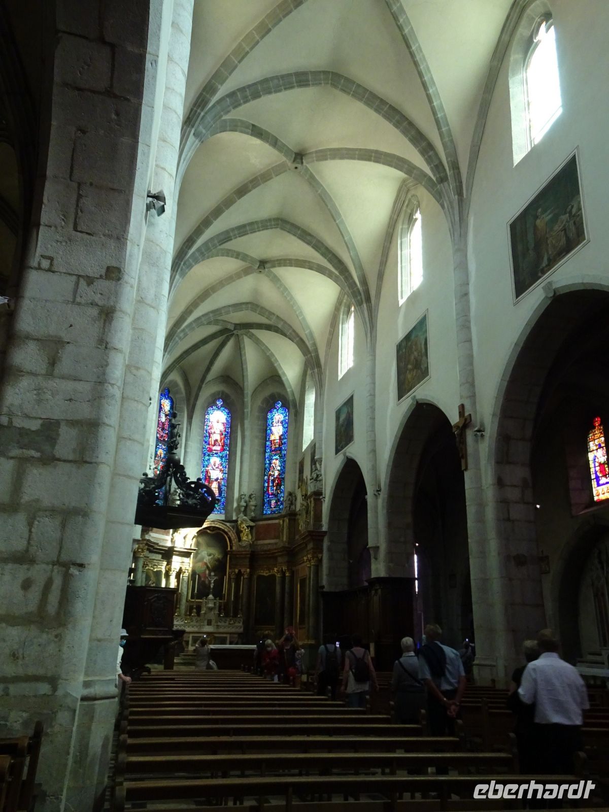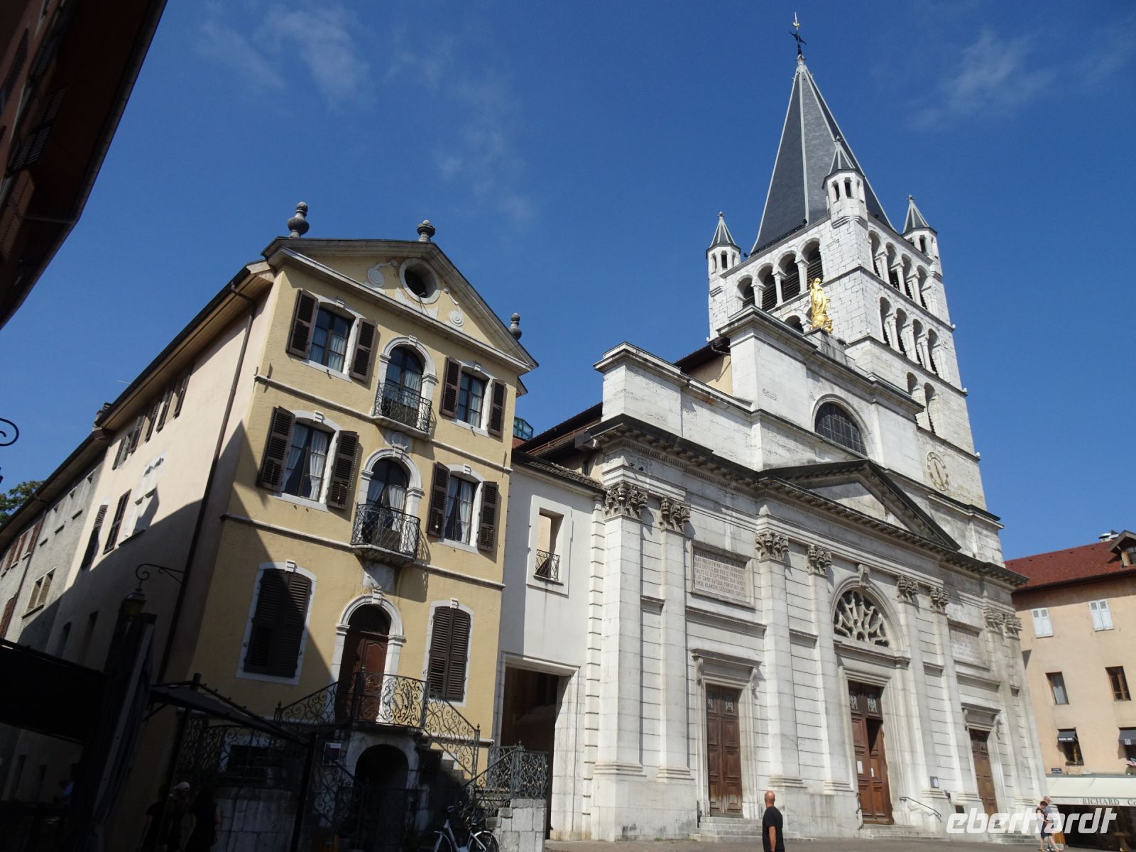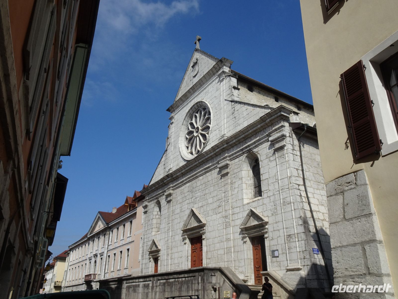 Wir unternahmen mit unserer sehr gut Deutsch sprechenden Reiseleiterin einen Stadtrundgang über Kanäle der Thiou mit sehr alten Brücken, zum Inselpalast, dem Rathaus sowie mehreren Kirchen. Dabei wurde eine Kirche sogar über einem der Kanäle errichtet! Eine der berühmtesten Persönlichkeiten der Stadt ist der Humanist und Theologe Franz von Sales (1567 – 1622), der einer der eifrigsten Widersacher gegen den insbesondere in Genf praktizierten Kalvinismus war. Franz von Sales wurde 1665 heiliggesprochen, seine Reliquien werden in der Kirche des Salesianerinnenklosters, die wir bei der Anreise über der Stadt thronen sahen, aufbewahrt.