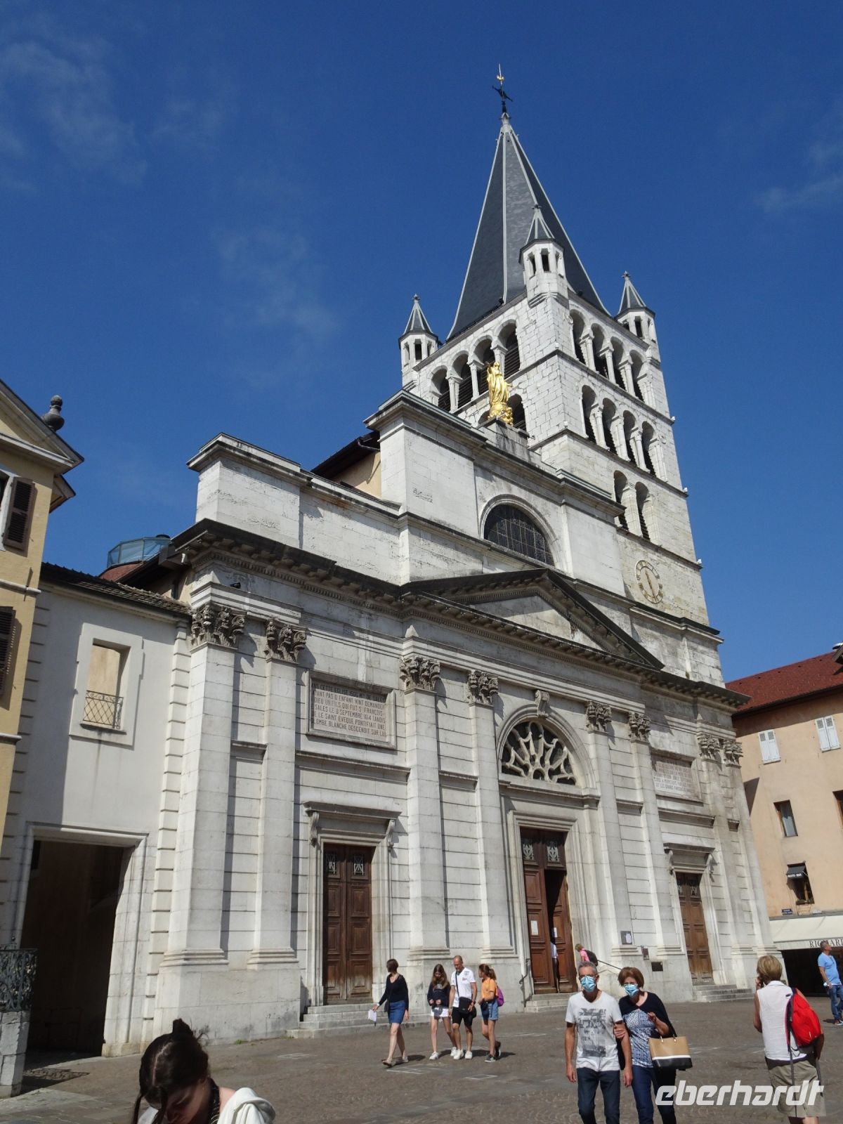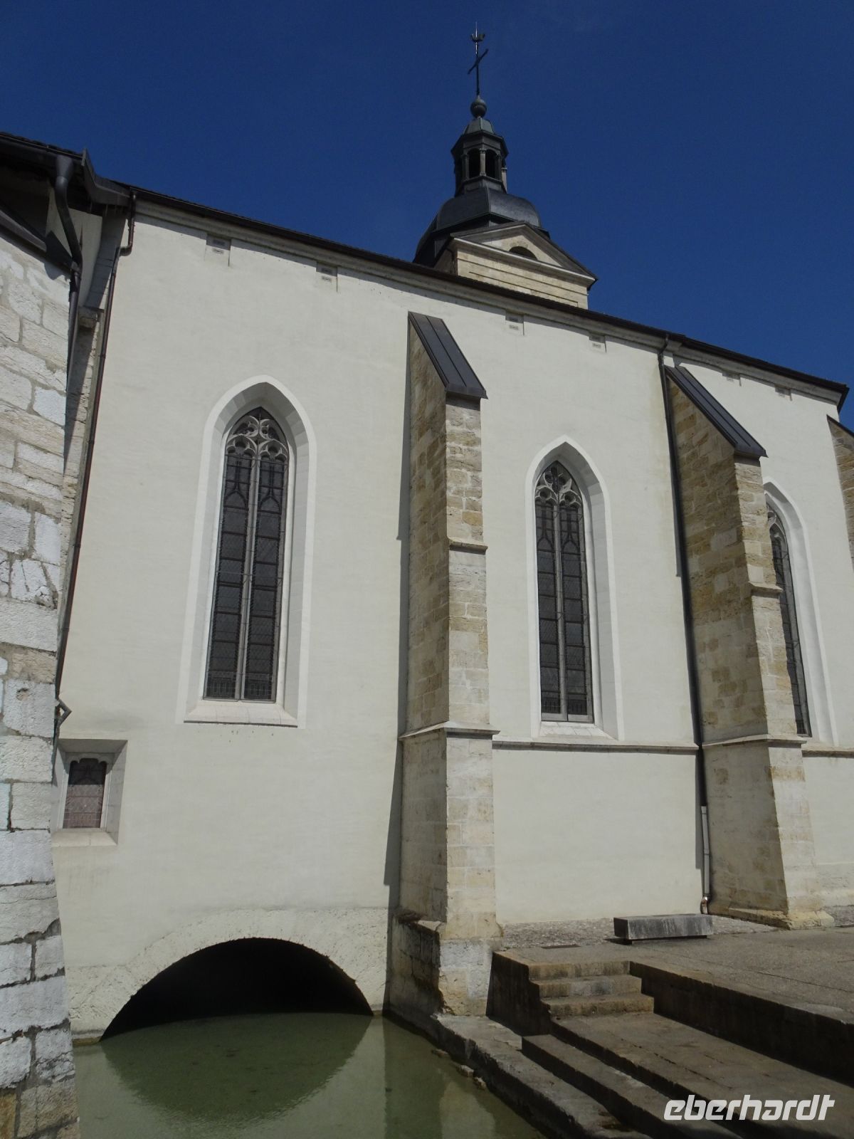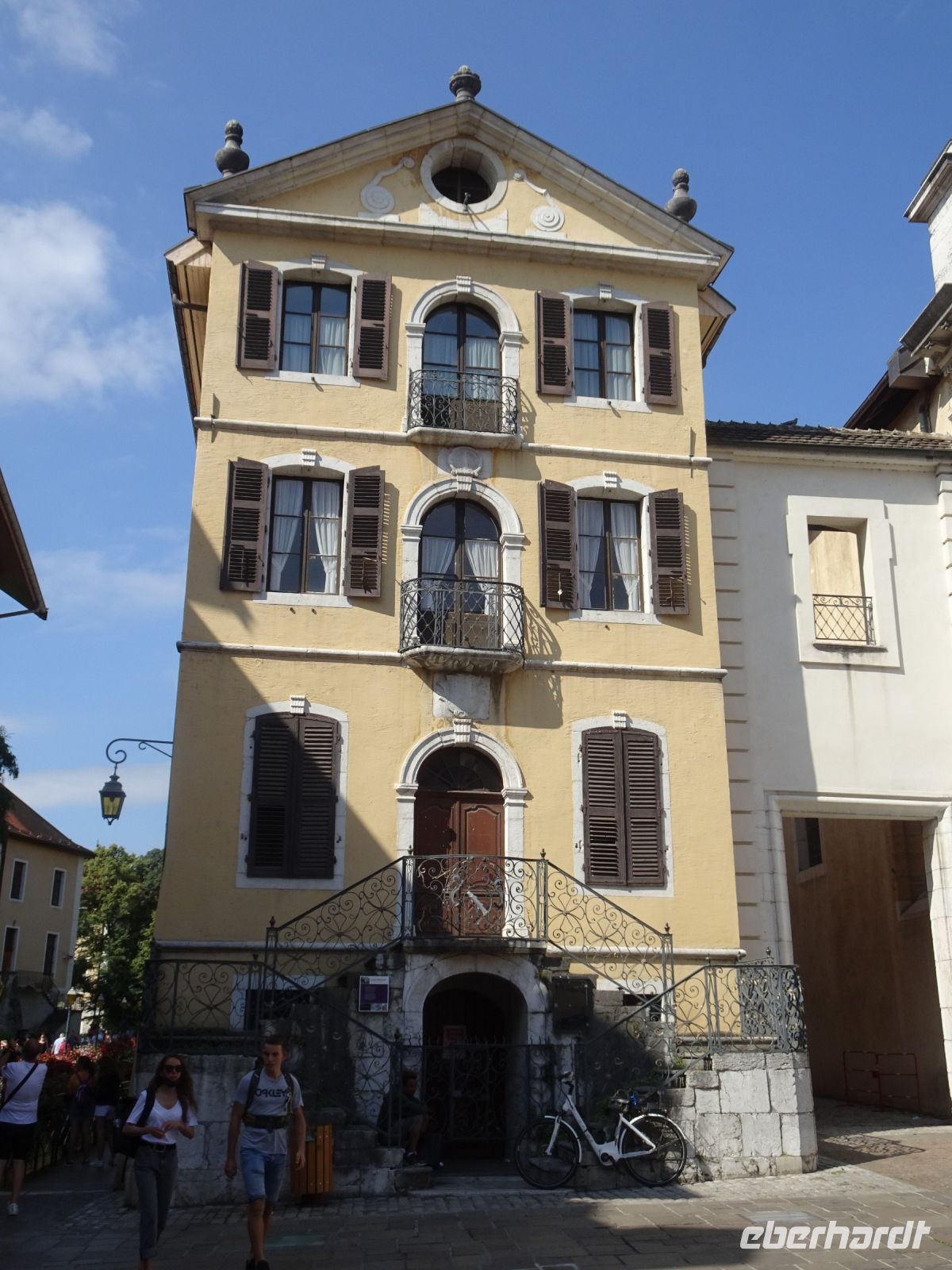 Wir unternahmen mit unserer sehr gut Deutsch sprechenden Reiseleiterin einen Stadtrundgang über Kanäle der Thiou mit sehr alten Brücken, zum Inselpalast, dem Rathaus sowie mehreren Kirchen. Dabei wurde eine Kirche sogar über einem der Kanäle errichtet! Eine der berühmtesten Persönlichkeiten der Stadt ist der Humanist und Theologe Franz von Sales (1567 – 1622), der einer der eifrigsten Widersacher gegen den insbesondere in Genf praktizierten Kalvinismus war. Franz von Sales wurde 1665 heiliggesprochen, seine Reliquien werden in der Kirche des Salesianerinnenklosters, die wir bei der Anreise über der Stadt thronen sahen, aufbewahrt.