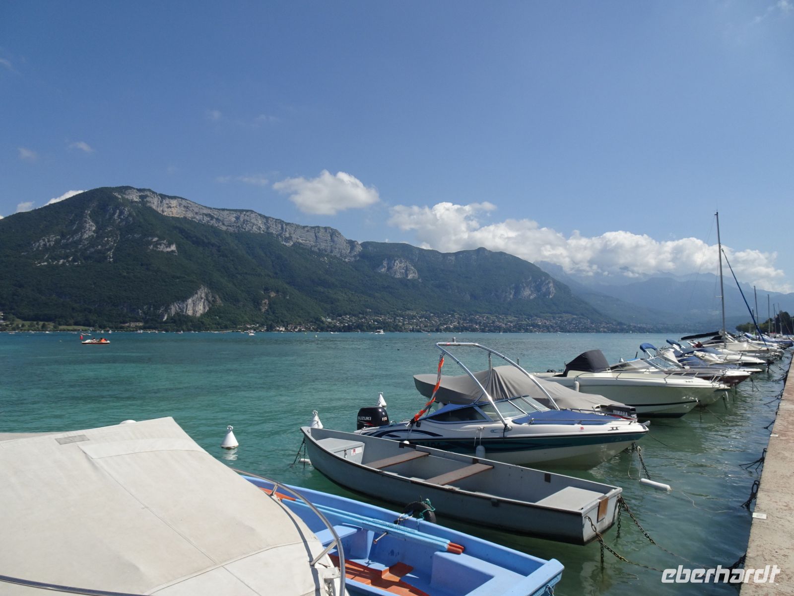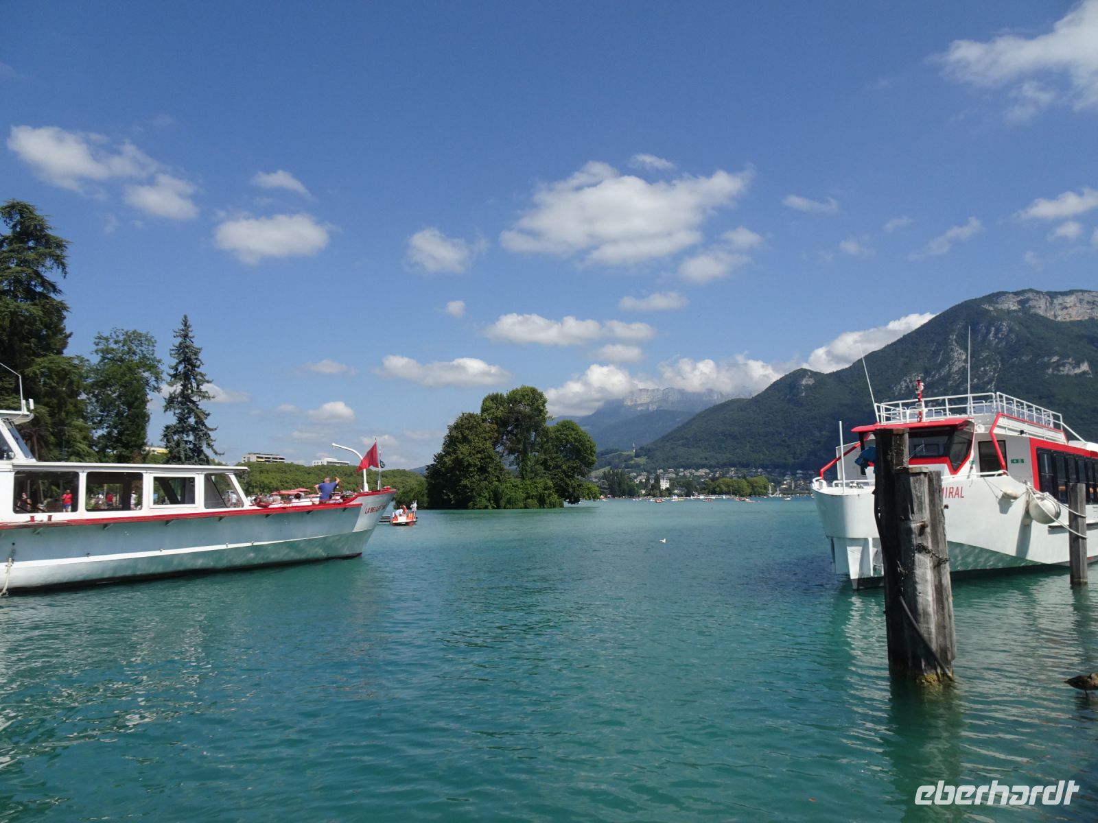 In Annecy angekommen bewunderten wir zuerst die Uferpromenade des Lac d´Annecy. Der See gilt als der reinste See der Alpen. Eingebettet in verschiedene Bergketten ist der See ein großartiges Urlaubsparadies.
