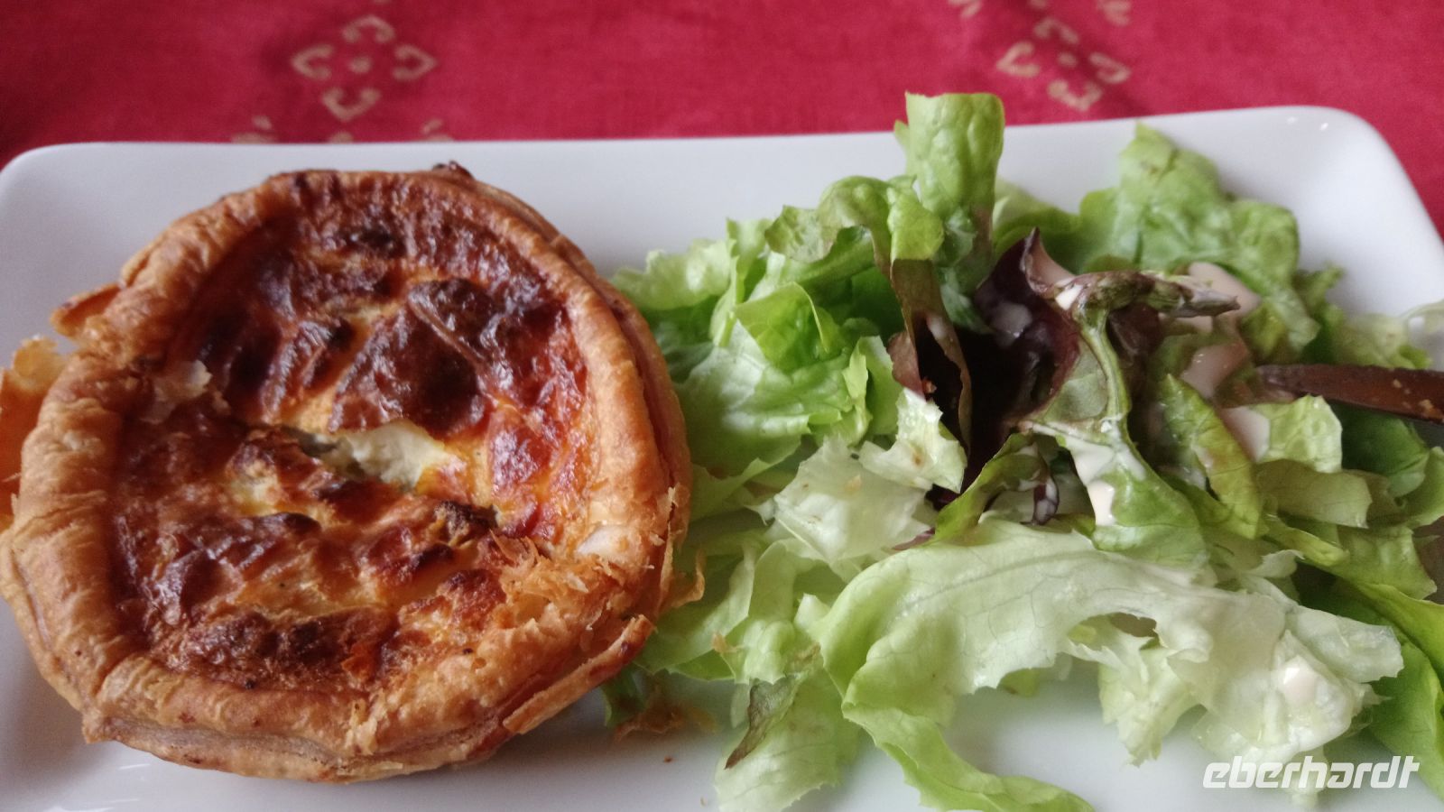 Am Abend begrüßte uns der Wirt in unserem Hotel mit der regionalen Spezialität Tartiflette. Ein mit der regionalen Käsespezialität Reblochon überbackener Kartoffelauflauf mit Zwiebeln, Speck, natürlich Créme fraiche und manchmal auch etwas Weißwein! Lecker zubereitet, aber auch eine mächtige Kalorienbombe. Wir gingen damit alle satt und zufrieden zu Bett.