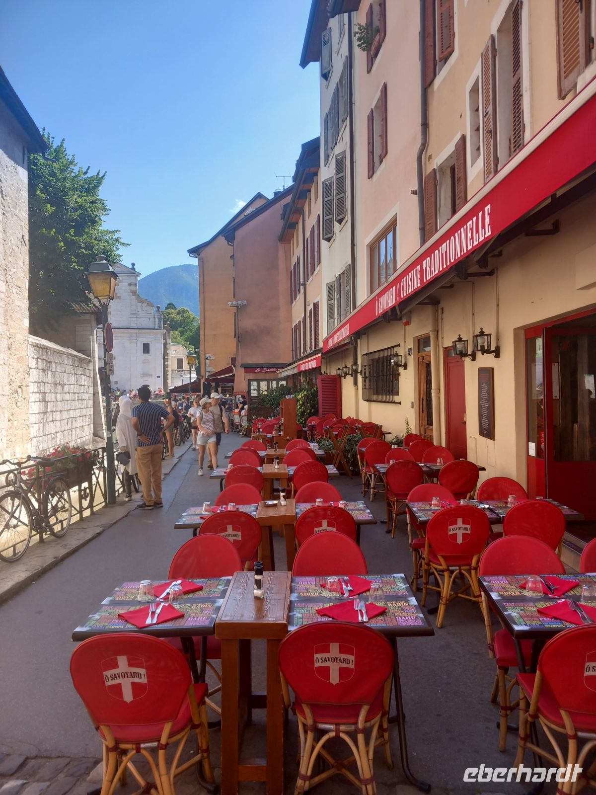 Nach einem kleinen Stadtbummel vorbei am ehemaligen Gefängnis auf der Flussinsel des Thiou, dem Schloss von Annecy - eines der zwanzig Schlösser der Savoyer -, der Kathedrale Saint-Pierre ganz in der Nähe und einer weiteren Wirkungsstätte von Jean Jacques Rosseau gab es ausreichend Freizeit, um das weitere touristische und kulinarische Potenzial von Annecy eigenständig zu erkunden.