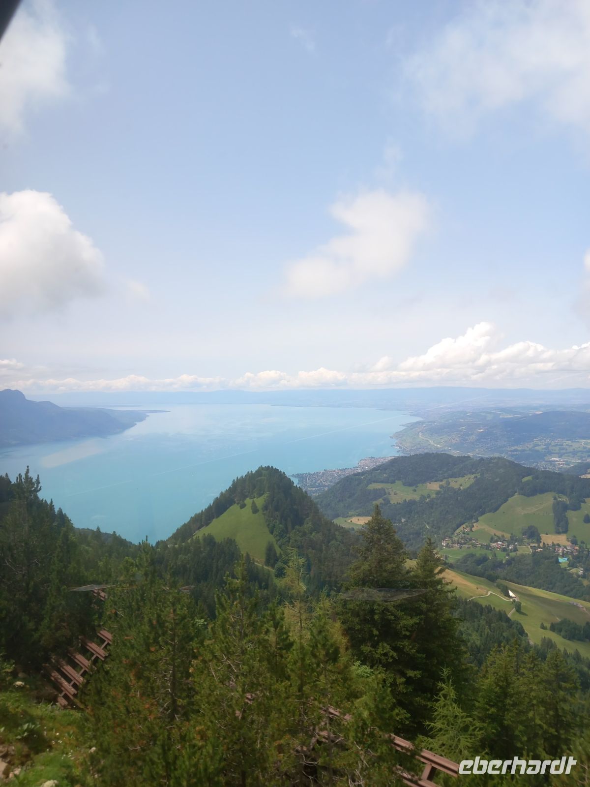 Jetzt hieß es Abschied nehmen vom Zentrum von Montreux, rein in den Zug am Bahnhof und wieder einmal ganz hoch hinaus, genauer gesagt auf den Rocher de Naye. Von keinem anderen Ort hat man wohl einen umfassenderen Blick auf den Genfersee und die Alpenlandschaft. Wir konnten uns davon vergewissern, dass der Schweiz sehr viel daran liegt, auch diesen viel besuchten Ort so natürlich wie möglich zu belassen und zu erhalten.