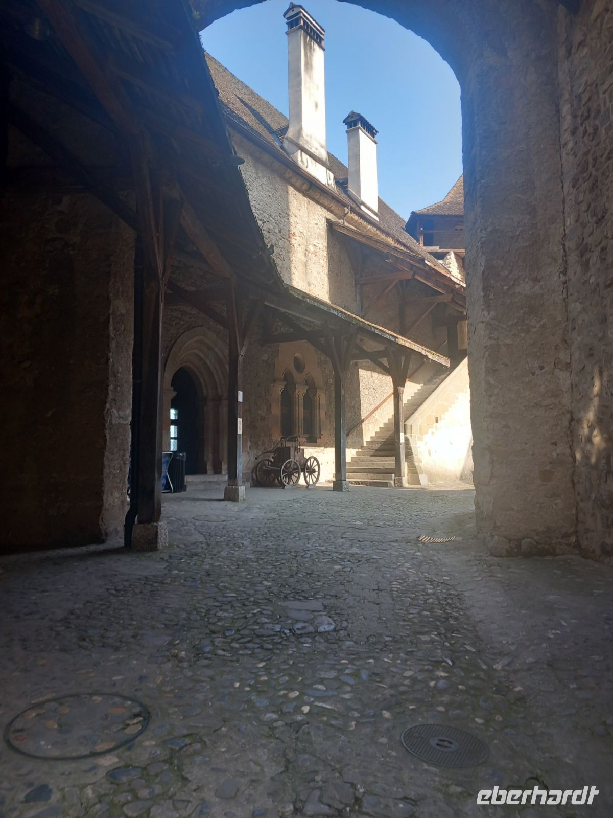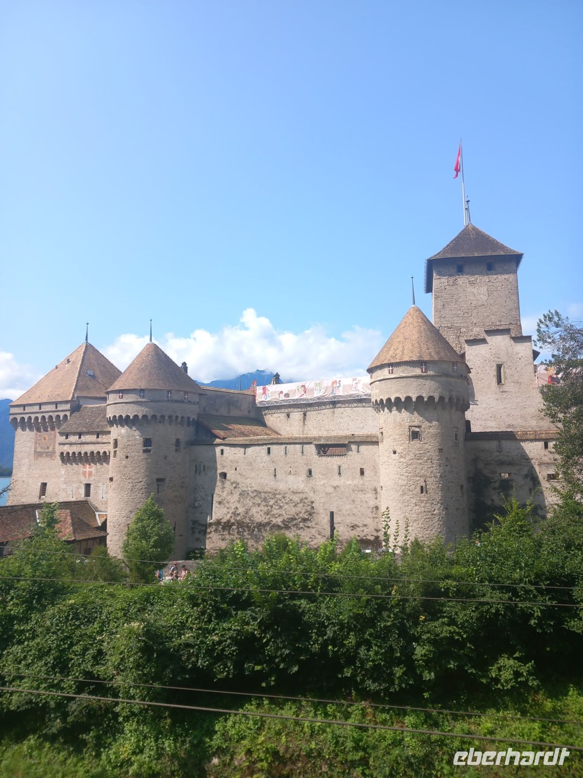 Heute sollte sich der Schwerpunkt der Reise wieder auf der Schweizer Seite befinden und begonnen wurde der Tag mit dem Besuch des Schlosses Chillon. Ein Name, der der gesamtem Bevölkerung der Schweiz geläufig ist und die Schweizerinnen und Schweizer besuchen es so zahlreich, dass es sich um das meistbesuchte Baudenkmal ihres Landes handelt. Mit Audioguides ausgestattet hatten wir alle ausreichend Zeit, auch die hinterste Kammer und die oberste Dachluke zu entdecken.