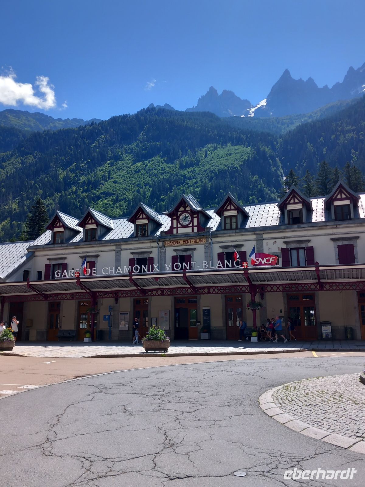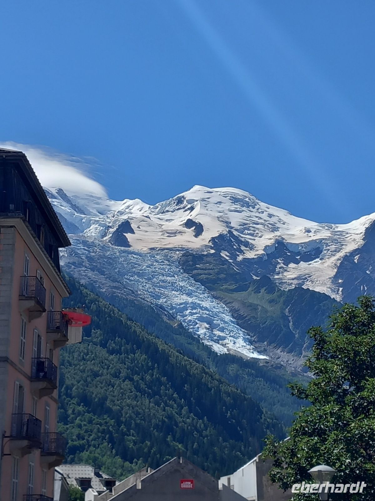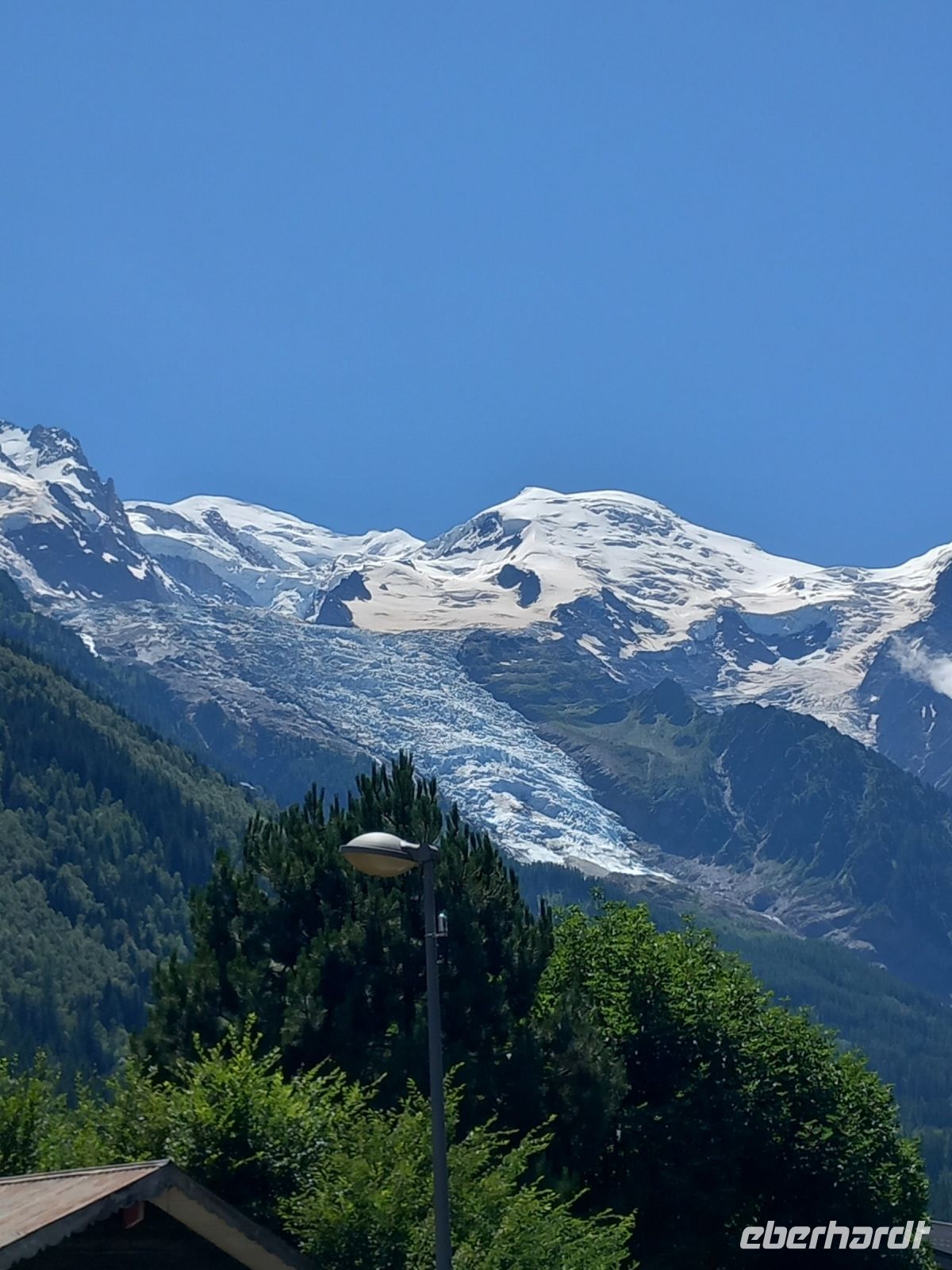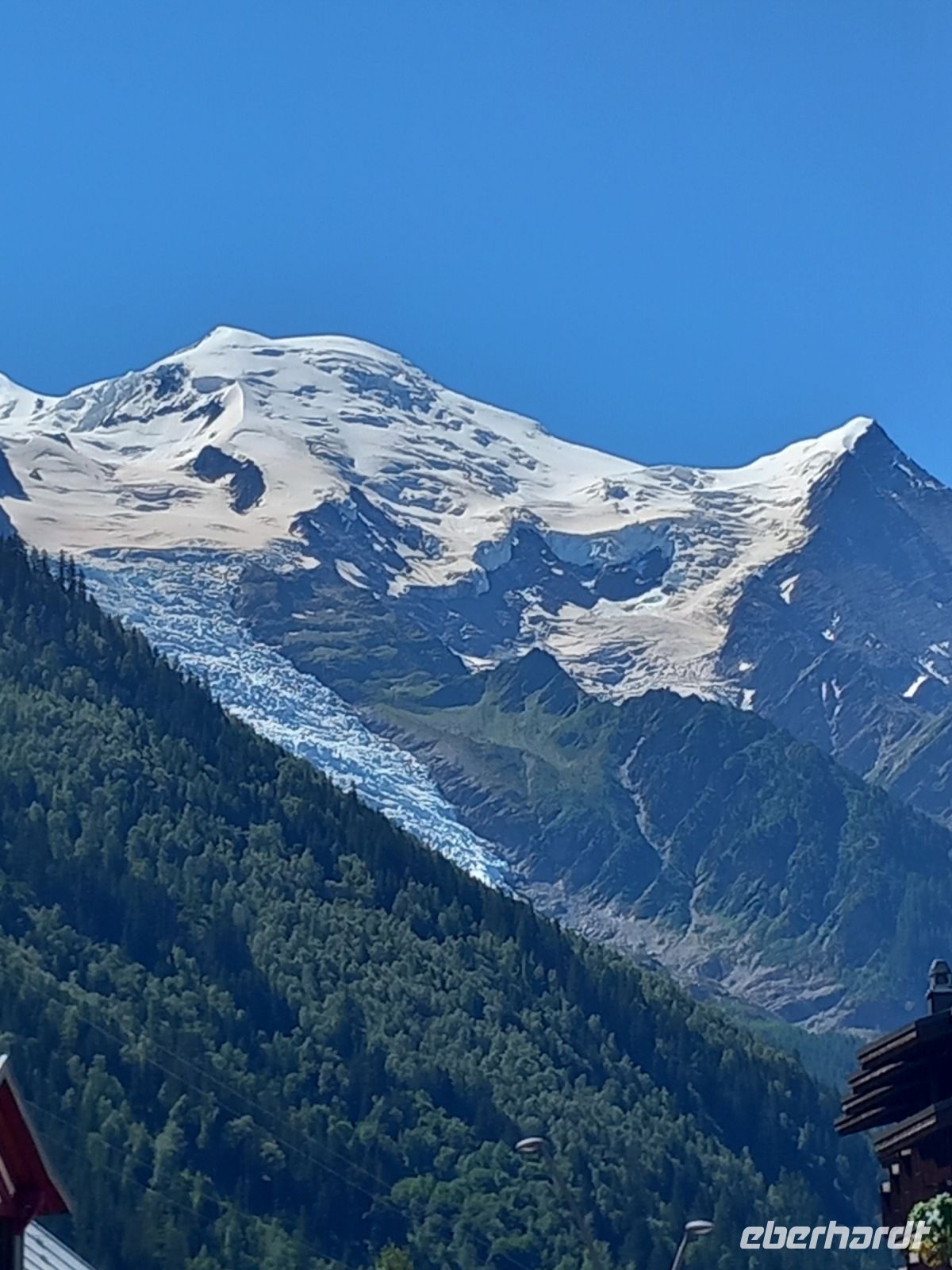 Für unseren Chauffeur hieß es heute rauf auf den Pass und wieder runter und wieder hoch und.... Für alle anderen war die Beantwortung der Frage wichtiger, ob es ganz hoch hinaus gehen darf oder ein bisschen weniger, denn alle hatten die Wahl zwischen dem Aiguille du Midi oder dem Eismeergletscher. Der Aiguille du Midi, es geht auf über 3.800 Meter mit einer Seilbahn in die Höhe, von wo aus man einen atemberaubenden Blick auf den Mont-Blanc haben sollte und heute zeigte er sich sogar kurzzeitig komplett wolkenfrei. Der Eismeergletscher auf 1.300 Meter zeugt davon, was von einem ehemals grenzenlosen Gletscher in Zeiten des Klimawandels übrig blieb, eine informative Stippvisite, die nachdenklich macht. Zurück im Tal in Chamonix hieß es die Stadt zu erkunden, ein Eis zu schlecken oder sich sonstigen kulinarischen Verführungen zu ergeben.
