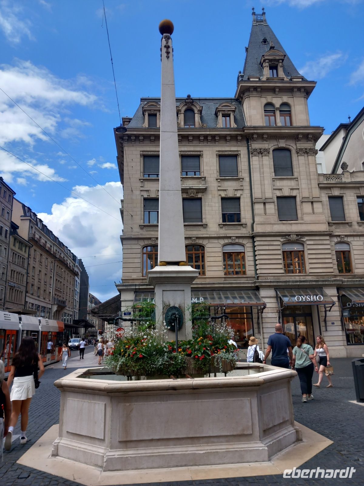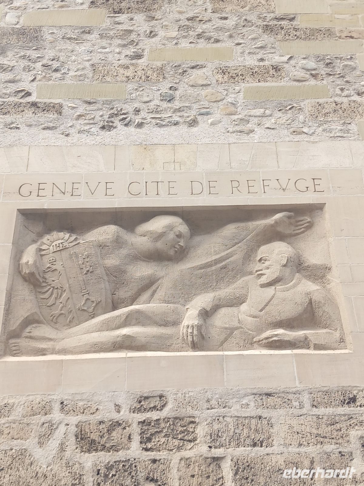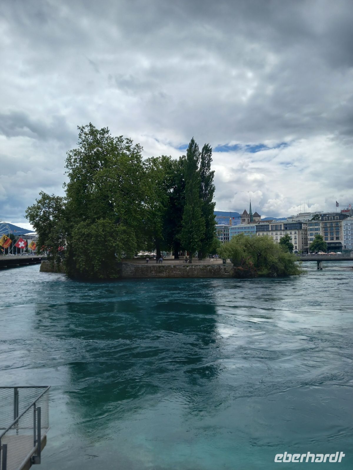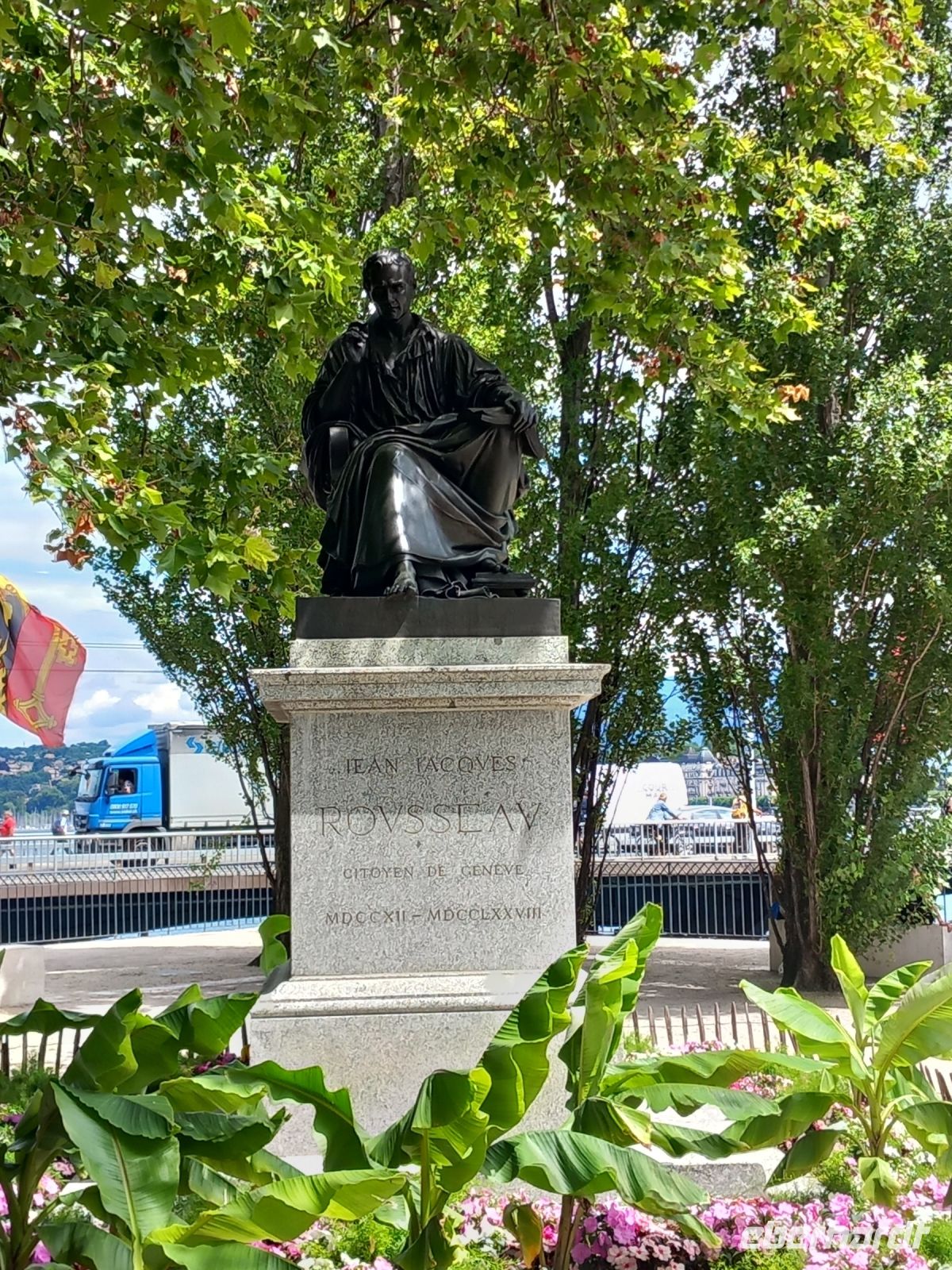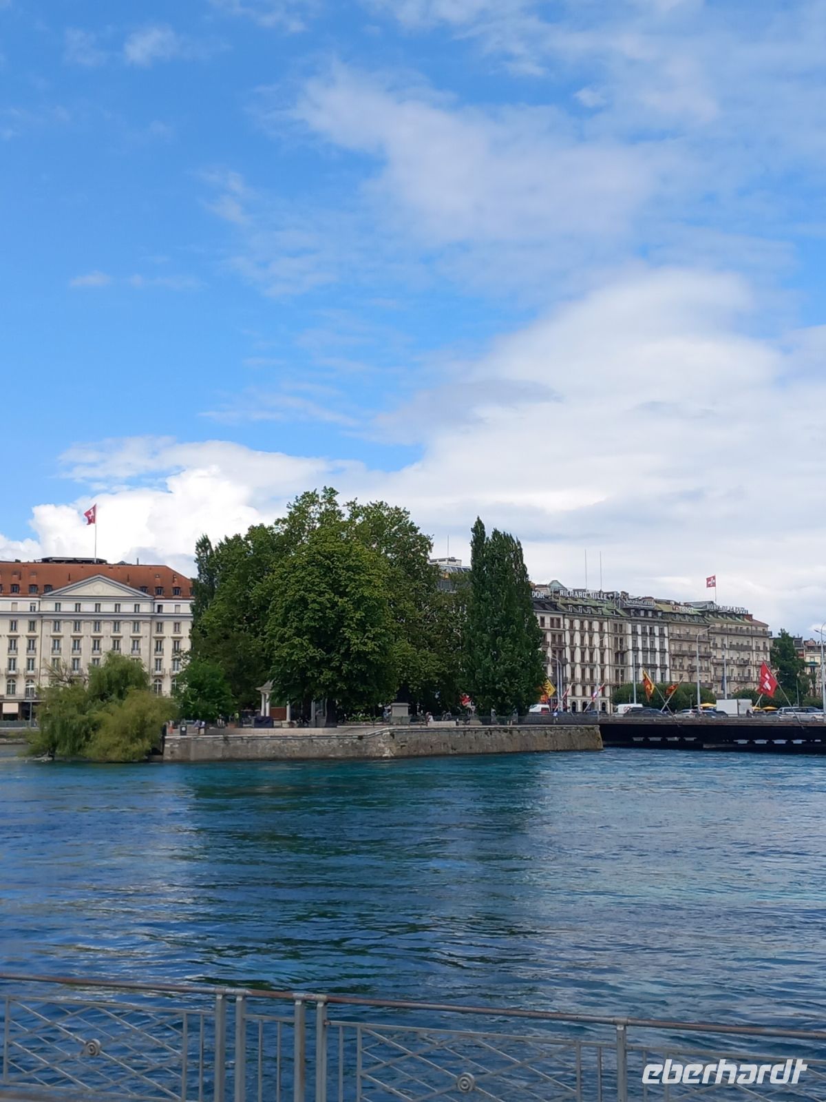 Anschließend setzten wir die Fahrt fort nach Genf, wir parkten fast standesgemäß am Hotel Beau-Rivage, das leider auch traurige Geschichten zu erzählen vermag, wie wir alle erfahren durften. Wir spazierten über die Insel Rousseau, benannt nach dem berühmtesten Sohn der Stadt, Jean Jacques Rousseau. Es sollte kein Zufall bleiben, dass sein Beitrag zur Aufklärung und Französischen Revolution hier in Genf bewirkten, dass die Stadt früher wie heute ein Ort der Zuflucht war und ist und sich mit seiner UNO-Niederlassung für Flüchtlinge in aller Welt einsetzt.