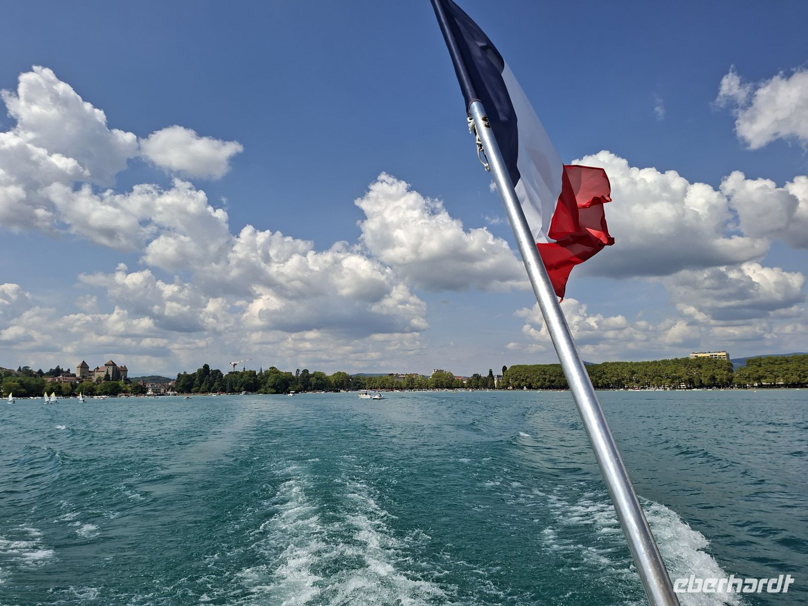 Zur Abfahrt kommt die Information herein, dass die Gästeführerin für den heutigen Tag erkrankt ist. Deutschsprachige Gästeführer sind inzwischen in Frankreich nicht so leicht zu ersetzen, zumal nicht kurzfristig; also folgen wir der Fahrtroute, die unser Busfahrer nun gewählt hat: vorbei am Genfer See geht es durch das Tal des Abondance-Flusses mit Berghängen und Almwiesen. Über Abondance nach Bonneville erreichen wir nach 3 h Annecy. Inzwischen haben wir in Abstimmung mit dem Produktmanager von Eberhardt Travel, Herr Obiegli, Plan B organisiert u. eine Seenrundfahrt gebucht. Die Tickets liegen bereit, so dass noch 1 h Zeit ist für einen Orientierungsrundgang durch Annecy.