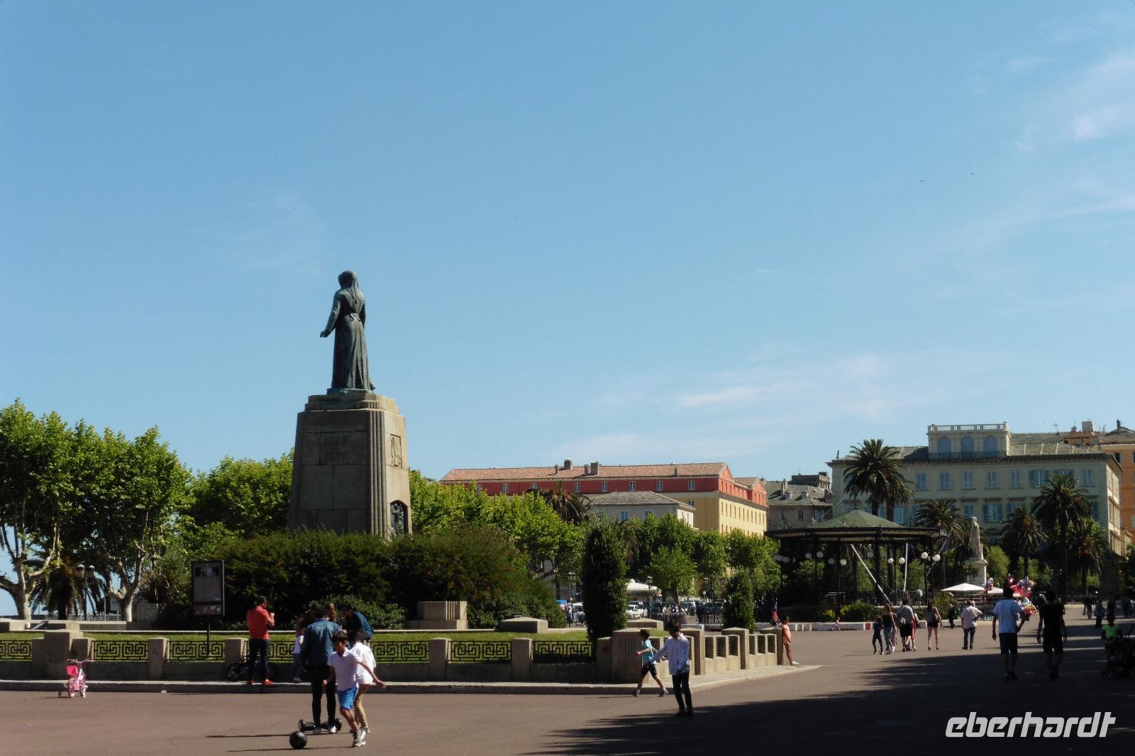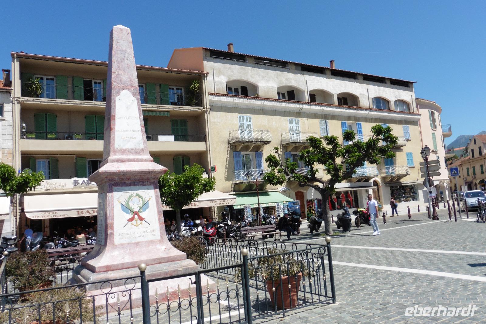 Nach einem guten Frühstücksbuffet stand auch schon Jules mit dem Bus für unseren heutigen Ausflug bereit. Die ersten Worte, die wir von unserer Reiseleiterin Monika hörten: Piano, Piano - auf Korsika gibt es keine Hektik. Sie machte mit uns einen kleinen Umweg nach Le Canonica, um an der romanische Kirche Santa Maria zu halten. Weiter ging es über den Col de Santo Stefano Pass nach Patrimonio am Rand des fruchtbaren Tals von Nebbio. Dort verkosteten wir 4 verschiedene Weinsorten im SARL Franck Santini Vigneron Weingut. Schon während der Fahrt erklärte uns Monika die Besonderheiten des korsischen Weins und dass viele korsische Weine prämiert sind. Nach einem Rundgang in St. Florent, auch das St. Tropez Korsikas genannt, hatten wir noch etwas Zeit um den Ort mit den kleinen Gassen individuell zu erkunden. Über den Col de Teghime mit tollem Ausblick auf den Golf von St. Florent, die Weinberge und die umliegende Bergwelt, erreichten wir Bastia, die heutige Hauptstadt Nordkorsikas. Sie wurde im 14. Jahrhundert durch die Genuesen gegründet und ist heute Wirtschaftszentrum. Täglich kommen hier mehrere Fähren vom italienischen und dem französischen Festland an. Beim Rundgang durch die Hafenstadt besichtigten wir die größte Barockkirche der Insel mit 2 Glockentürmen - die St. Jean Baptiste Kirche. Danach schlenderten wir durch die Gassen und Einkaufsstraßen der Stadt zum Place St. Nicolas mit der Napoleon Statue.