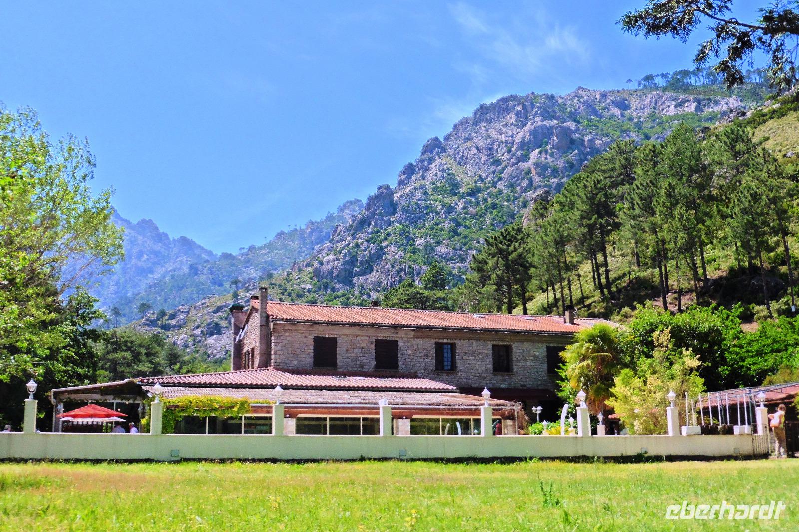 Unser Chauffeur Jules begrüßte uns schon am Kofferband in Bastia. Da der Flughafen südlich von Bastia liegt, fuhren wir nur knapp 30 Minuten zu unserem neu renovierten Hotel San Pellegrino, in das wir für die nächste Woche eincheckten. Die weitläufige Bungalowanlage liegt direkt am Strand, ist sehr familiär geführt und man fühlt sich sofort wohl und Willkommen. Schon am 1. Abend wurden wir mit einem 4-Gang Menü inklusive Wein und Wasser verwöhnt.