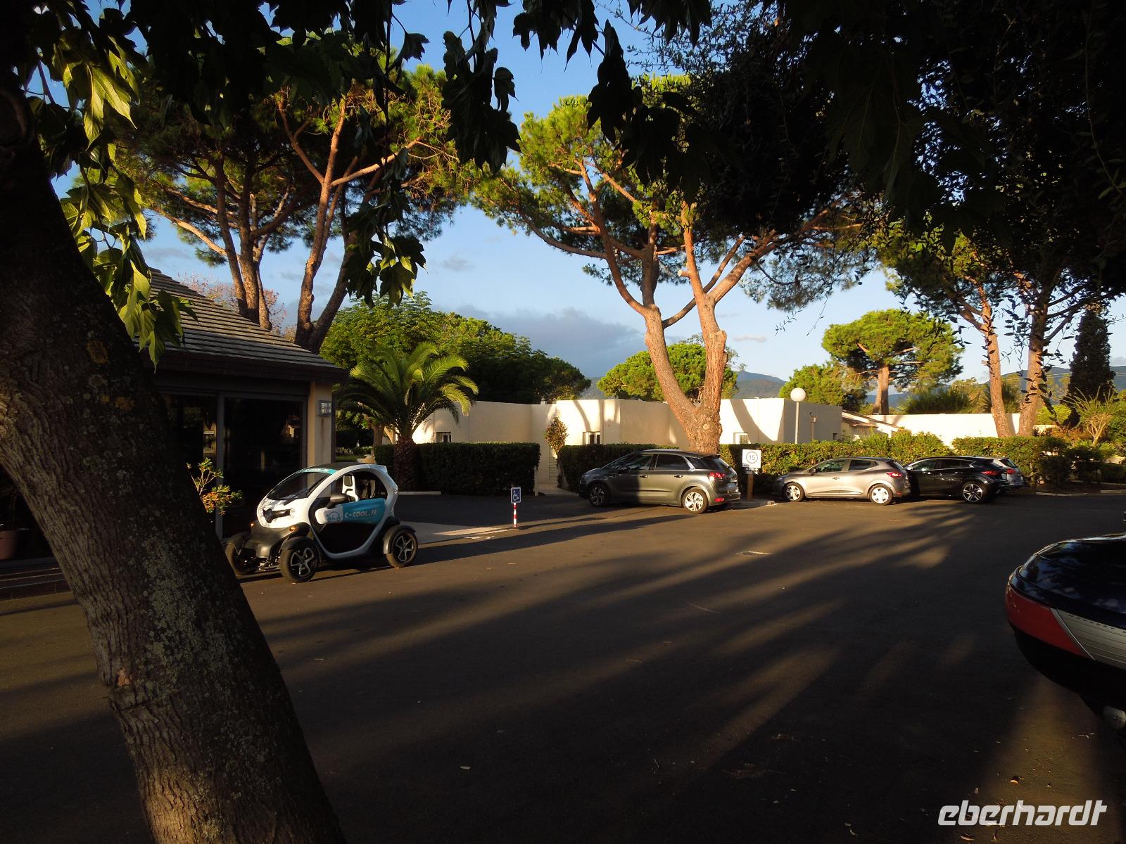 Mittags trafen sich die meisten der Gruppe am Flughafen in Dresden. Nachdem wir unsere Koffer abgegeben und die Sicherheitskontrolle passiert hatten, blieb noch ein bisschen Zeit bis zum Abflug. Mit zehn Minuten Verspätung starteten wir in Dresden und flogen erst einmal nach Frankfurt. Dort trafen wir auf den Rest der Gruppe am Abfluggate nach Bastia und waren mit 16 Personen somit vollständig. Auch hier hatte unser Flieger etliche Minuten Verspätung. Nach ca. eineinhalb Stunden Flug landeten wir sicher und gut gelaunt auf Korsika. Korsika ist mit knapp 9000 km² hinter Sizilien, Sardinien und Zypern die viertgrößte Insel im Mittelmeer. Da der Flughafen sehr klein ist und mehrere Flieger gleichzeitig ankamen, herrschte viel Betrieb am Gepäckband. Unser französischsprachiger Busfahrer Fabien nahm uns in Empfang und fuhr uns zu unserem Hotel Résidence San Pellegrino in Folelli. Die erst kürzlich renovierte Hotelanlage befindet sich direkt am Strand. Nach ersten kleinen Erkundungen des Areals, gab es auch schon Abendessen im Restaurant. Dieses bestand aus mehreren Gängen: kleine Häppchen, Spinat im Blätterteigmantel, Steak, Käse und als krönenden Abschluss flambiertes Eis - lecker! Als sich alle satt gegessen hatten, war es schon fast Zeit zum Schlafengehen. Wir waren gespannt auf den nächsten Tag!