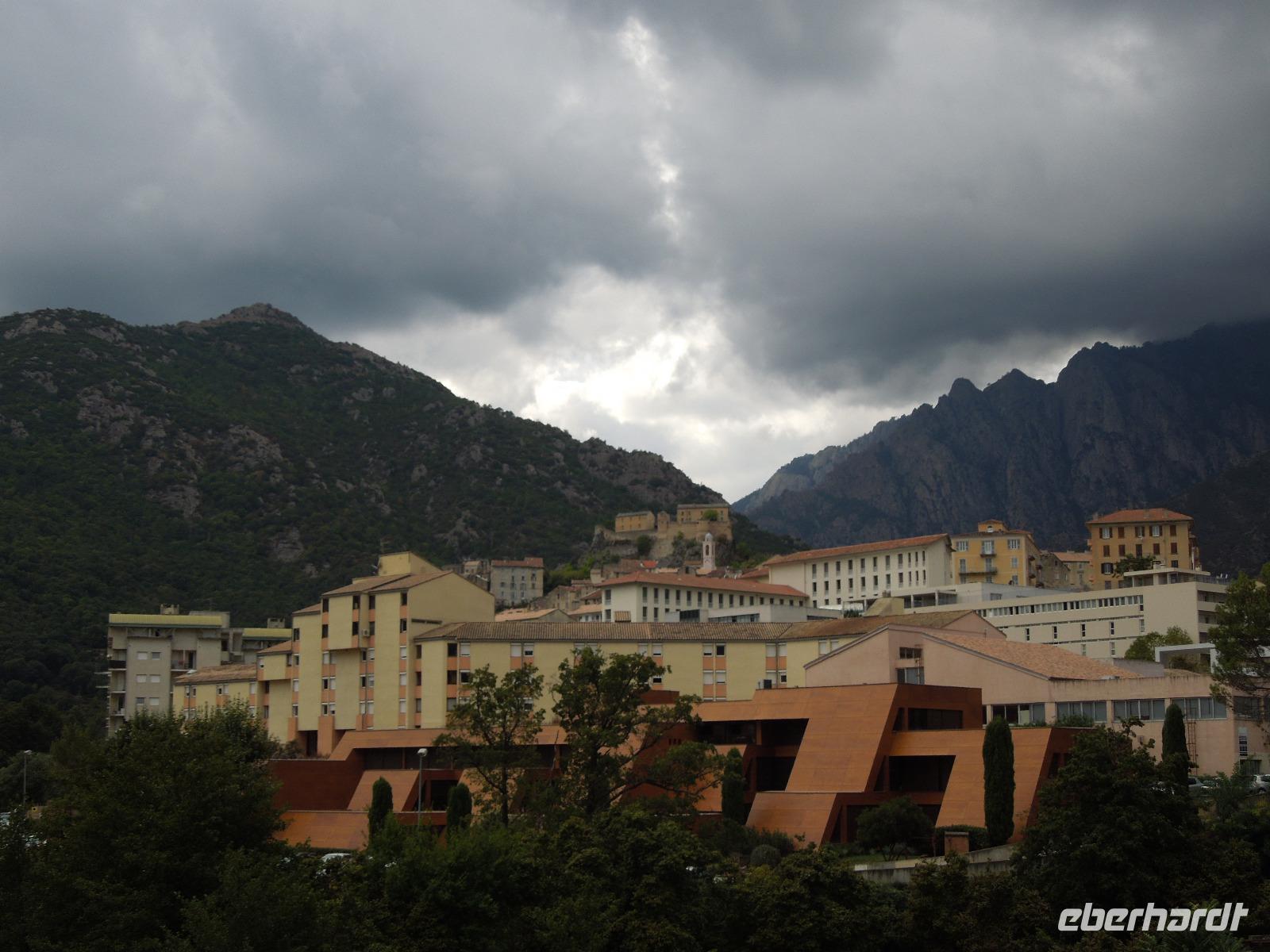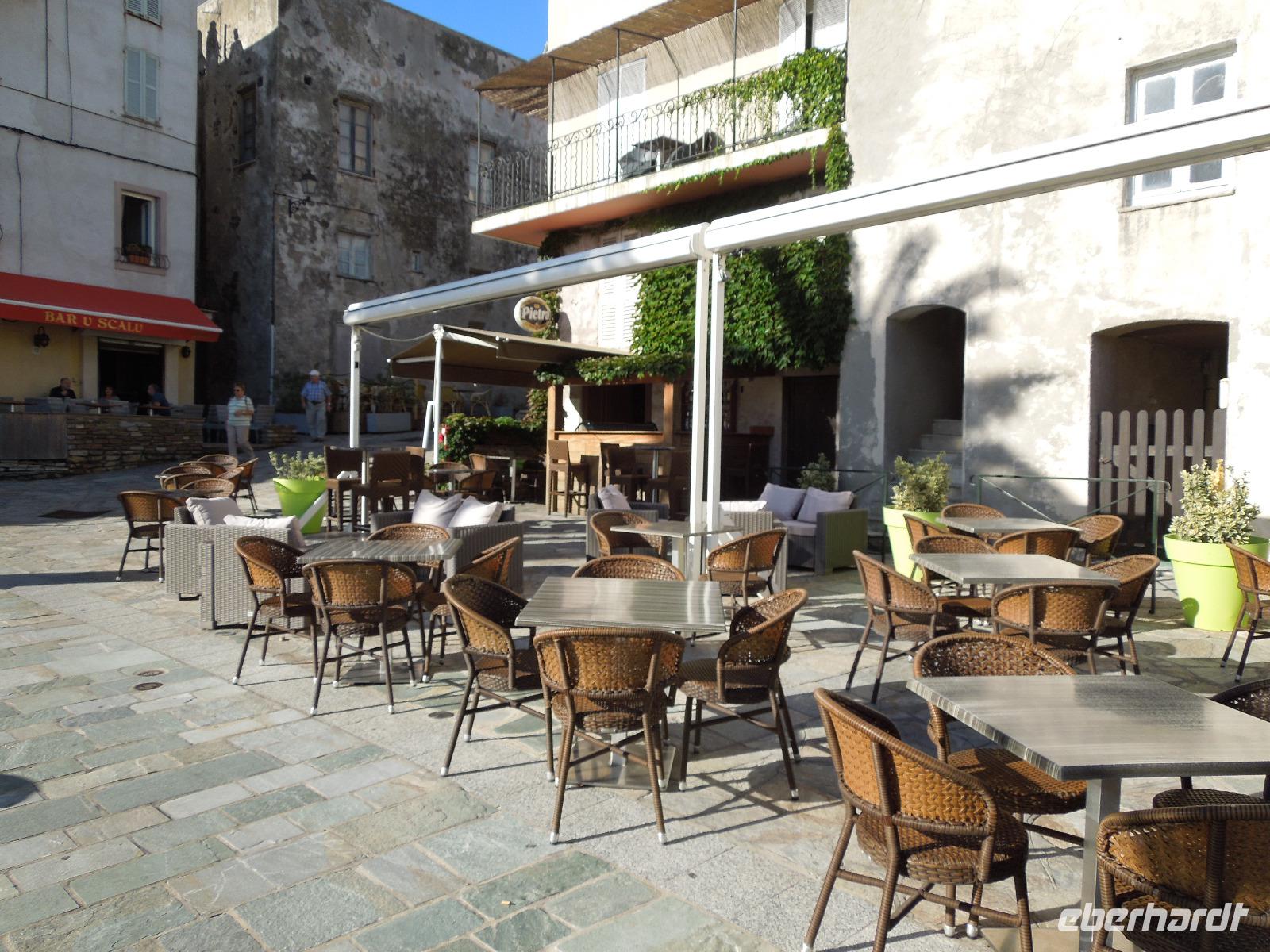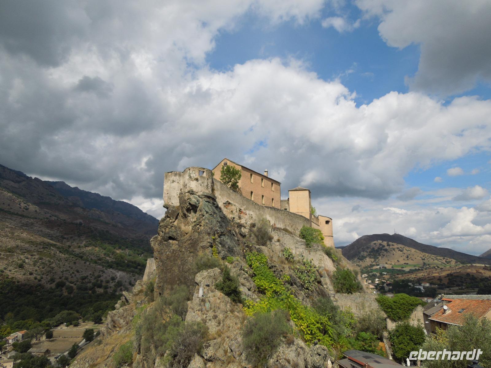 Vormittags fuhren wir ins Innere der Insel, Richtung Corte. Im wildromantischen Tal des Golo spazierten wir wenig später mit Simone am glasklaren Fluss entlang und ließen die schöne Natur auf uns wirken. Danach fuhren wir zu einem Restaurant in der Restonica-Schlucht. Als Vorspeise gab es wieder verschiedene Terrinen und Baguette. Das Hauptgericht bestand aus einem köstlichen Kalbsgulasch mit Reis und als Dessert gab es noch eine Art Kuchen. Nachdem wir uns alle satt gegessen hatten, fuhren wir weiter nach Corte, der ehemaligen Hauptstadt der Insel. Heute ist sie mit ca. 3000 Studenten die einzige Universitätsstadt der Insel. Die "heimliche Hauptstadt" der Insel war das Zentrum des Widerstands gegen die genuesische Herrschaft. Mit der Bimmelbahn fuhren wir hoch in die malerische Altstadt mit ihren bröckelnden Fassaden und Simone führte uns eine Stunde durch die verwinkelten Gassen der Stadt und erklärte uns auch hier wieder viel über die Geschichte von Corte und den Menschen, die hier wohnen. Anschließend blieb Zeit zum Einkaufen, Kaffeetrinken und Spazieren. Nachmittags fuhren wir mit der kleinen Bahn wieder runter zu unserem Bus und danach zum Hotel zurück.