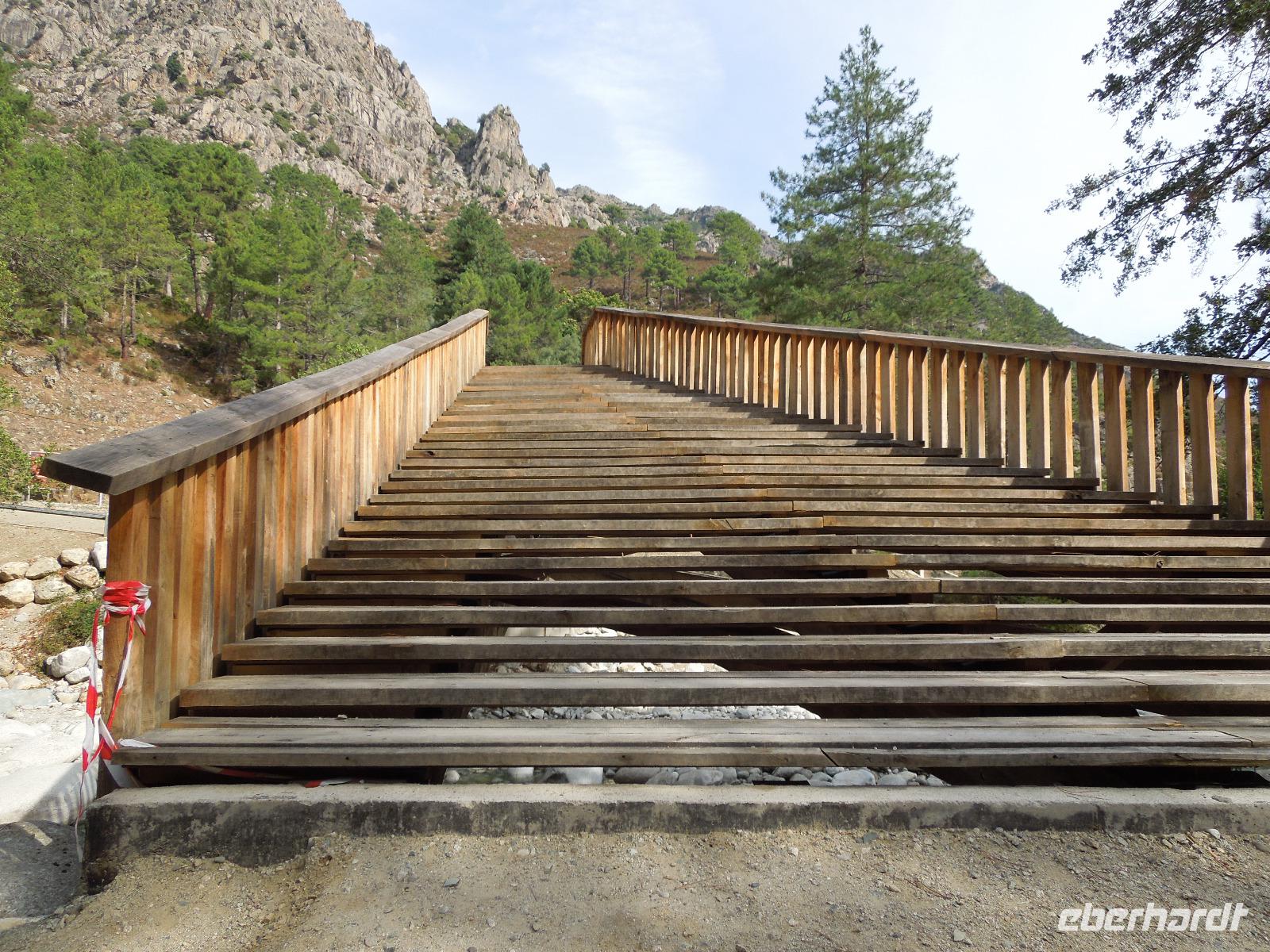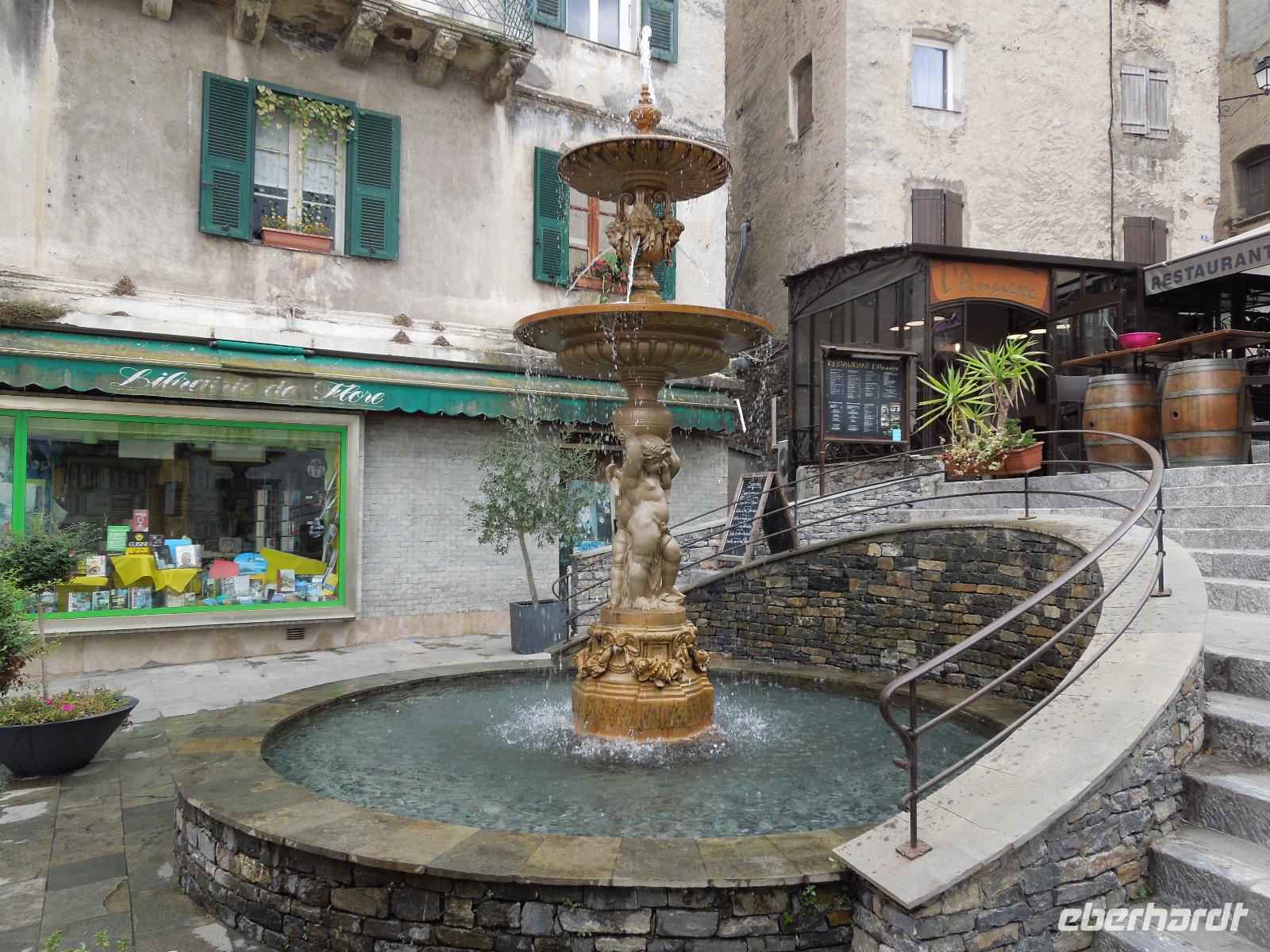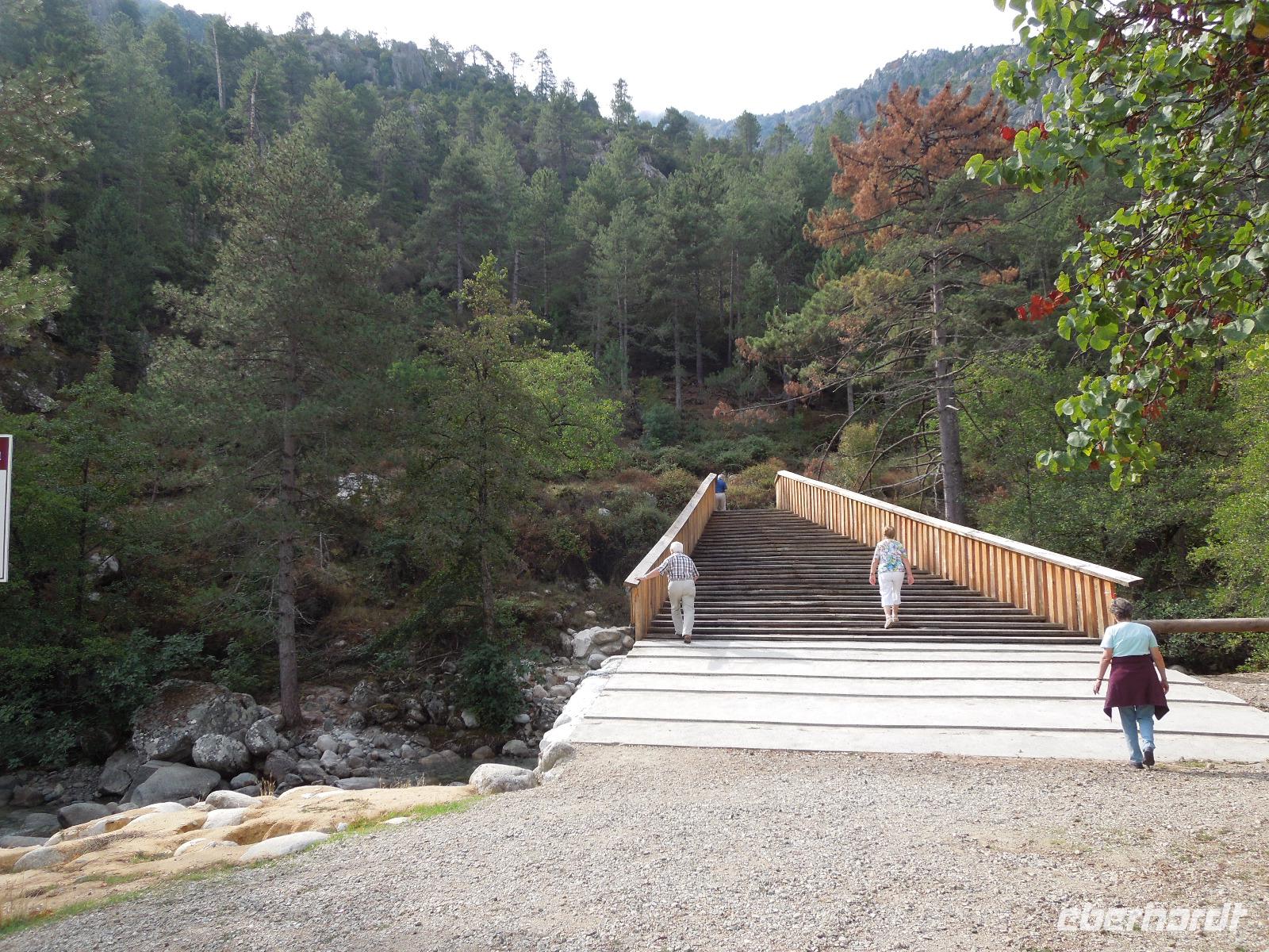 Vormittags fuhren wir ins Innere der Insel, Richtung Corte. Im wildromantischen Tal des Golo spazierten wir wenig später mit Simone am glasklaren Fluss entlang und ließen die schöne Natur auf uns wirken. Danach fuhren wir zu einem Restaurant in der Restonica-Schlucht. Als Vorspeise gab es wieder verschiedene Terrinen und Baguette. Das Hauptgericht bestand aus einem köstlichen Kalbsgulasch mit Reis und als Dessert gab es noch eine Art Kuchen. Nachdem wir uns alle satt gegessen hatten, fuhren wir weiter nach Corte, der ehemaligen Hauptstadt der Insel. Heute ist sie mit ca. 3000 Studenten die einzige Universitätsstadt der Insel. Die "heimliche Hauptstadt" der Insel war das Zentrum des Widerstands gegen die genuesische Herrschaft. Mit der Bimmelbahn fuhren wir hoch in die malerische Altstadt mit ihren bröckelnden Fassaden und Simone führte uns eine Stunde durch die verwinkelten Gassen der Stadt und erklärte uns auch hier wieder viel über die Geschichte von Corte und den Menschen, die hier wohnen. Anschließend blieb Zeit zum Einkaufen, Kaffeetrinken und Spazieren. Nachmittags fuhren wir mit der kleinen Bahn wieder runter zu unserem Bus und danach zum Hotel zurück.