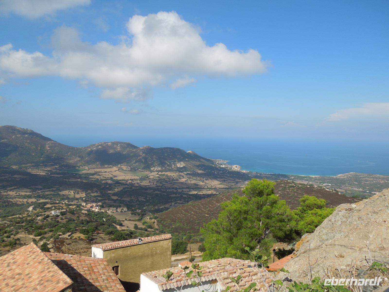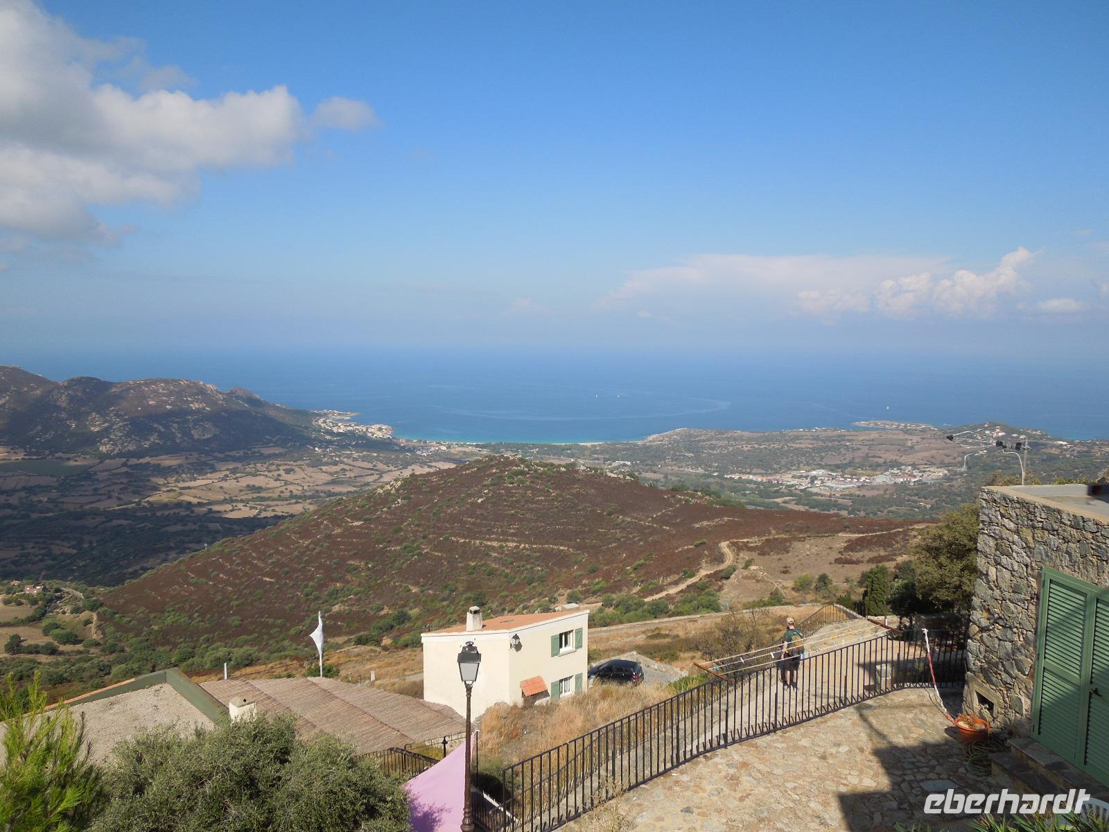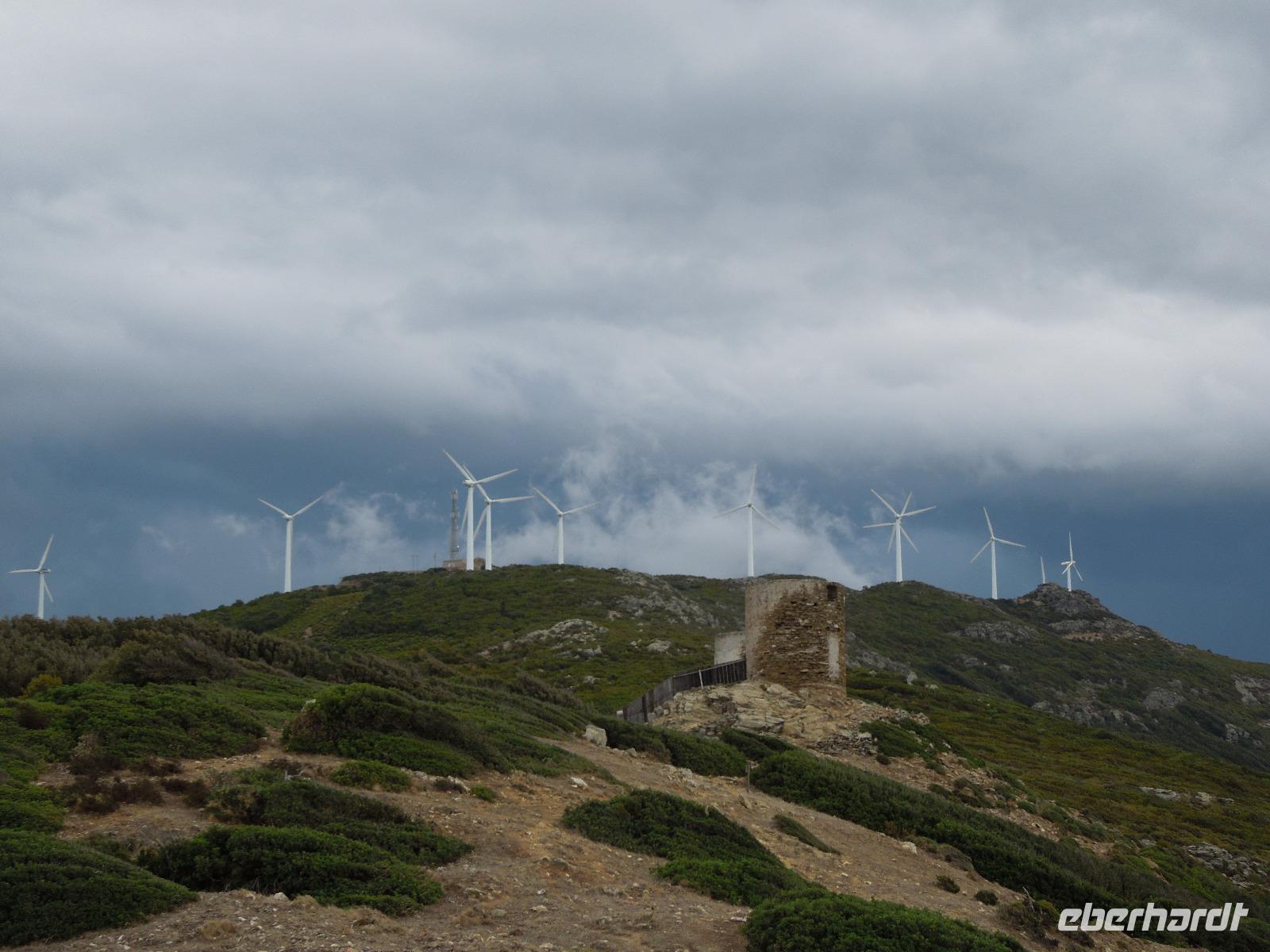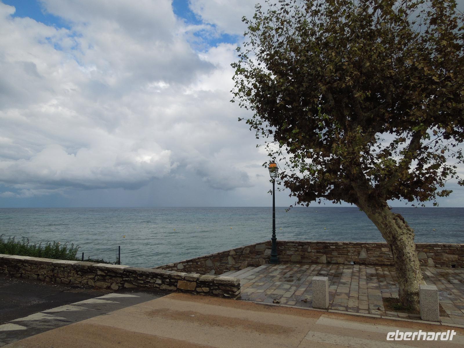 Nach einem ausgiebigen Frühstück in geselliger Runde und mit Blick aufs Meer, trafen wir unsere örtliche Reiseleiterin Simone am Hotel. Simone ist Deutsche, wohnt aber schon seit über 20 Jahren auf Korsika. Kurze Zeit später machten wir uns auf den Weg Richtung Bastia. Unseren ersten Stopp legten wir in dem kleinen Örtchen Erbalunga ein. Das kleine Fischerdorf liegt 10 km nördlich von Bastia. Es blieb Zeit für einen Kaffee oder einen Spaziergang durch die verwinkelten Gassen bis zum Hafen. Anschließend fuhren wir weiter die kurvigen Straßen auf dem Cap Corse entlang. Das Cap Corse befindet sich im nördlichen Teil Korsikas und ragt wie ein Zeigefinger nach oben. Nirgendwo anders auf der Insel folgen so viele genuesische Wachtürme von Bucht zu Bucht aufeinander. Ab und zu hielten wir für einen kleinen Fotostopp und Pflanzenkunde durch Simone. Unsere Mittagspause machten wir in Macinaggio, einem kleinen Hafenort. Kurz nachdem wir uns in einem der vielen Restaurants niedergelassen hatten, fing es an wie verrückt zu regnen und wollte gar nicht mehr aufhören. Eine Stunde und einen Wolkenbruch später kämpfte sich die Sonne zum Glück wieder ihren Weg zu uns durch und wir fuhren weiter. Es folgten Stopps am Moulin de Mattei, in Pino, in Luri & Santa Severa. Auf dem Aussichtspunkt Moulin de Mattei hat man einen spektakulären Blick und man kann eine restaurierte, etwa 150 Jahre alte Windmühle bestaunen.