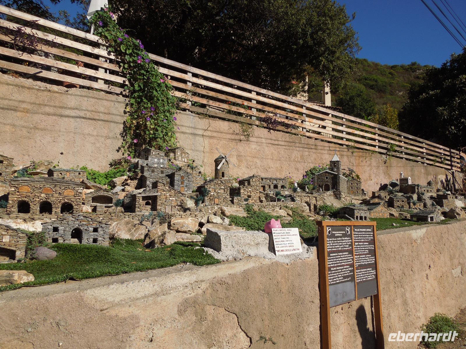 Am Vormittag fuhr ein Teil der Gruppe in die Castagniccia, die Heimat der Kastanie. Früher war diese Region die am dichtesten besiedelte der Insel. In Ponte Nuovo hielten wir und bestaunten ein kleines Mini-Dorf, das ein Anwohner aus vielen kleinen Schiefersteinen gebaut hat. Auch eine Brücke ..... Anschließend besuchten wir den Kastanienbauern Jean-Paul auf seinem Hof. Er erklärte uns alles zur Kastanienernte, -produktion und -verarbeitung. Da dies nur im Oktober und November ist, stellt er dort auch verschiedene andere Produkte, wie Marmelade, Canistrelli (Gebäck) oder Schinken, her. Nachdem wir alles über den Weg der Kastanie vom Baum bis auf den Tisch erfahren hatten, bekamen wir langsam Hunger. Deshalb gab es gleich im Anschluss ein köstliches Mittagessen, bei dem es verschiedenste Leckereien gab - typische Terrinen, korsische Lasagne, Salat und Kastanieneierkuchen. Gesättigt fuhren wir weiter nach Morosaglia. Dies ist der Geburtsort von Pasquale Paolis, einem Freiheitskämpfer und "Vater der Nation". In La Porta machten wir noch einen kleinen Fotostopp und besuchten die Kirche im Ort. Danach ging es zu einer Destillerie für ätherische Öle. Hier roch es nicht nur gut, die Mücken waren auch äußerst aktiv. Wir erfuhren alles über die verschiedenen Pflanzen, aus denen ätherische Öle gewonnen werden und welche Wirkung diese haben. Außerdem erklärte man uns, wie die Öle verarbeitet und genutzt werden. Nach dieser interessanten Führung, gab es natürlich auch die Möglichkeit zu Kauf dieser Produkte. Am frühen Abend fuhren wir wieder ins Hotel zurück.