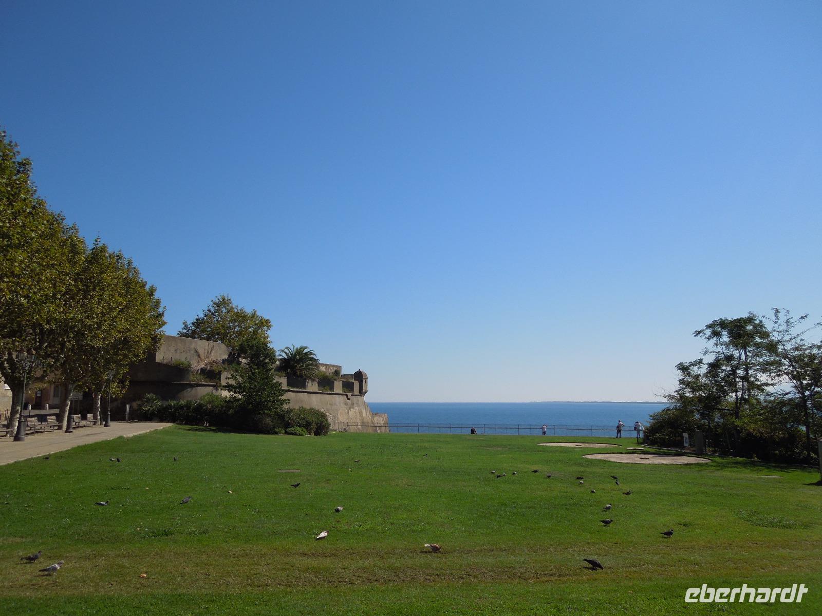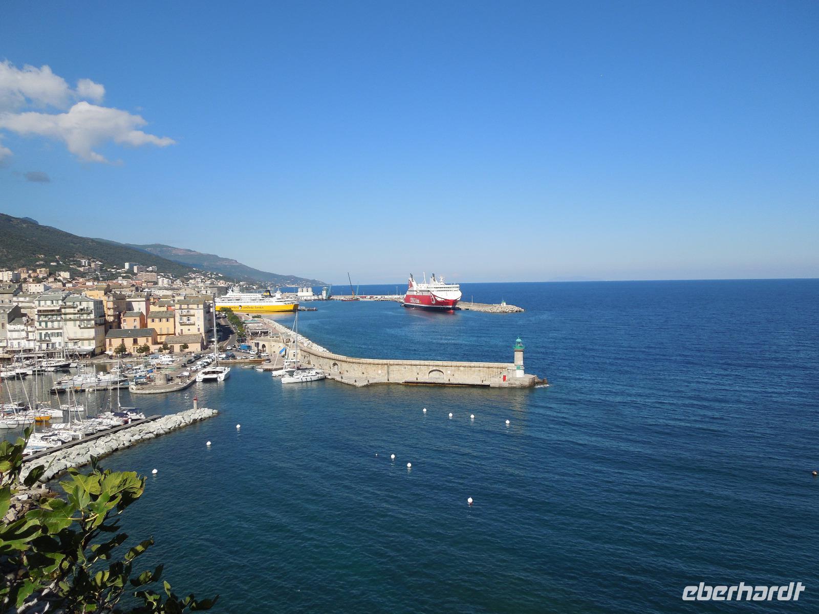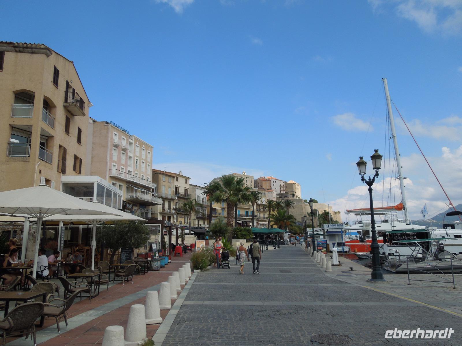 Den heutigen Ausflug machten wir in die Balagne - den Garten von Korsika. Zuerst hielten wir im wohl schönsten Dorf der Insel - Sant' Antonino. Der Ort thront wie ein Adlernest etwa 500 Meter über dem Meeresspiegel. Wir besichtigten den Ort und hatten einen fantastischen Blick auf das Mittelmeer und die beeindruckende umliegende Landschaft. Anschließend fuhren wir weiter nach Calvi. Die hoch aufragende Zitadelle am südlichen Ende der Bucht ist das Wahrzeichen der Stadt. Wir bestiegen die Stufen zur Zitadelle des Küstenstädtchens und sahen uns dort gemeinsam mit Simone um. Der ehemalige Gouverneurspalast beherbergt die letzte Abteilung der Fremdenlegion auf der Insel. Hier steht auch angeblich das Geburtshaus von Christopher Kolumbus. Das ist zwar nicht bewiesen, aber durchaus möglich. Auch unsere Mittagspause verbrachten wir im Ort. Man konnte sich in einem der vielen Cafés bzw. Restaurants mit Blick auf den Hafen niederlassen oder durch die Einkaufsstraße mit zahlreichen verschiedenen Geschäften bummeln. Am Nachmittag machten wir noch einen kleinen Zwischenstopp in Ile Rousse. Die Stadt wurde erst 1758 als Stützpunkt gegen Genua gegründet und unterscheidet sich durch rechtwinklige Straßen und offene Plätze von älteren korsischen Städten. Unser heutiges Abendessen wurde durch französische Musik von einer kleinen Liveband begleitet. Später schunkelten wir zu verschiedenen Liedern mit und amüsierten uns ganz prächtig.