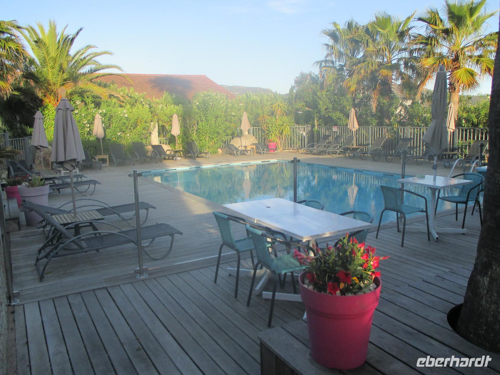 Sabien bringt uns heute für einen kleinen Einkaufsbummel nach Bastia, er hat uns schon auf der Fahrt von den vielen kleinen Boutiquen berichtet. Bei einen zweistündigen Stadtbummel können wir in den noch luftig gefüllten Gassen schöne Souvenirs und korsische Leckereien erstehen. Am Mittag fahren wir zurück in unser Hotel und haben den restlichen Tag zur freien Verfügung. Einige von uns halten ein kurzes Mittagsschläfchen oder testen den Pool und die Liegestühle, für Kaffee und Eis ist auch gesorgt. Die ganz mutigen wagen sich in die Fluten und genießen die kühle Erfrischung im Mittelmeer. Das Abendessen genießen wir in geselliger Atmosphäre und bei guten Gesprächen auf der Terrasse des Hotelrestaurants.