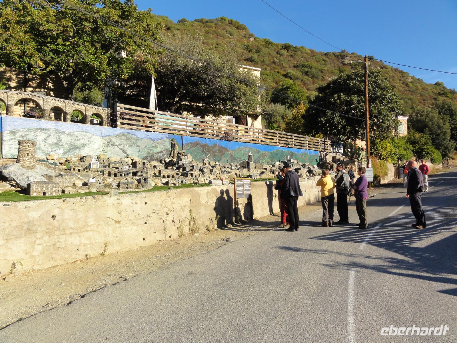 Ziel ist heute Calvi, eine Stadt im Nordwesten der Insel, in der Balagne. Unterwegs machen wir einen kurzen Stopp und bewundern eine Miniaturstadt, liebevoll hergerichtet mit Türmen, Kapellen und kleinen Häusern.