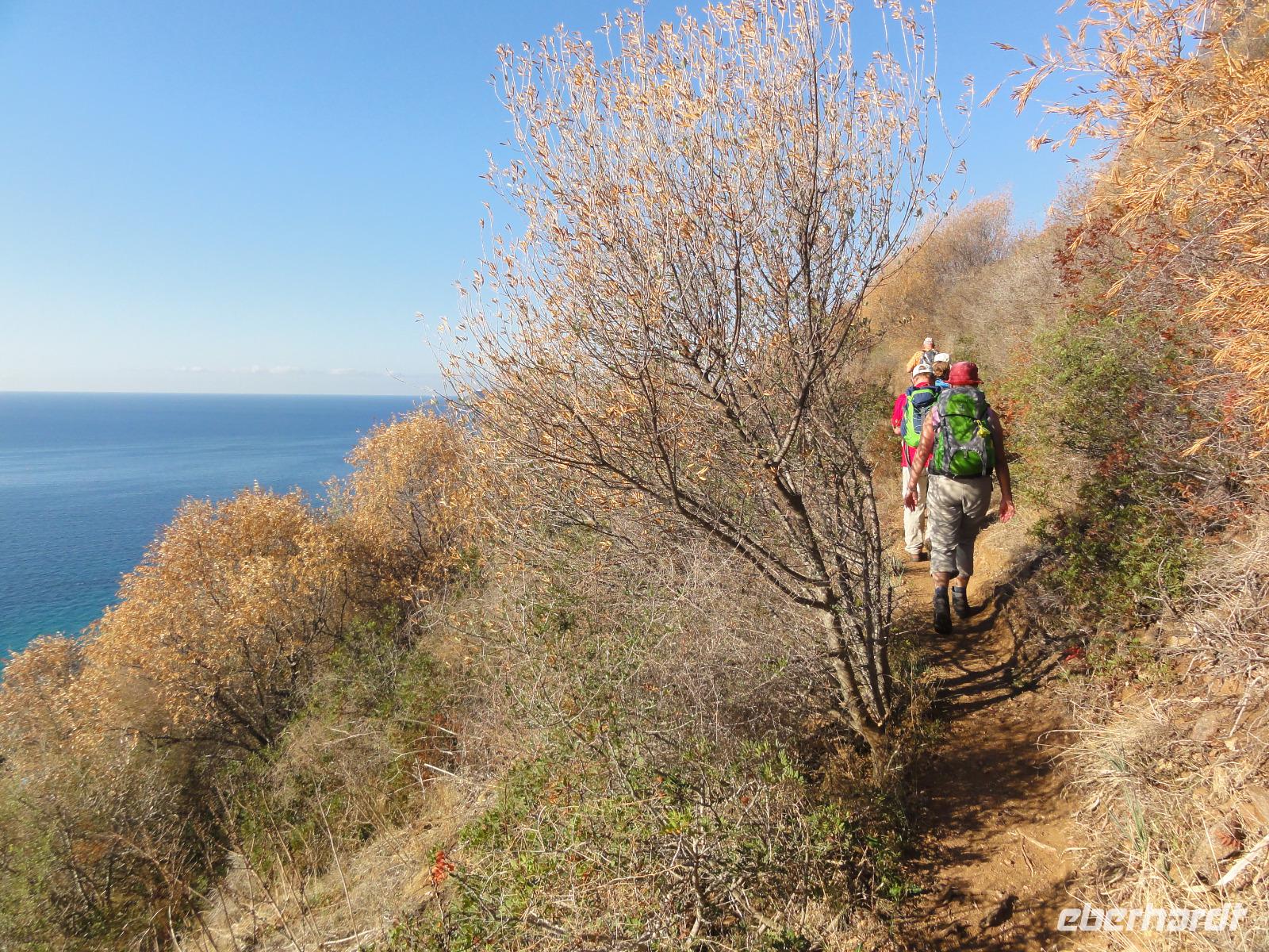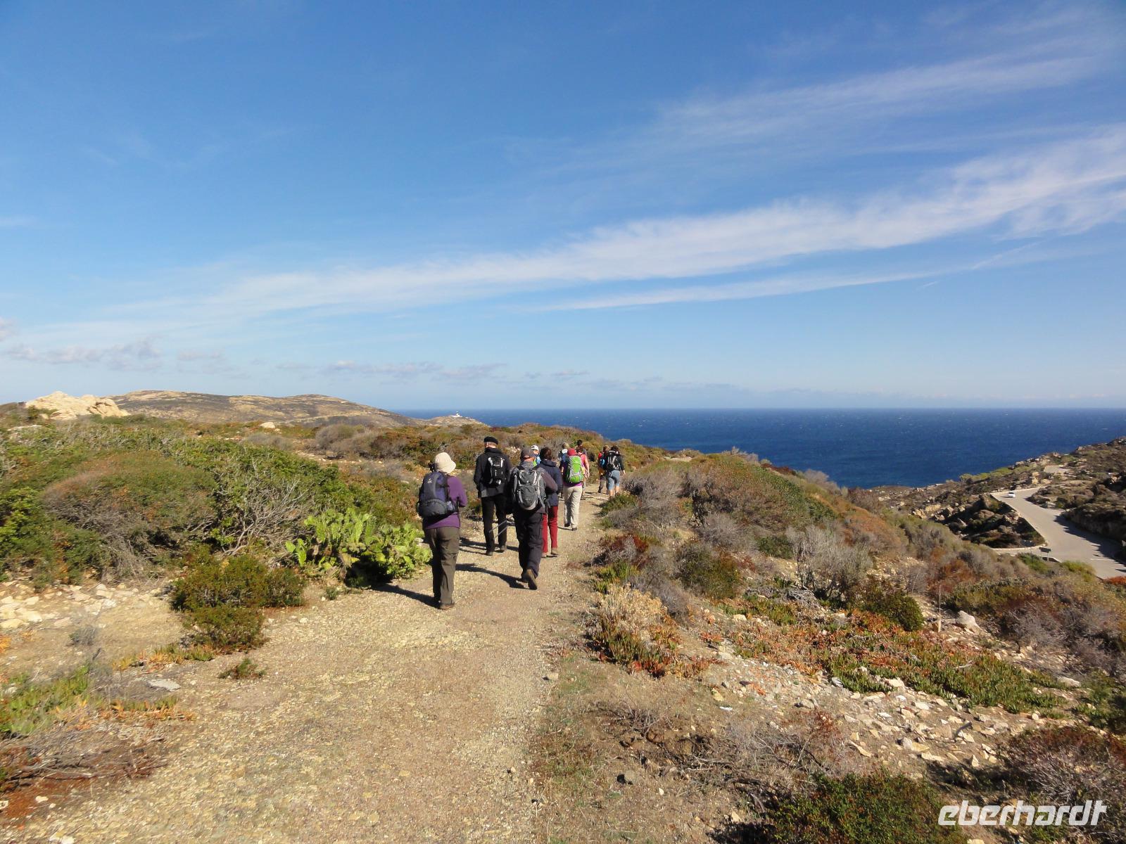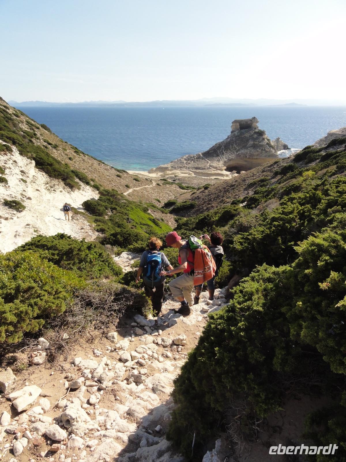 14.00 Uhr unsere Wanderung entlang der Steilküste zum Leuchtturm von „Capo Pertusato" dem südlichsten Punkt des Korsischen Festlandes. Überragend
