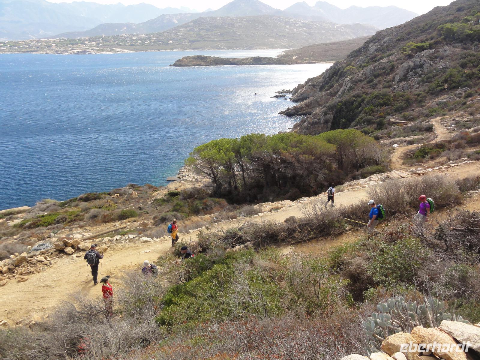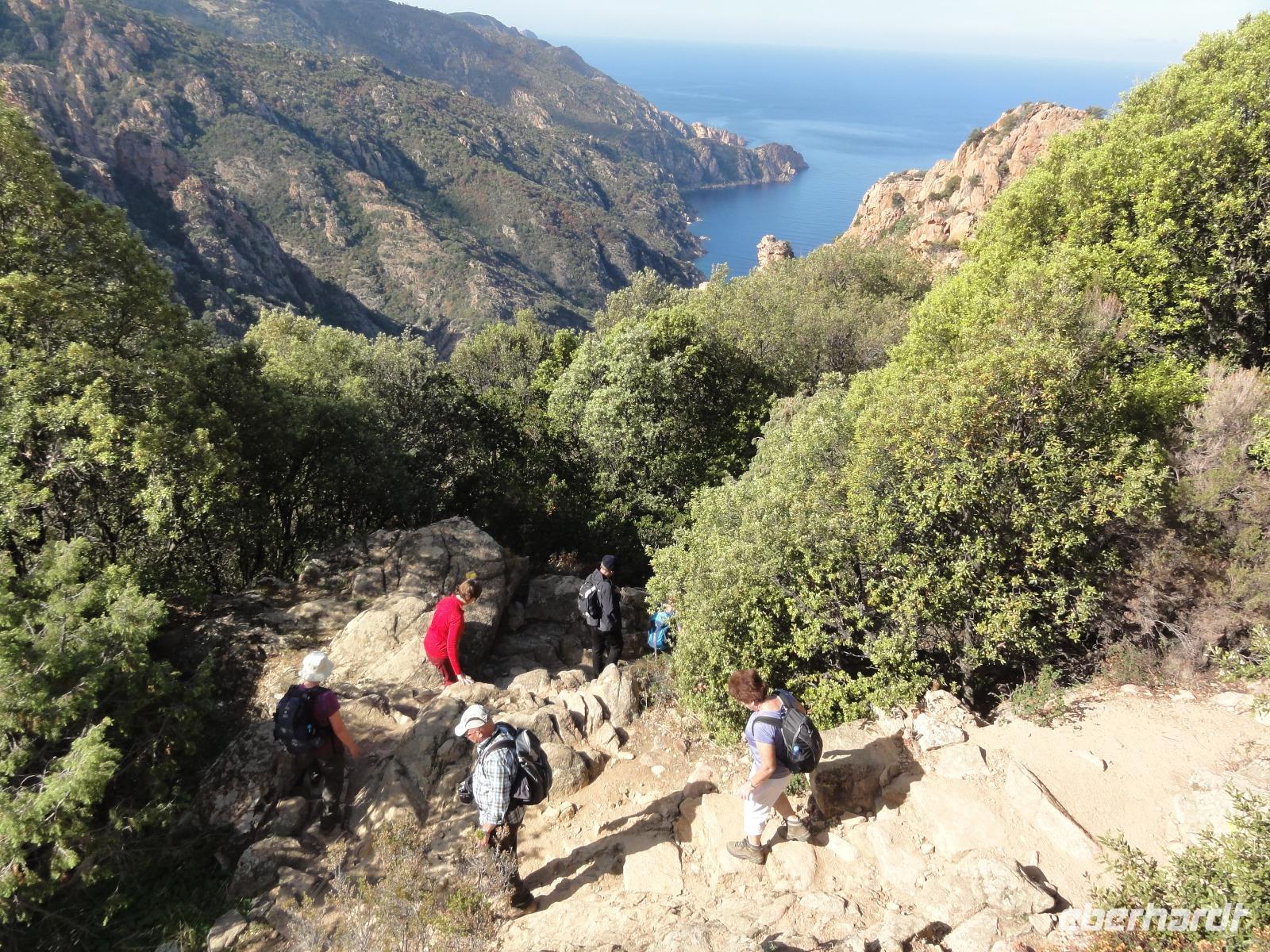 Nach der Pause geht es wieder hinunter, die Küste entlang nach Calvi. Zwischendurch machen wir Rast in einer kleinen Bucht die wunderbar zum Schwimmen im Meer einlädt.