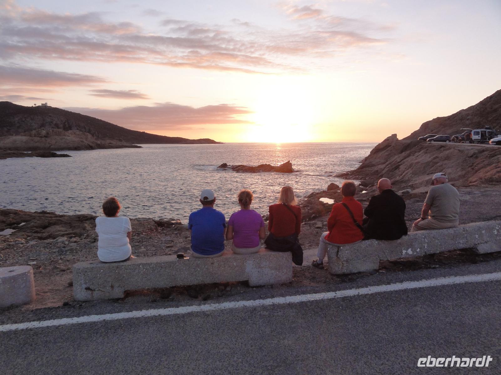 Heute Abend genießen wir noch einmal zusammen die traumhafte Kulisse mit Sonnenuntergang und gehen anschließend zum Abendessen.