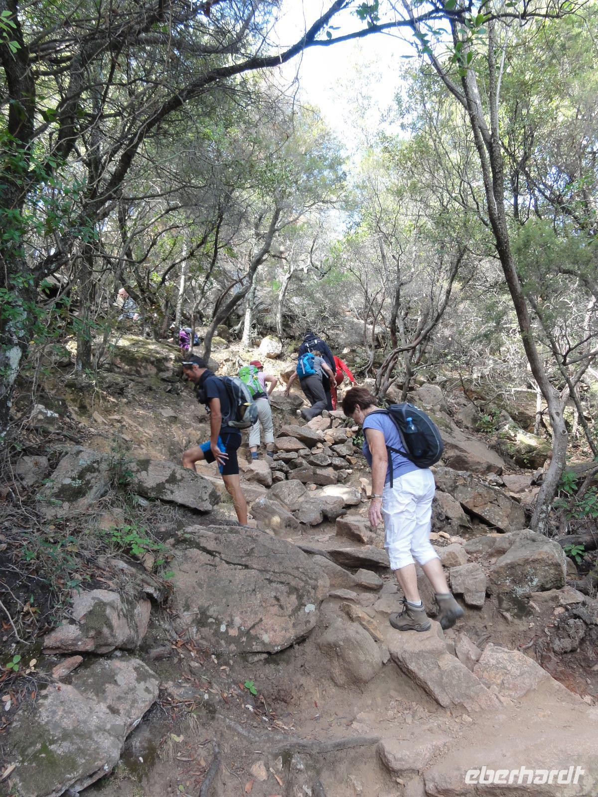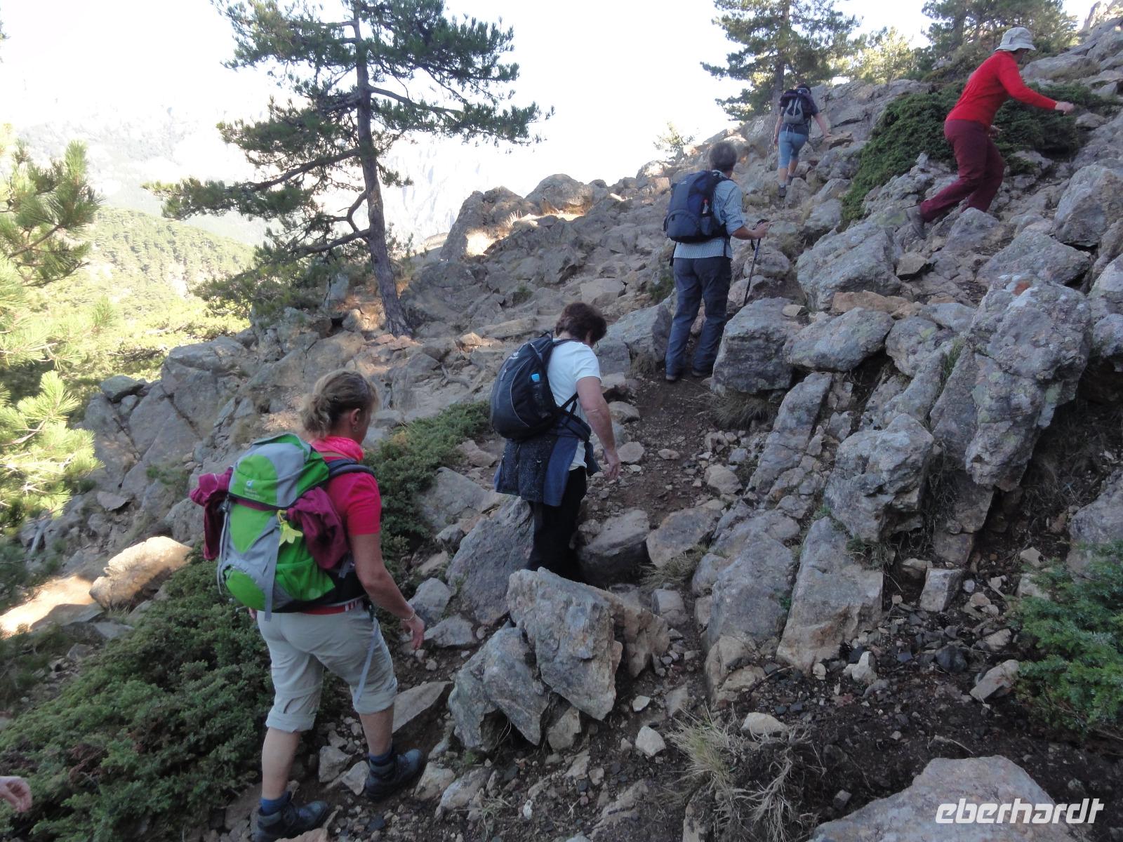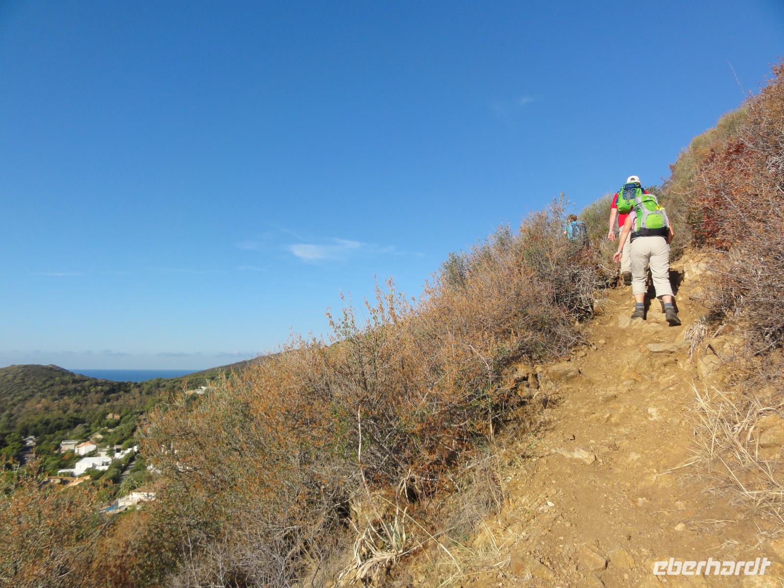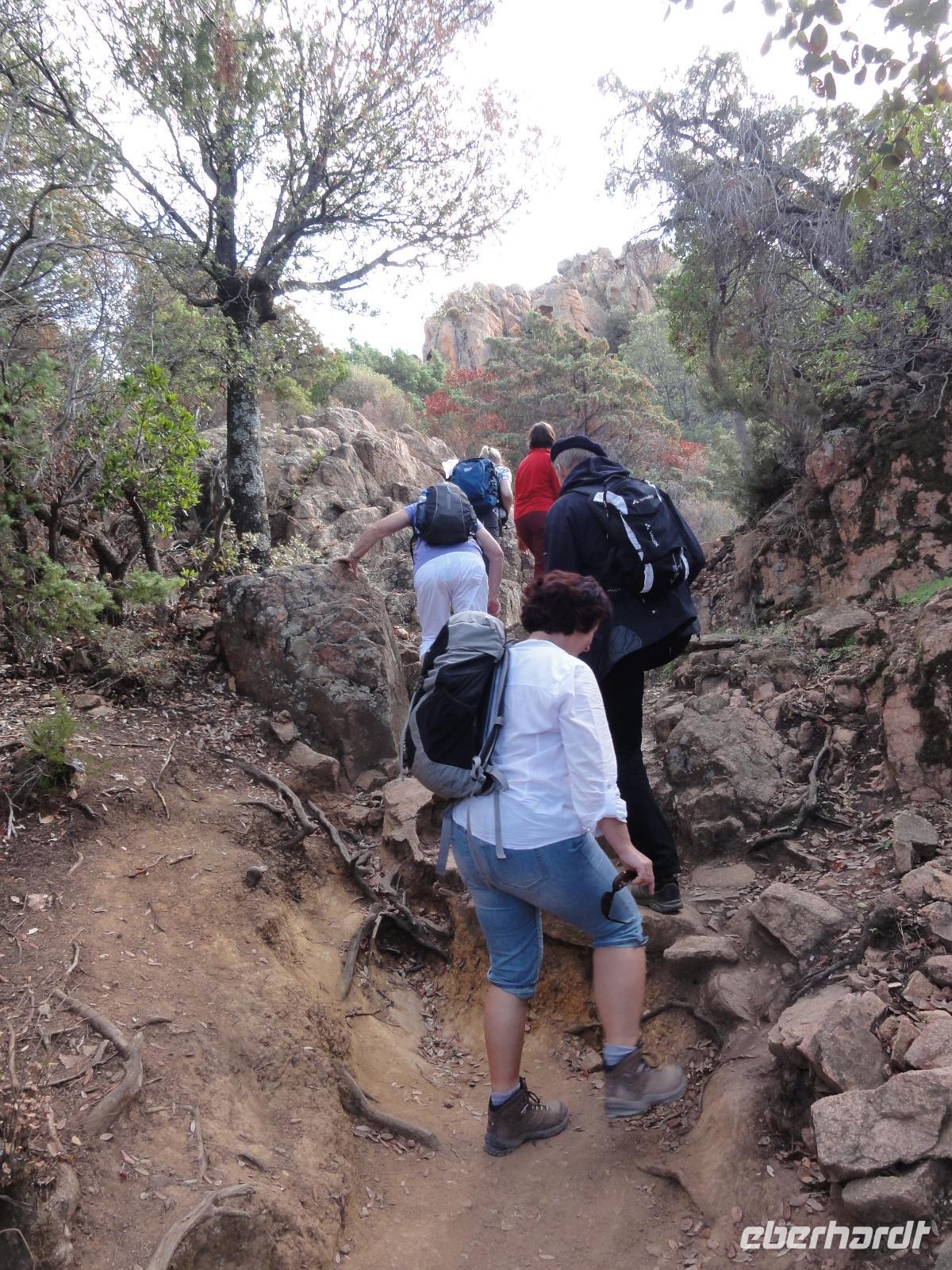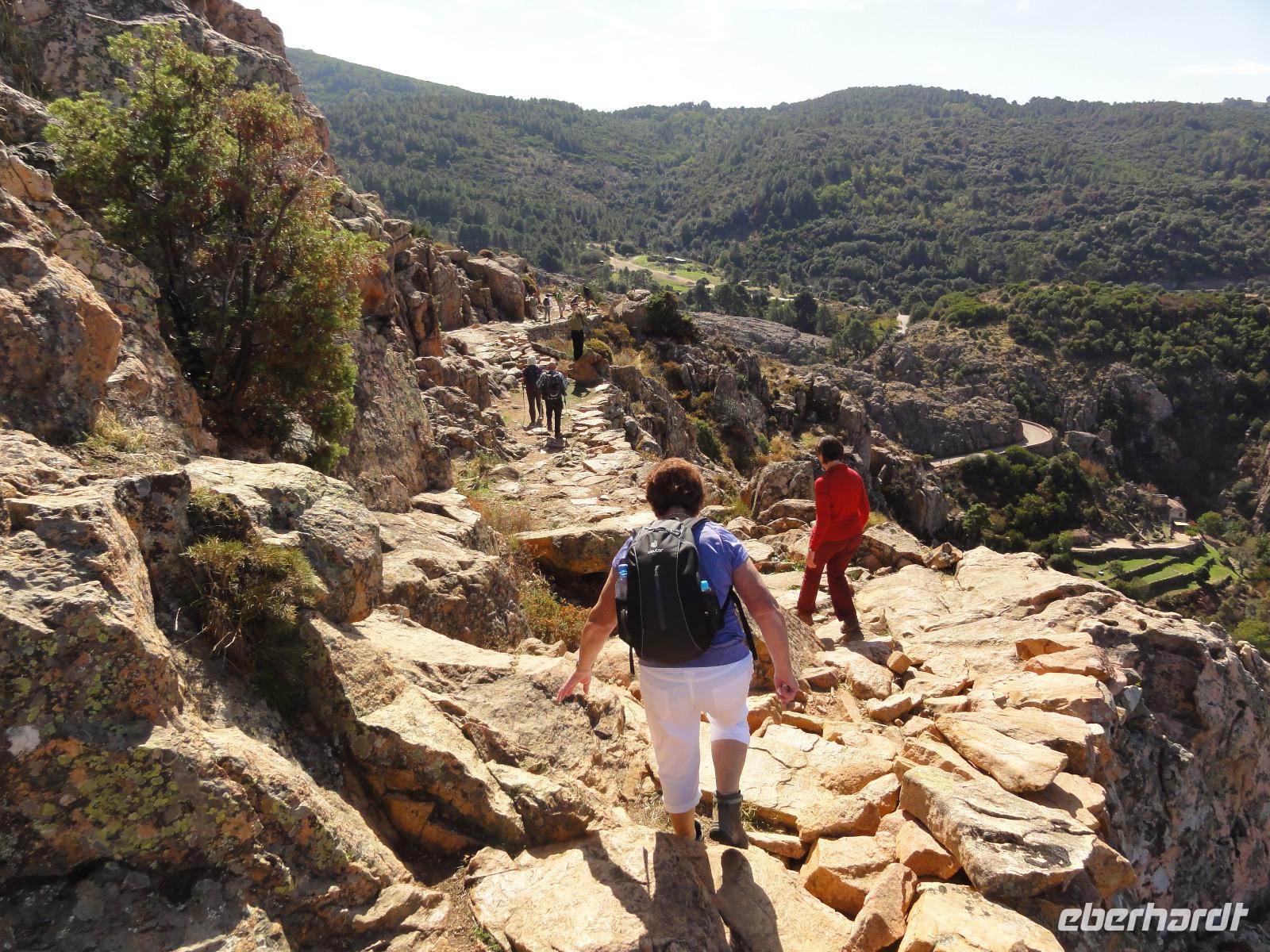 Nach gefühlten „1000" Stufen geht es nun auf ebener Strecke weiter nach Piana. Die Eidechsen sonnen sich am Wegesrand und wir kosten vorsichtig die Früchte des Erdbeerbaumes, und stellen fest, sie schmecken, ein bisschen wie Aprikosen, köstlich!