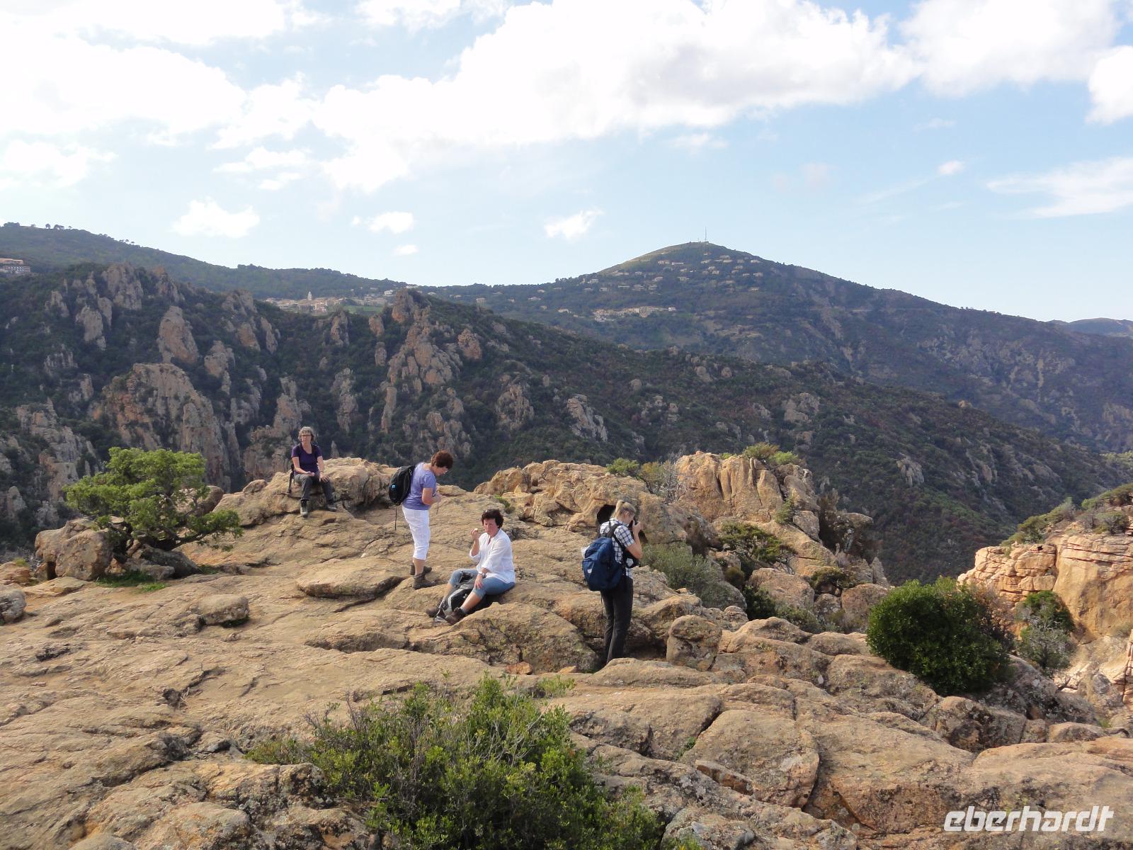 Nach einem kleinen gemeinsamen Aufwärmen nach der Busfahrt starten wir am „Tete du Chien" - Hundekopf bis zum Aussichtspunkt „Chateau Fort", dort können wir uns gar nicht satt sehen.....wow, was für ein Panoramablick, fantastisch.