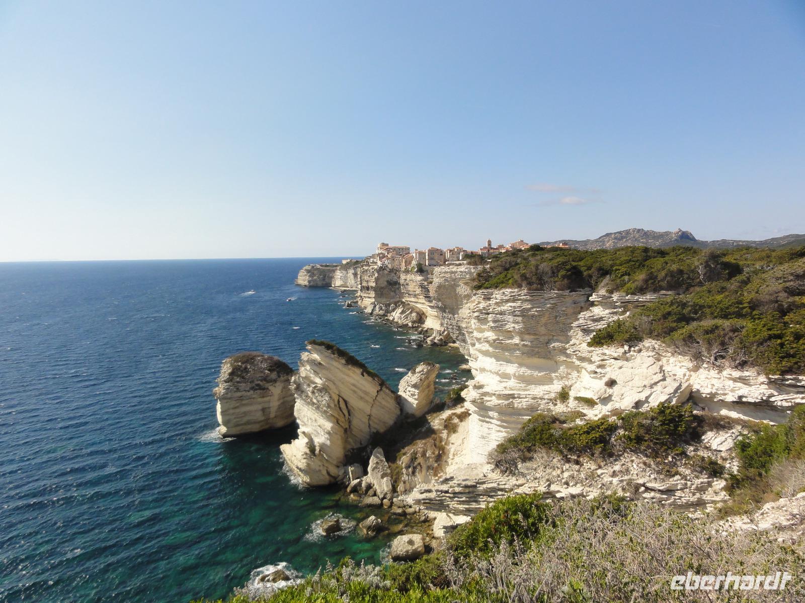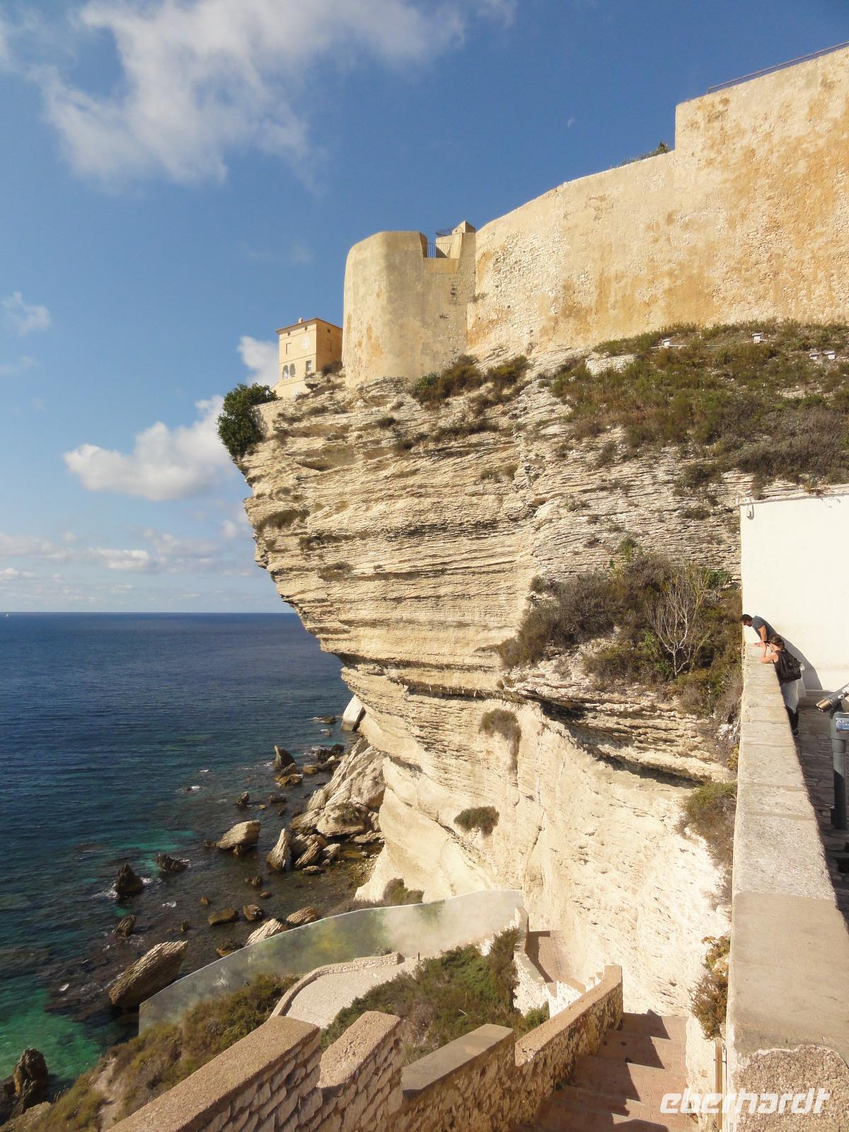 11.30 Uhr erreichen wir Bonifacio. Die auf 60 Meter hohen Kreidefelsen errichtete Zitadelle beeindruckt uns sehr. Es scheint, als würden die Häuser am Abgrund in der Luft „schweben", gigantisch. Nach der ausführlichen Führung mit Yann durch die Zitadelle, startet