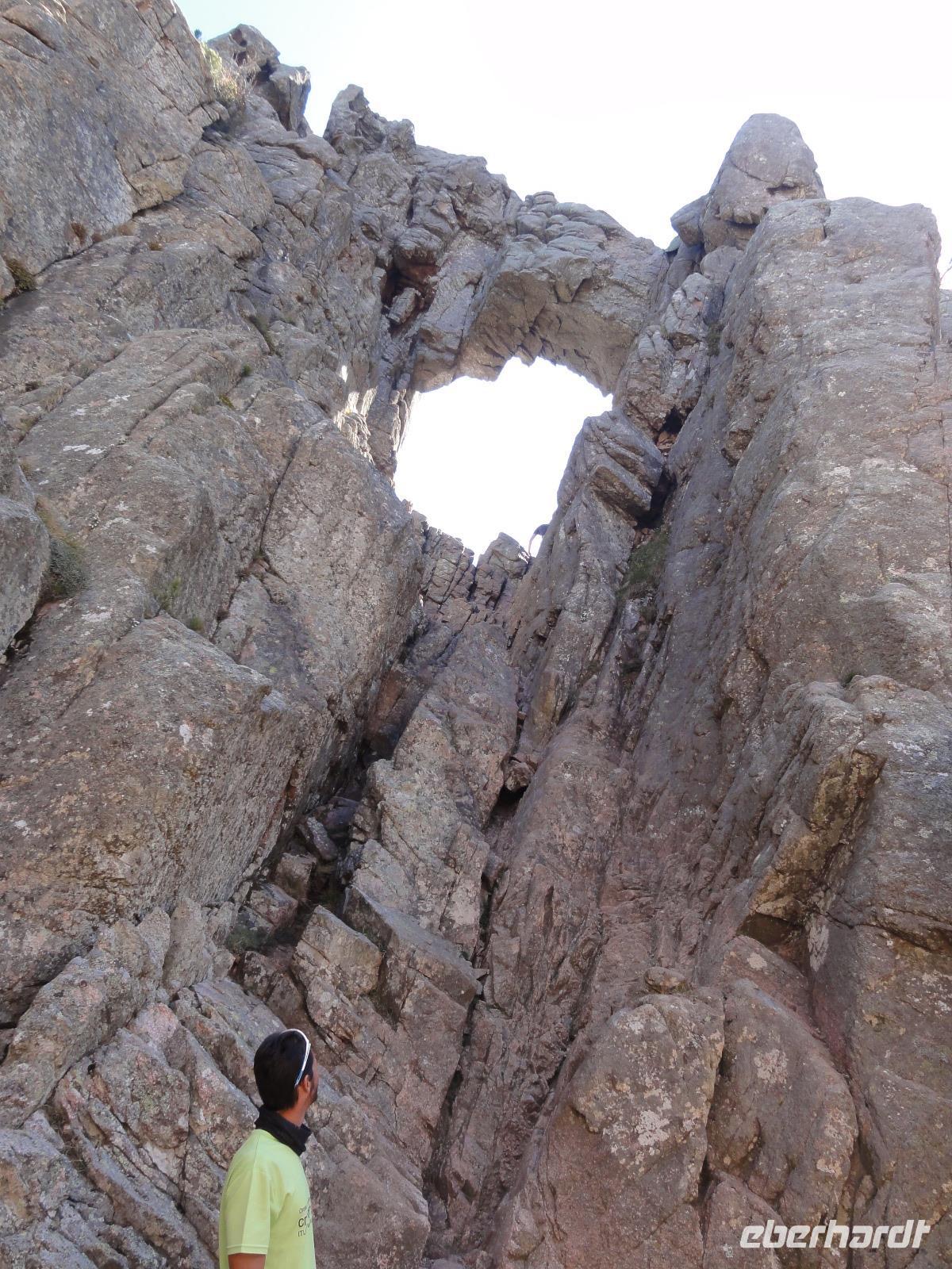 dort beobachten wir 3 Steinböcke in den Farnen, etwas weiter sehen wir Kühe zwischen den Bäumen. Am „Bombenloch" angekommen, stehen wir vor der schwierigen Entscheidung, hinauf klettern oder nicht? Eine Hand voll Mutiger traut sich bis hinauf zu klettern, in das „Loch" zu setzen und sich fotografieren zu lassen, es kribbelt immer noch im ganzen Körper. :-) Wahnsinn, was für ein Abenteuer.