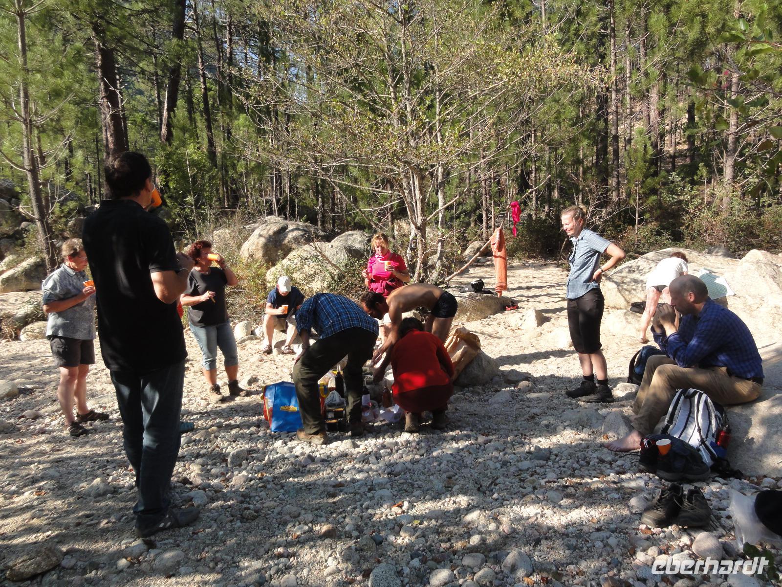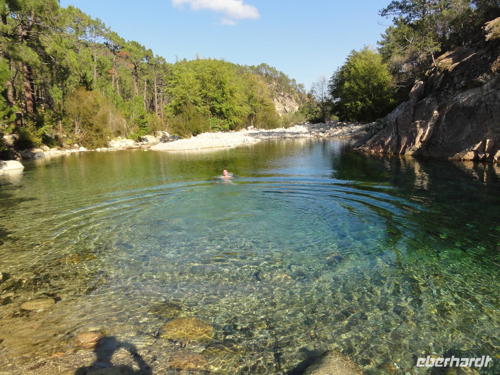 Anschließend fahren wir an den Fluss „Solenzara" wo wir unser Picknick verbringen. Bei Wurst und Käse lassen wir uns den Wein schmecken, köstlich. Das Wasser ist etwas kühl aber herrlich erfrischend und dreimal dürft ihr raten wer zuerst im Wasser ist, richtig, Carsta :-) Nach dem ausgiebigen Picknick steuern wir unser Hotel „San Pellegrino" in Folleli wo wir schweren Herzens nach einer Woche unseren Wanderguide Yann verabschieden müssen. Nach einem ausgiebigen 4-Gang-Menü gehen wir ein letztes Mal zu Bett.