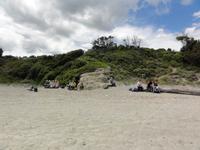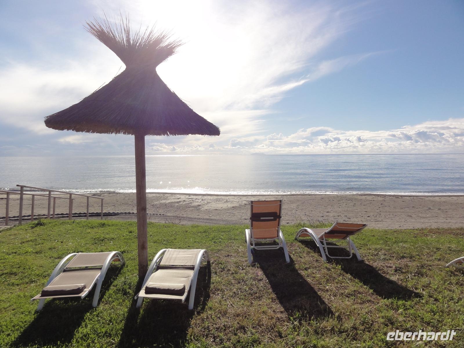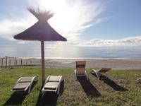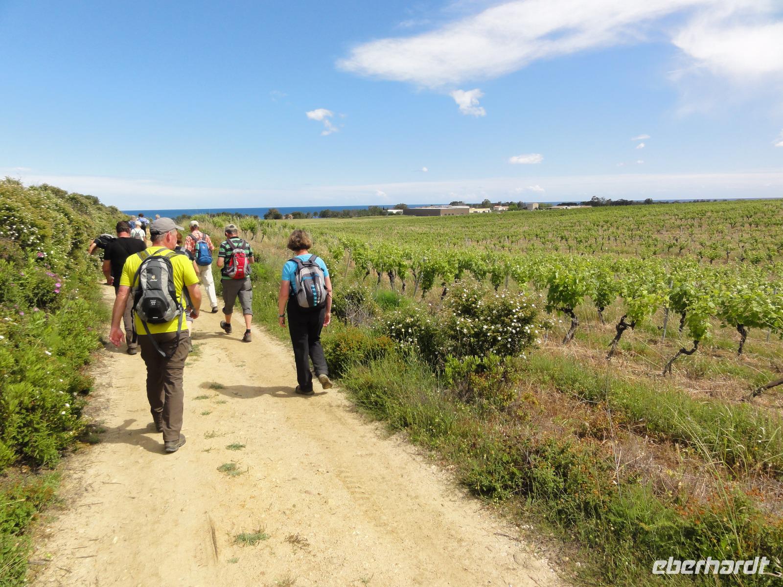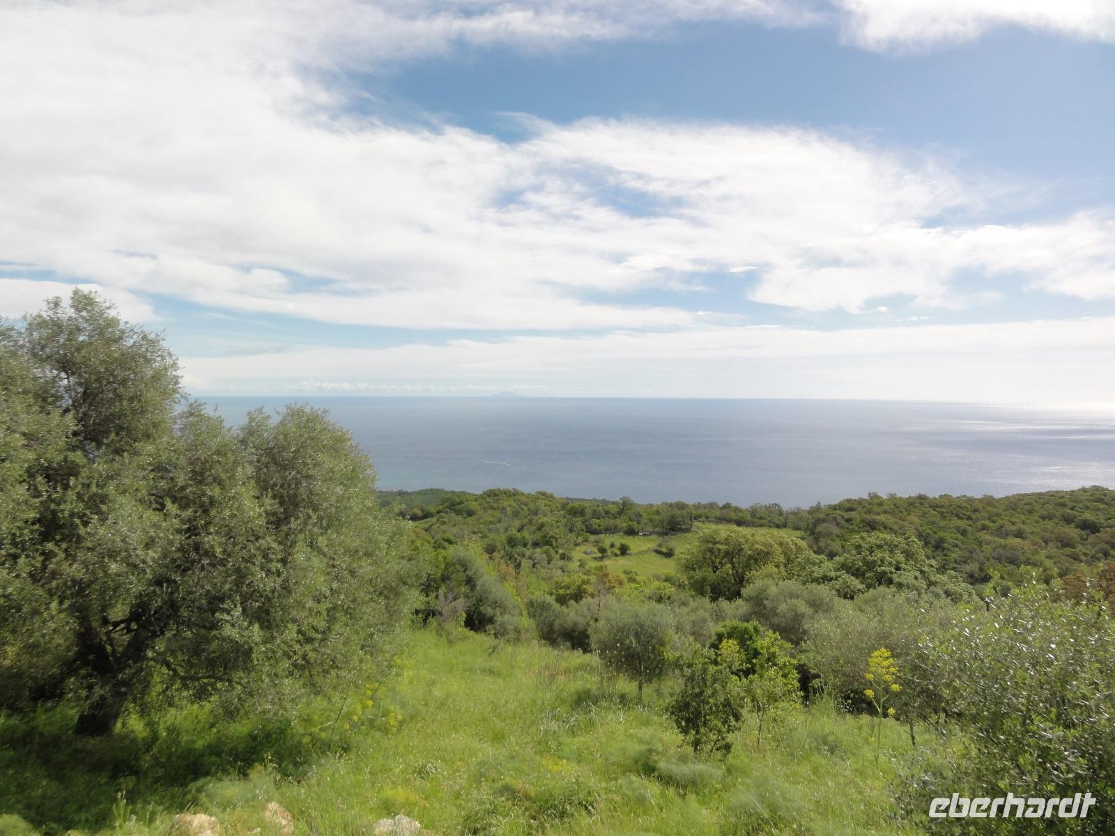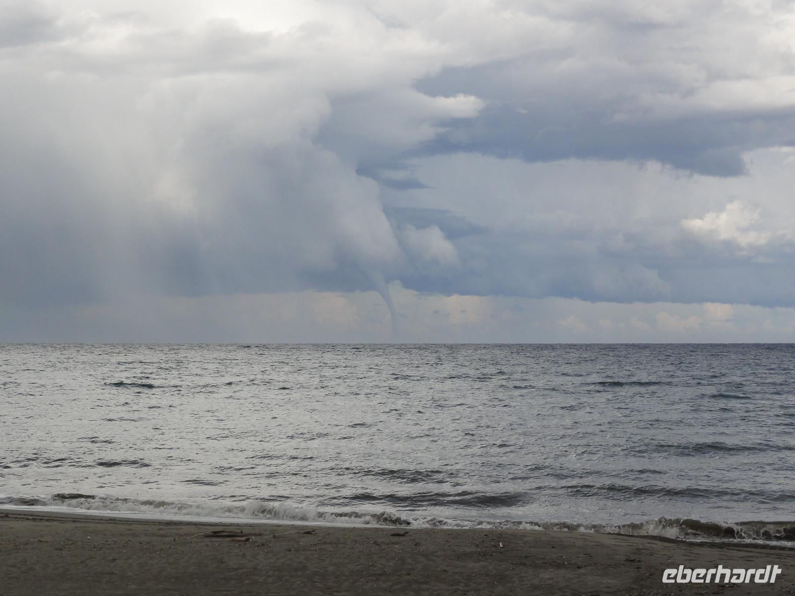 Der Tag heute beginnt mit einem Frühstück auf der Dachterrasse des Hotels. Wahnsinn... was für ein Blick auf die Bucht von Porto-Vecchio bei strahlendem Sonnenschein. Doch leider meint es das Wetter in den Bergen nicht so gut mit uns. Bei nur 2 Grad, Nebel und Regen können wir unsere geplante Wanderung zum Felsloch „Trou de la Bombe" am Col de Bavella aus Sicherheitsgründen nicht stattfinden lassen. Aber unser Yann hat natürlich Plan B parat, und so fahren wir nach Sari-Solenzara. Eric lässt uns an der Kirche in Sari aussteigen und wir begeben uns auf den Abstieg hinunter nach Solenzara. Wir fahren weiter entlang der „Costa Verde" die grüne Ostküste Korsikas, vorbei an riesigen Weinfeldern bis nach Aléria. Dort steigen wir am Lagunensee „Étang de Diane" aus und starten unsere zweite Wanderung für heute. Ein ausgedehnter Rundweg führt uns zum Wachturm „Tour de Diane" aus der Zeit der Genueser an der Mündung des Étang. Die Sicht ist hervorragend, und somit haben wir einen ausgezeichneten Blick auf die Inseln Elba und Monte Cristo. Unser „letztes" Picknick haben wir direkt am Strand unterhalb des Wachturms. Noch schnell ein paar Muscheln gesammelt und schon geht's zurück zum Bus. Auf dem Rückweg sehen wir die Fisch- und Austernzucht mitten auf dem See, und auch der „Christwürger" bietet sich als super Fotomotiv. Angekommen im „San Pellegrino" in Folelli begrüßt uns erneut Chantal und wir können rasch unsere Zimmer beziehen. Einige stürzen sich noch einmal in die Fluten bevor es um 19:00 Uhr zum Abendbrot geht.